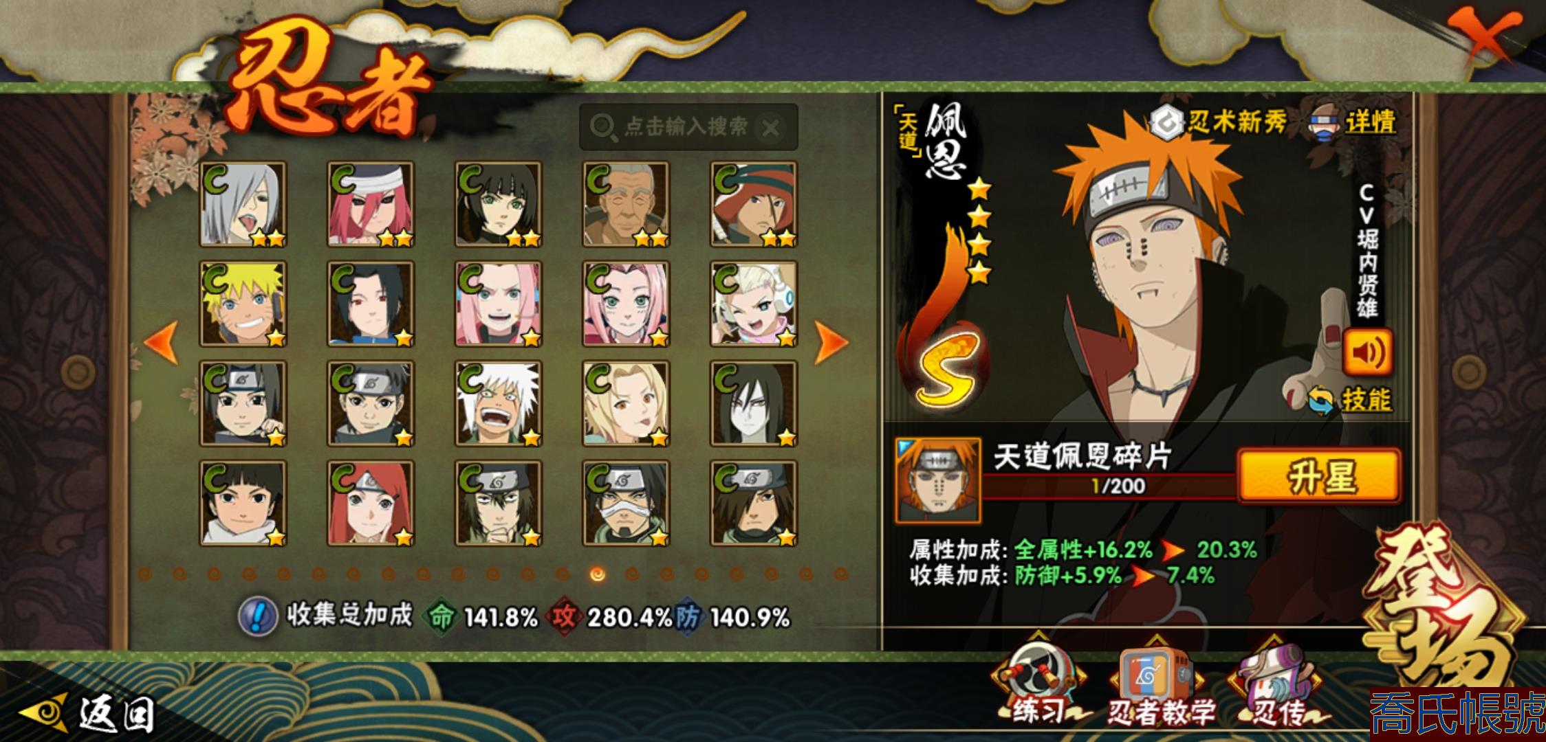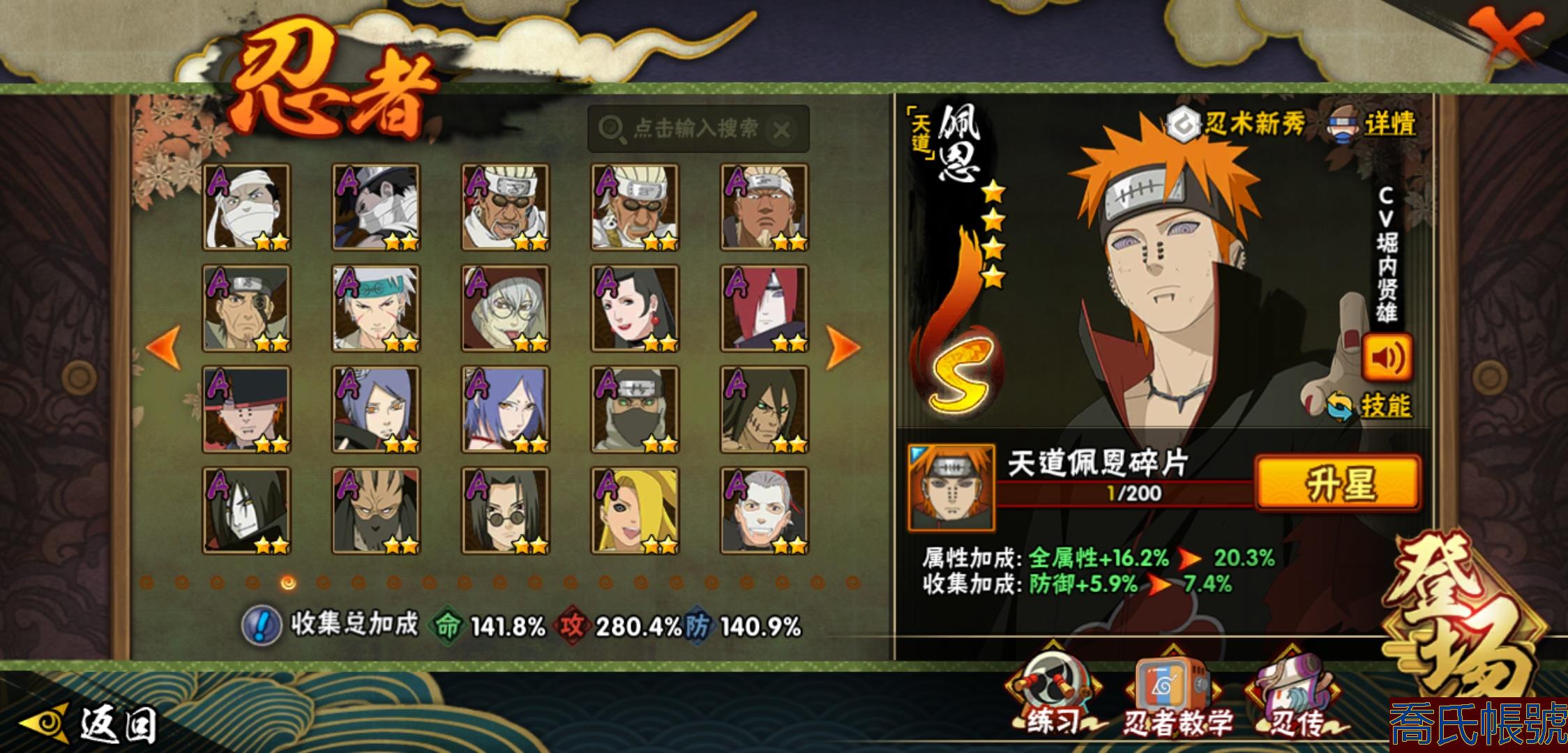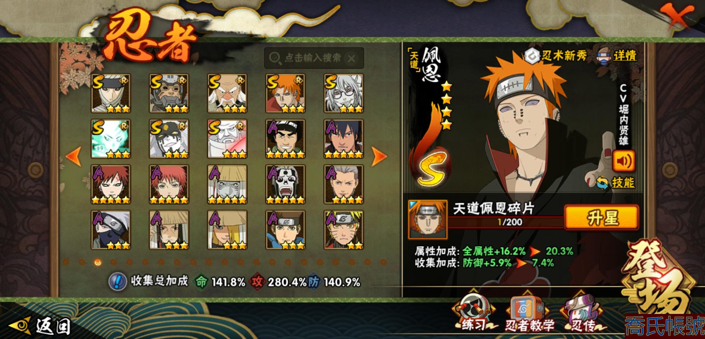 【OBHLLXQ714542】戰鬥力:2737W+;段位:中忍2階;本服排名:5;戰區排名:59;VIP14級;S忍48個;A忍57個;通靈獸32個;S忍:仙人模式自來也(5星),綱手(5星),猿飛日斬(5星),大蛇丸(4星),須佐能乎宇智波鼬(4星),初代目風影烈鬥(4星),天道佩恩(4星),暴怒第六尾漩渦鳴人,九喇嘛連結漩渦鳴人,永恆萬花筒宇智波佐助,忍界大戰春野櫻,須佐能乎旗木卡卡西,自來也,舞之豪傑自來也,傳說中的三忍自來也,百豪綱手,死門邁特凱,波風水門,穢土轉生波風水門,穢土轉生猿飛日斬,千手扉間,穢土轉生千手扉間,穢土轉生千手柱間,木葉創立千手柱間,穢土轉生宇智波斑,木葉創立宇智波斑,穢土轉生解宇智波斑,穢土轉生宇智波鼬,須佐能乎宇智波止水,神秘面具男,白面具宇智波斑,忍界大戰宇智波帶土,紅夜之刃神秘面具男,四代目風影羅砂,二代目水影鬼燈幻月,四代目雷影艾,忍界大戰艾,三代目雷影艾,穢土轉生金角銀角,三代目土影大野木,二代目土影無,穢土轉生半藏,忍界大戰大野木,超佩恩天道,仙人模式藥師兜,最終章大筒木舍人,大筒木桃式,大筒木金式;A忍:猿飛阿斯瑪(5星),疾風傳我愛羅(5星),蠍(5星),幹柿鬼鮫(5星),死司憑血飛段(5星),飛段(4星),旗木卡卡西(3星),宇智波鼬(3星),迪達拉(3星),猿飛木葉丸(3星),仙人模式漩渦鳴人,忍者之路神秘面具男,九尾查克拉漩渦鳴人,萬花筒寫輪眼宇智波佐助,須佐能乎宇智波佐助,宇智波泉奈,忍界大戰秋道丁次,忍界大戰日向寧次,忍界大戰李洛克,幻之真容旗木卡卡西,萬花筒寫輪眼旗木卡卡西,忍界大戰旗木卡卡西,宇智波止水,新春限定宇智波止水,新春限定波風水門,青年波風水門,忍界大戰我愛羅,新春限定我愛羅,近松十人衛千代,五代目水影照美冥,俠隱江湖照美冥,漂泊武士桃地再不斬,穢土轉生桃地再不斬,奇拉比,忍界大戰奇拉比,青年艾,忍界大戰土臺,漂泊武士千手扉間,半蛇斗篷藥師兜,不緣,青年長門,漂泊浪客佩恩六道,小南,漂泊浪客小南,地怨虞角都,穢土轉生角都,曉大蛇丸,緋流琥蠍,新春限定宇智波鼬,穢土轉生迪達拉,惡靈之影飛段,俠隱江湖大野木,羈絆神農,五代目雷影達魯伊,桃式顯現漩渦博人,六代目水影長十郎,四代目土影黑土;通靈獸:忍犬,藍蛇,蛤蟆吉,忍龜,鐮鼬,猿魔,山椒魚,蜃,蛞蝓,蛤蟆仙人,鮫鯊,蛤蟆健,烏鴉,熊貓,二尾又旅,蛤蟆龍,怒鬼,蛤蟆廣,,砂之守鶴,巨型三足鳥,夢貘,萬蛇,怒鬼無臂,鷹,蜘蛛,怒鬼爪,辛牙,鵺,變色龍,祥瑞金烏;時裝:百戰波風水門,百戰宇智波鼬須佐能乎,桀驁之刃猿飛阿斯瑪,鋼鐵之軀邁特凱,蜀面豪傑舞之豪傑自來也,百戰佩恩天道,狂野鮫鯊幹柿鬼鮫,百戰大蛇丸,太極靈韻日向花火武當宗師,龍吟浪客千手扉間漂泊武士,土之固守大野木三代目土影,飛瀑流泉長十郎六代目水影,烈土霓裳黑土四代目土影,火之意志綱手百豪,可愛睡衣漩渦鳴人,血霧怪人幹柿鬼鮫,風之守護我愛羅忍界大戰,傳說的光芒波風水門,剎那的藝術迪達拉,龍的傳人李洛克截拳宗師,命定之戰宇智波佐助疾風傳,菁英忍者旗木卡卡西少年,隱藏內心的面具旗木卡卡西暗部,驚雷掠影達魯伊五代目雷影,編織虛實宇智波鼬,紅月映雪宇智波鼬新春限定,智勇記者宇智波佐良娜,烈火華服宇智波止水新春限定,純白之心白,緋櫻綻放春野櫻百豪,睿勇新星千手扉間少年,熊貓少女天天峨眉宗師;【1507】48s 58a 戰區個人59組織8