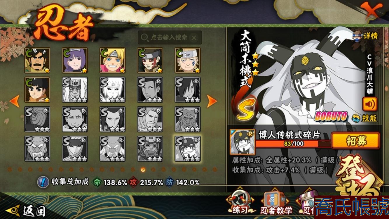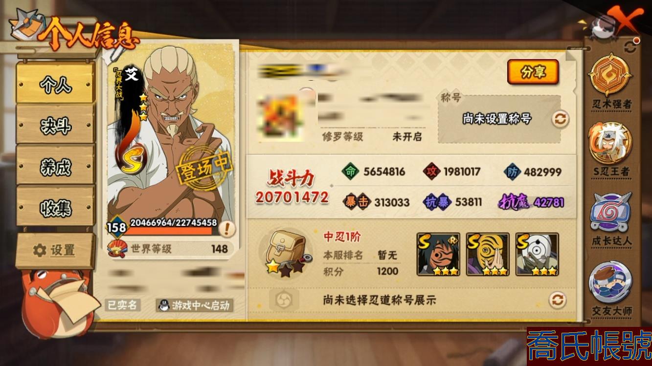 【OBHJPNG058142】戰鬥力:2070W+;段位:中忍1階;本服排名:163;戰區排名:未上榜;VIP級;S忍38個;A忍54個;通靈獸20個;S忍:千手柱間,須佐能乎旗木卡卡西,穢土轉生金角銀角,須佐能乎宇智波止水,白面具宇智波斑,四代目雷影艾,穢土轉生波風水門,穢土轉生宇智波斑,猿飛日斬,千手扉間,穢土轉生千手柱間,忍界大戰艾,舞之豪傑自來也,傳說中的三忍自來也,須佐能乎宇智波鼬,穢土轉生解宇智波斑,最終章大筒木舍人,永恆萬花筒宇智波佐助,超佩恩天道,四代目風影羅砂,綱手,穢土轉生長門,忍界大戰春野櫻,百豪綱手,穢土轉生宇智波鼬,神秘面具男,忍界大戰宇智波帶土,死門邁特凱,紅夜之刃神秘面具男,自來也,穢土轉生猿飛日斬,大蛇丸,波風水門,九喇嘛連結漩渦鳴人,暴怒第六尾漩渦鳴人,穢土轉生千手扉間,宇智波斑,天道佩恩;A忍:猿飛阿斯瑪,蠍,幹柿鬼鮫,飛段,疾風傳我愛羅,死司憑血飛段,五代目水影照美冥,小南,曉大蛇丸,宇智波鼬,迪達拉,四代目土影黑土,仙人模式漩渦鳴人,九尾查克拉漩渦鳴人,萬花筒寫輪眼宇智波佐助,須佐能乎宇智波佐助,宇智波泉奈,百豪春野櫻,忍界大戰秋道丁次,忍界大戰日向寧次,忍界大戰李洛克,最終章日向雛田,幻之真容旗木卡卡西,萬花筒寫輪眼旗木卡卡西,穢土轉生猿飛阿斯瑪,地陸,宇智波止水,火影繼承人猿飛日斬,青年波風水門,忍界大戰我愛羅,忍界大戰勘九郎,近松十人衛千代,穢土轉生桃地再不斬,漂泊武士桃地再不斬,奇拉比,忍界大戰奇拉比,青年艾,忍界大戰土臺,俠隱江湖藥師兜,半蛇斗篷藥師兜,不緣,青年長門,曉創生角都,地怨虞角都,穢土轉生角都,緋流琥蠍,穢土轉生迪達拉,漂泊浪客宇智波帶土,加藤斷,羈絆神農,猿飛木葉丸,五代目雷影達魯伊,桃式顯現漩渦博人,六代目水影長十郎;通靈獸:忍犬,藍蛇,蛤蟆吉,忍龜,鐮鼬,猿魔,山椒魚,蜃,蛤蟆仙人,鮫鯊,蛤蟆健,烏鴉,蛤蟆龍,砂之守鶴,蛤蟆廣,蛞蝓,夢貘,鷹,蜘蛛;時裝:百戰大蛇丸,狂野鮫鯊幹柿鬼鮫,百戰佩恩天道,百戰波風水門,剎寂鬼人桃地再不斬漂泊武士,太極靈韻日向花火武當宗師,龍的傳人李洛克截拳宗師,編織虛實宇智波鼬,熊貓少女天天峨眉宗師,血霧怪人幹柿鬼鮫,風之守護我愛羅忍界大戰,純白之心白,剎那的藝術迪達拉,可愛睡衣漩渦鳴人,烈土霓裳黑土四代目土影,緋櫻綻放春野櫻百豪,傳說的光芒波風水門;【139】【蘋果QQ】可轉生