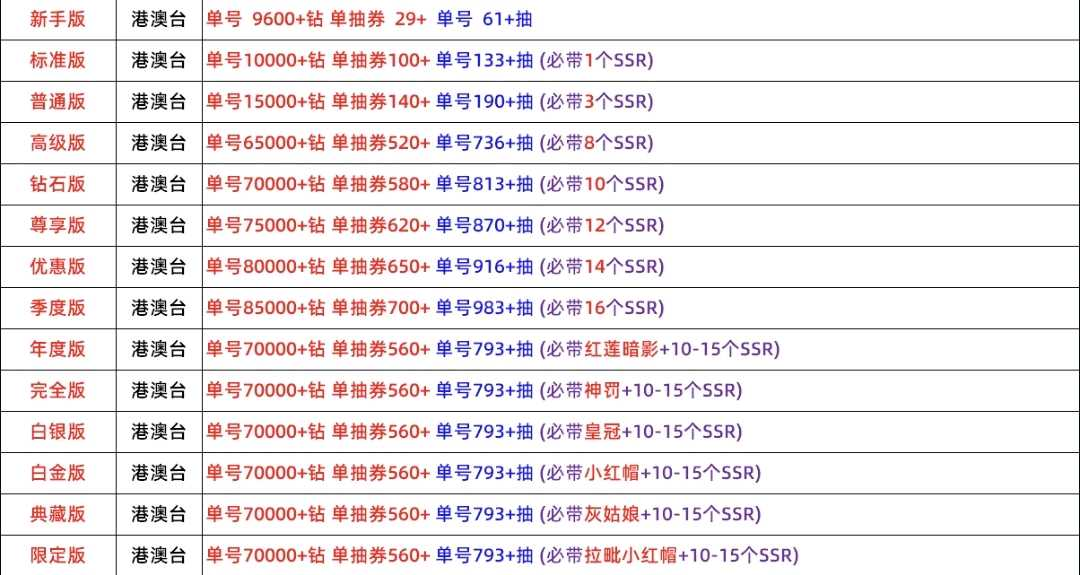 【普通版】 單號:15000+ 鑽 單抽券:140+ 單號抽數:190+ 抽 必帶 3 個 SSR