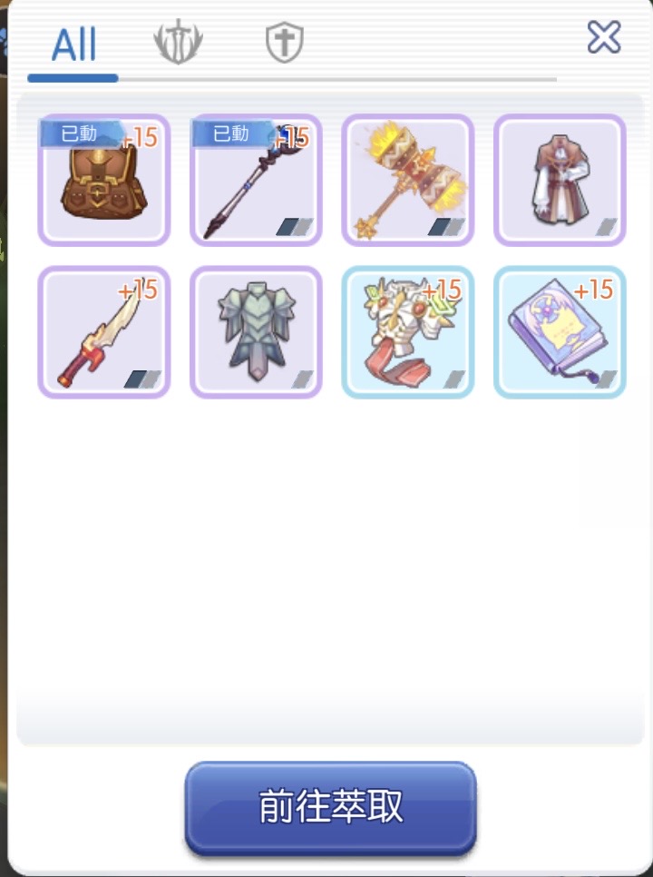 萃取:15易燃、15邪念、15人抗甲、15誓約之書、15公會背、壞鎚、隕甲
