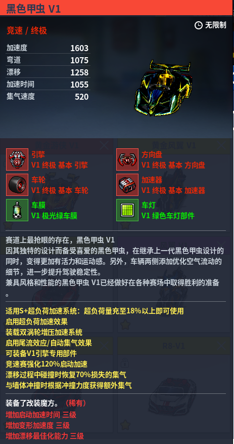 內容:黑騎士訊 + 5紅框V1(克洛諾斯V1+黑色甲蟲V+黃金遊俠V1+阿提密斯V1+紅旗V1) +黃金爆刃 V1 (車輛都頂改)