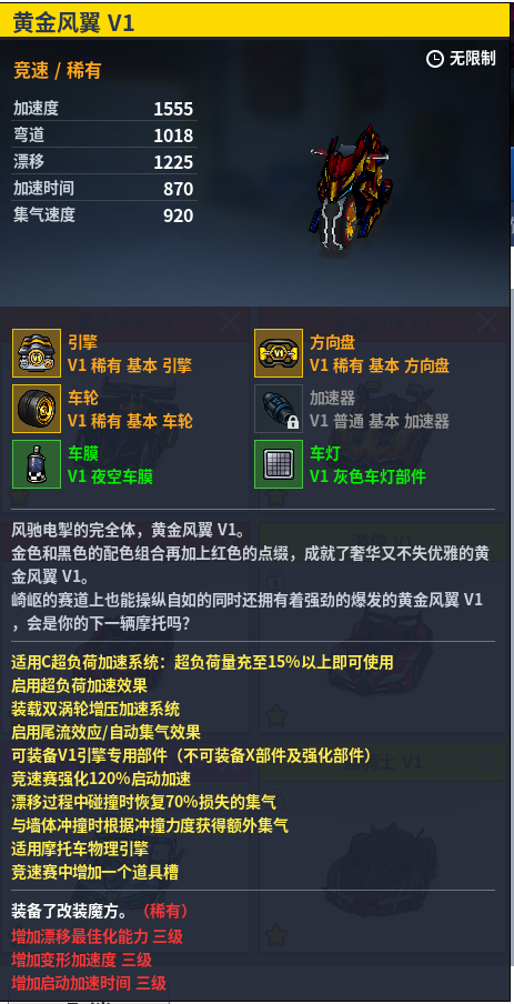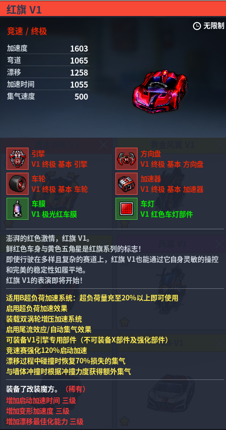 本單為⭐疾影訊 (+5頂改 改S賦能/台服叫巴爾札特)+ 5紅框V1(克洛諾斯V1+黑色甲蟲V+黃金遊俠V1+阿提密斯V1+紅旗V1) +黃金爆刃 V1 (車輛都頂改)⭐ 圖片配件僅供參考,其他車輛不計 3750 元 下單前請先詢問是否有庫存!