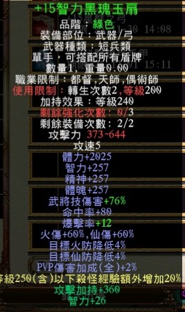 ㊣頂+15黑瑰玉扇76趴(全新綠階,強3,已強,智+26)-7000T