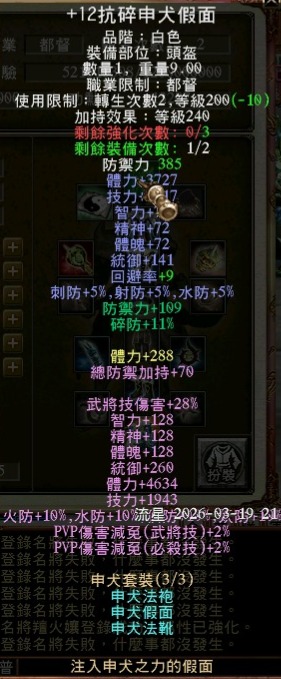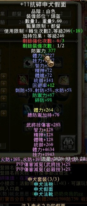 軍師套x3-2500T(如有選配抗碎17趴軍師頭則3500T)