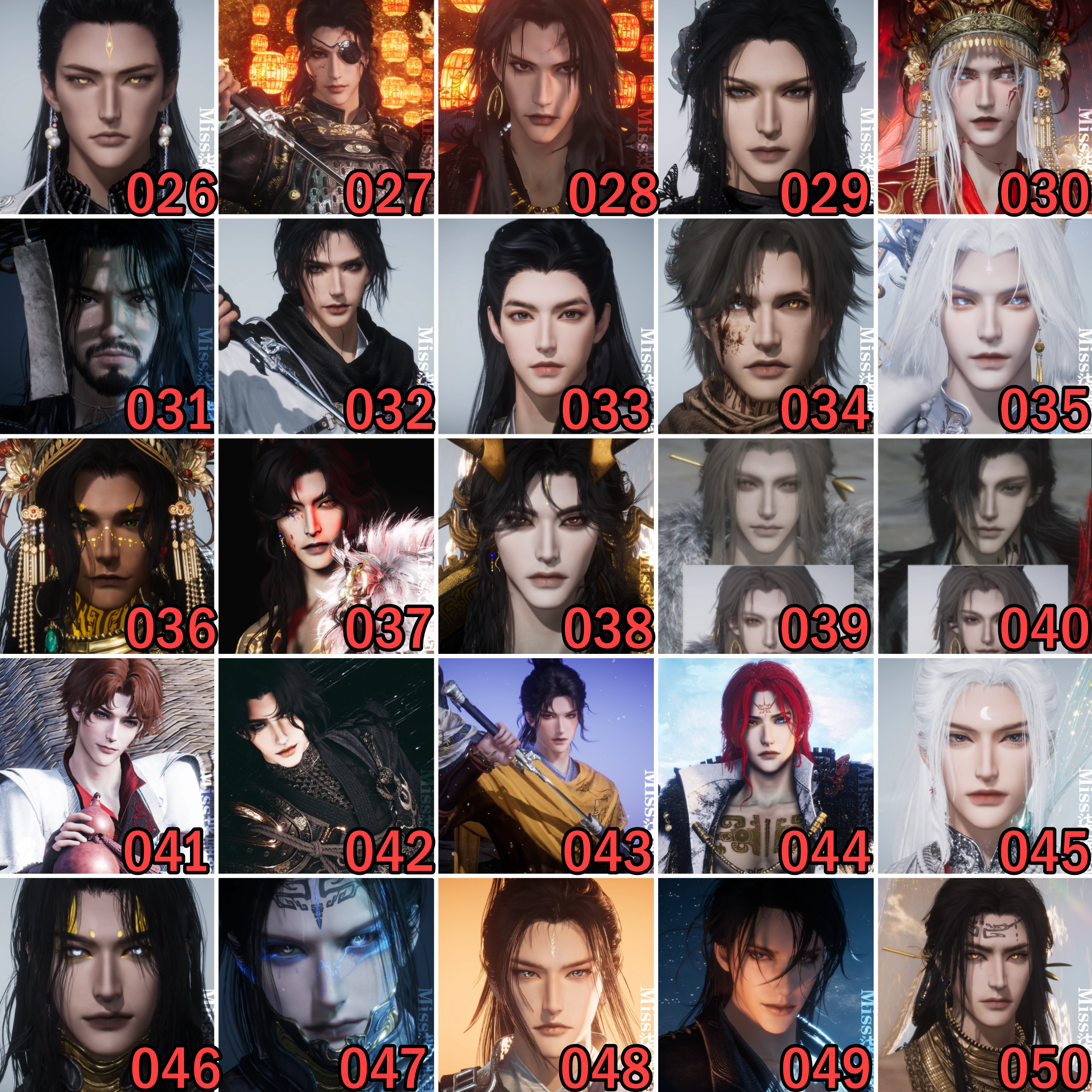 - 男臉:1~323
