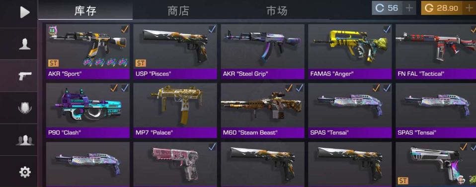 【DUJWX5519】按熱門槍械:AWM、AK、M4A1、M4|伺服器分類:國際服|含刀 + 手套套裝,紅皮 6 個、紫皮數量豐富,看好直接拍,詳情看圖【華為】【自主截圖】