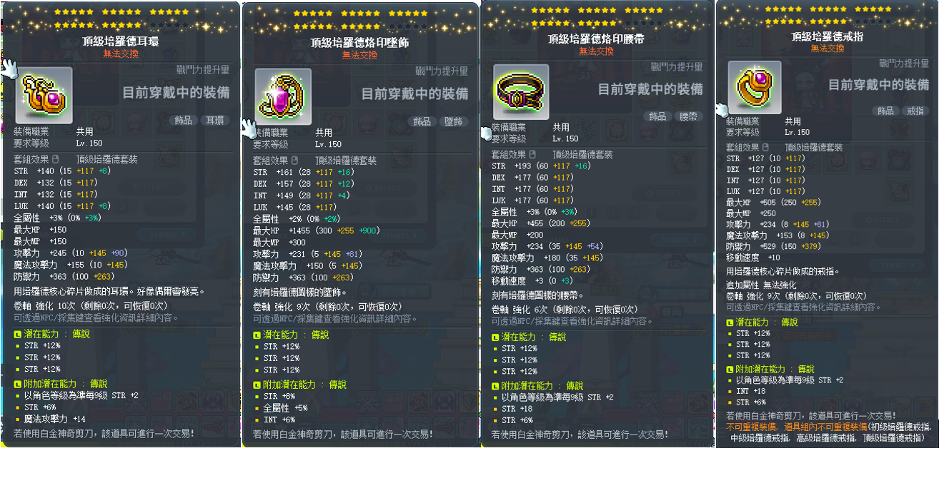 道具 【頂級培羅德一套】 漂流退谷 25星全B捲頂%力頂級培羅德耳環、墜飾、戒指、腰帶
