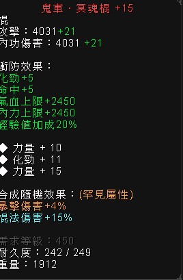 450+15 棍 15%棍傷+4%爆傷
