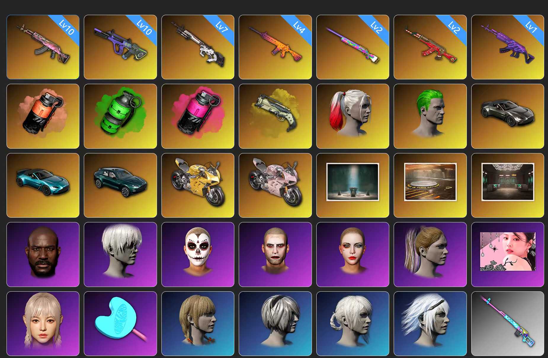 道具 一手號多舞蹈多皮膚多聯名多車皮 兩把十級槍