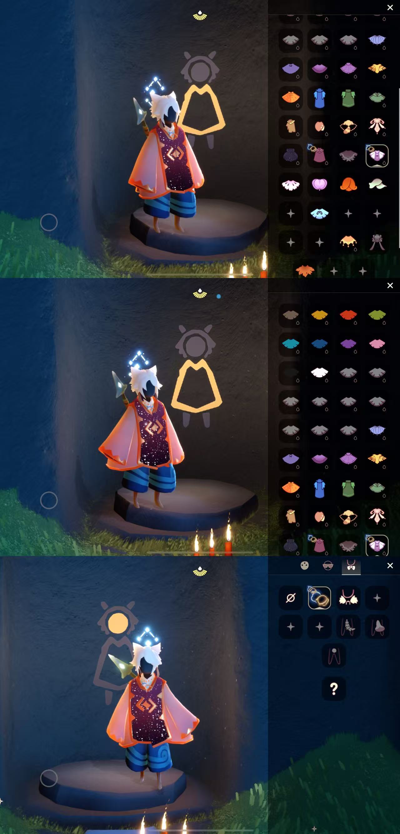 物品: 藍色熒光光環 暮星斗篷 海洋武士褲 矮人 黑臉 揹帶褲 搓澡巾 虛榮發 寶寶褲 櫻花髮型 擊劍褲 黃鼠狼 萬聖貓貓頭 棉褲 頭冠面飾 蝴蝶結髮飾 歐式鑲邊長褲 藍色燕尾長褲 櫻花鬥 彩虹斗篷 鋼琴 雨傘 胖嘟嘟的歐式斗篷 燒火棍 觀鳥臺背飾小飛象 指甲殼 雨媽 龍骨 菇菇 卡卡 鬍子 大波浪 白鬥 粉鬥 紅鬥 黑鬥 藍鬥 櫻花鬥 紫藤鬥 貓貓頭帽 軍帽 花苞鬥 魔法鍋 星星燈 總裁連體褲 爆炸雨媽 短人面具 瘋帽匠 殭屍貼 兔子面具 龍面具 老虎面具 玫瑰面具 楓葉斗篷 蔚紫斗篷 衝浪板 鬱金香斗篷 紫虅蘿斗篷 相機 浣熊尾巴 鐵鏟 等等……(還有很多沒列舉出來的看圖)