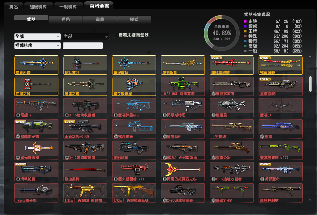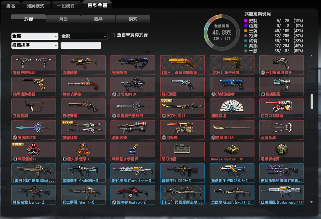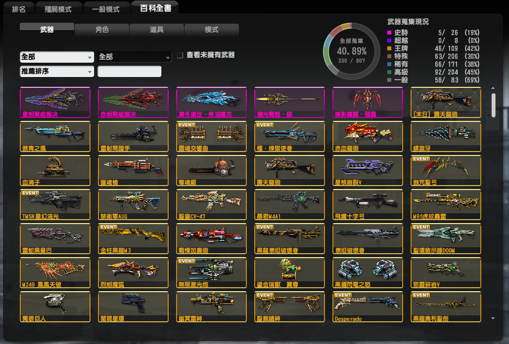 帳號 【5史詩武器、44王牌武器、39王牌角色】 紫稱 雙馬神、蛇神、戰戟、惡魔雷,39王牌角44王牌武器