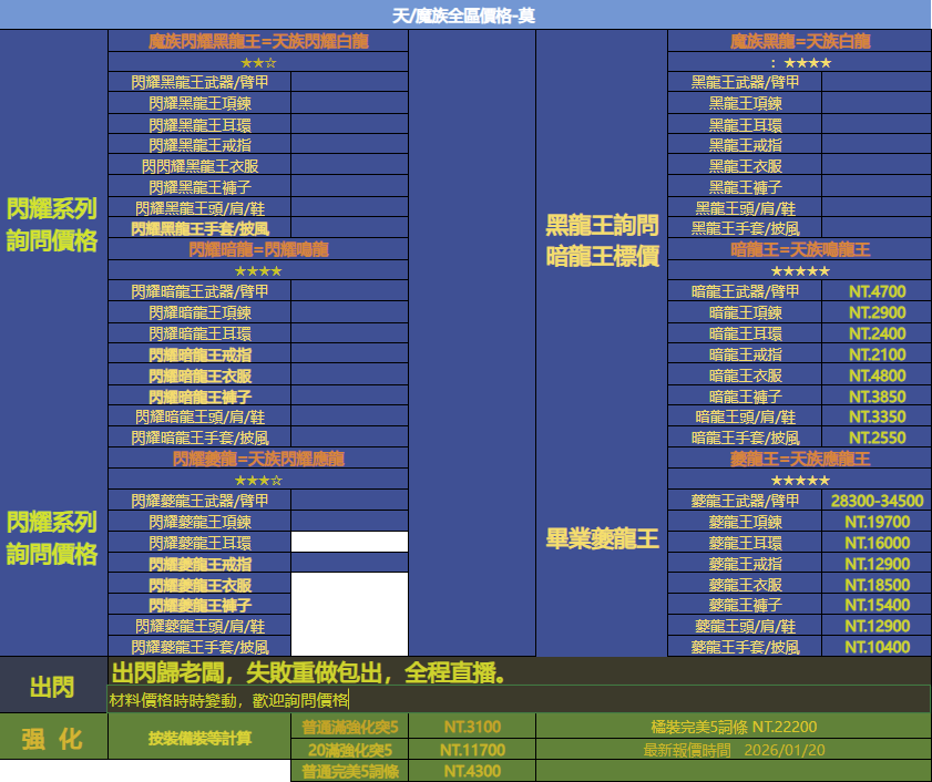 戰力2500~3000以上精品號 = 詢問