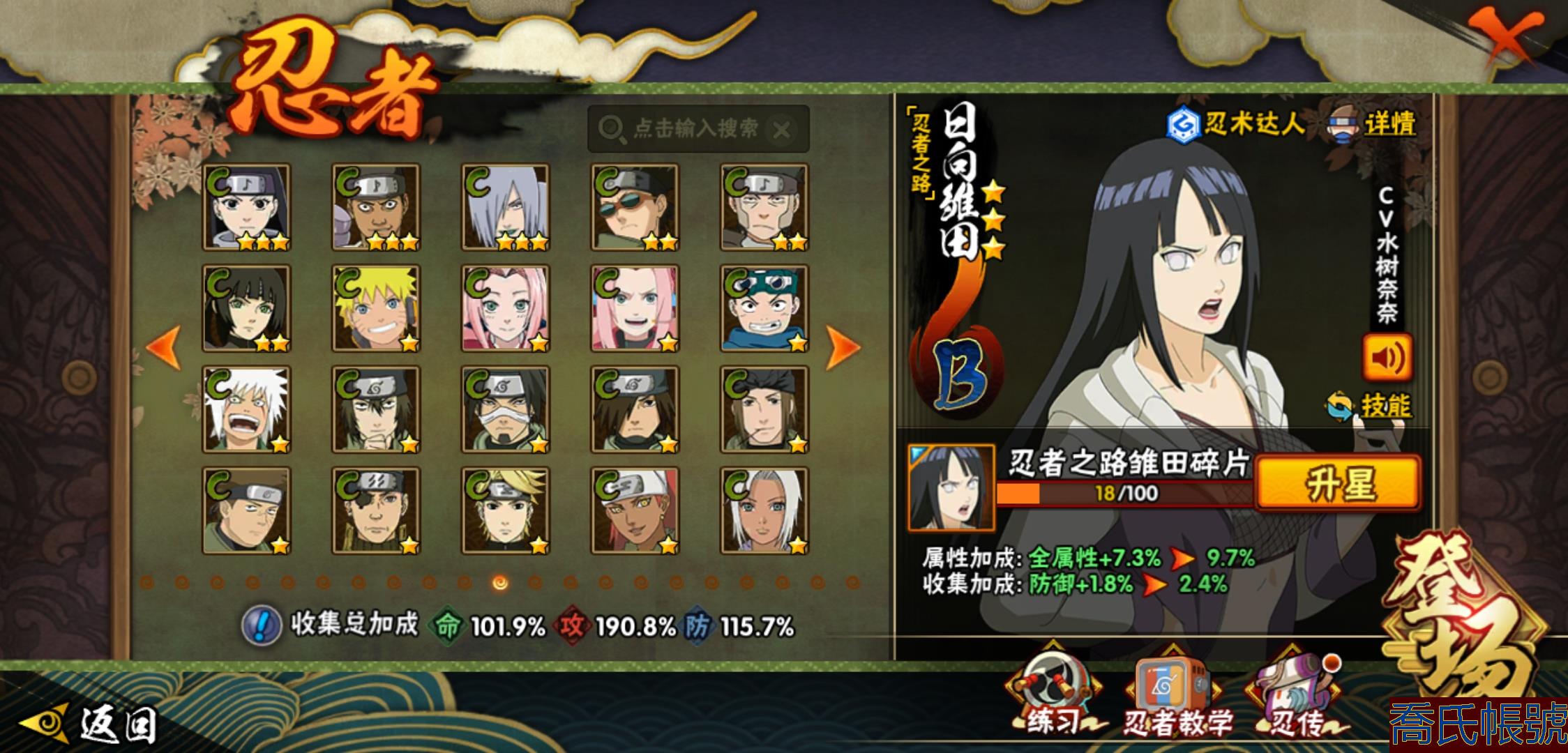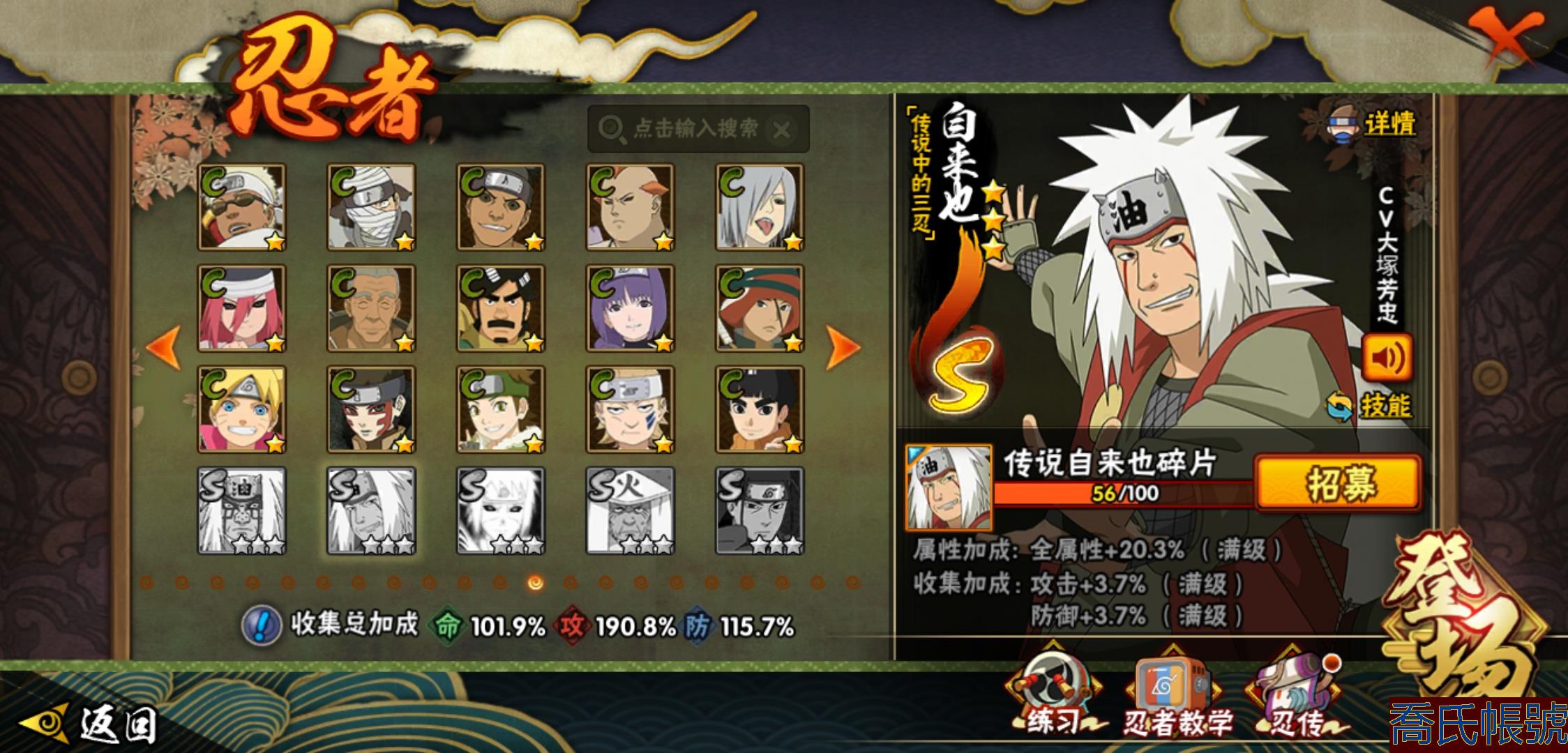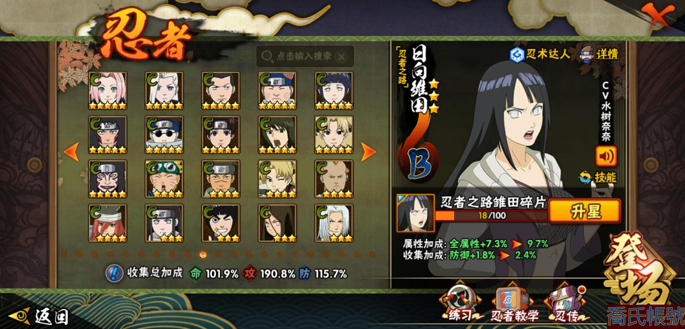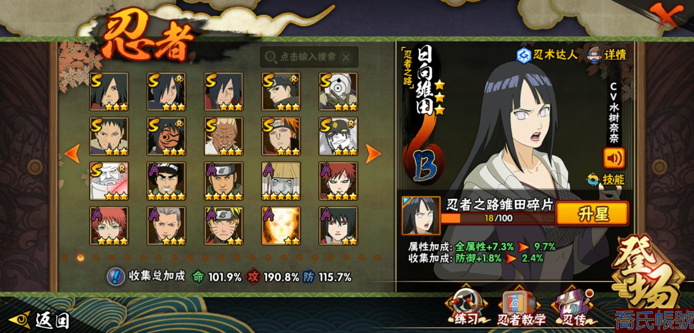 【OBHXDNK206742】戰鬥力:1351W+;段位:中忍3階;本服排名:346;戰區排名:未上榜;VIP11級;S忍31個;A忍53個;通靈獸20個;S忍:大蛇丸(4星),須佐能乎宇智波鼬(4星),暴怒第六尾漩渦鳴人,九喇嘛連結漩渦鳴人,永恆萬花筒宇智波佐助,忍界大戰春野櫻,須佐能乎旗木卡卡西,自來也,舞之豪傑自來也,綱手,百豪綱手,死門邁特凱,波風水門,穢土轉生波風水門,穢土轉生猿飛日斬,穢土轉生千手扉間,千手扉間,穢土轉生千手柱間,木葉創立千手柱間,穢土轉生宇智波斑,宇智波斑,木葉創立宇智波斑,穢土轉生解宇智波斑,須佐能乎宇智波止水,白面具宇智波斑,忍界大戰宇智波帶土,紅夜之刃神秘面具男,忍界大戰艾,天道佩恩,大筒木桃式,大筒木金式;A忍:邁特凱(5星),猿飛阿斯瑪(5星),幹柿鬼鮫(5星),疾風傳我愛羅(4星),蠍(4星),飛段(3星),仙人模式漩渦鳴人,九尾查克拉漩渦鳴人,萬花筒寫輪眼宇智波佐助,須佐能乎宇智波佐助,宇智波泉奈,百豪春野櫻,忍界大戰秋道丁次,忍界大戰日向寧次,忍界大戰李洛克,最終章日向雛田,幻之真容旗木卡卡西,萬花筒寫輪眼旗木卡卡西,宇智波止水,青年波風水門,忍界大戰我愛羅,近松十人衛千代,俠隱江湖照美冥,五代目水影照美冥,桃地再不斬,穢土轉生桃地再不斬,忍界大戰奇拉比,奇拉比,青年艾,漂泊武士千手扉間,半蛇斗篷藥師兜,不風,不緣,青年長門,小南,夏日泳裝小南,漂泊浪客小南,角都,地怨虞角都,穢土轉生角都,曉大蛇丸,緋流琥蠍,宇智波鼬,新春限定宇智波鼬,迪達拉,穢土轉生迪達拉,死司憑血飛段,羈絆神農,猿飛木葉丸,五代目雷影達魯伊,桃式顯現漩渦博人,六代目水影長十郎,四代目土影黑土;通靈獸:忍犬,藍蛇,蛤蟆吉,忍龜,鐮鼬,猿魔,山椒魚,蜃,蛞蝓,蛤蟆仙人,鮫鯊,蛤蟆健,烏鴉,砂之守鶴,蛤蟆龍,蛤蟆廣,夢貘,熊貓,辛牙,鷹;時裝:百戰大蛇丸,百戰宇智波鼬須佐能乎,百戰波風水門,百戰佩恩天道,蜀面豪傑舞之豪傑自來也,太極靈韻日向花火武當宗師,龍的傳人李洛克截拳宗師,緋櫻綻放春野櫻百豪,剎那的藝術迪達拉,可愛睡衣漩渦鳴人,傳說的光芒波風水門,風之守護我愛羅忍界大戰,血霧怪人幹柿鬼鮫,熊貓少女天天峨眉宗師,紅月映雪宇智波鼬新春限定;【152】