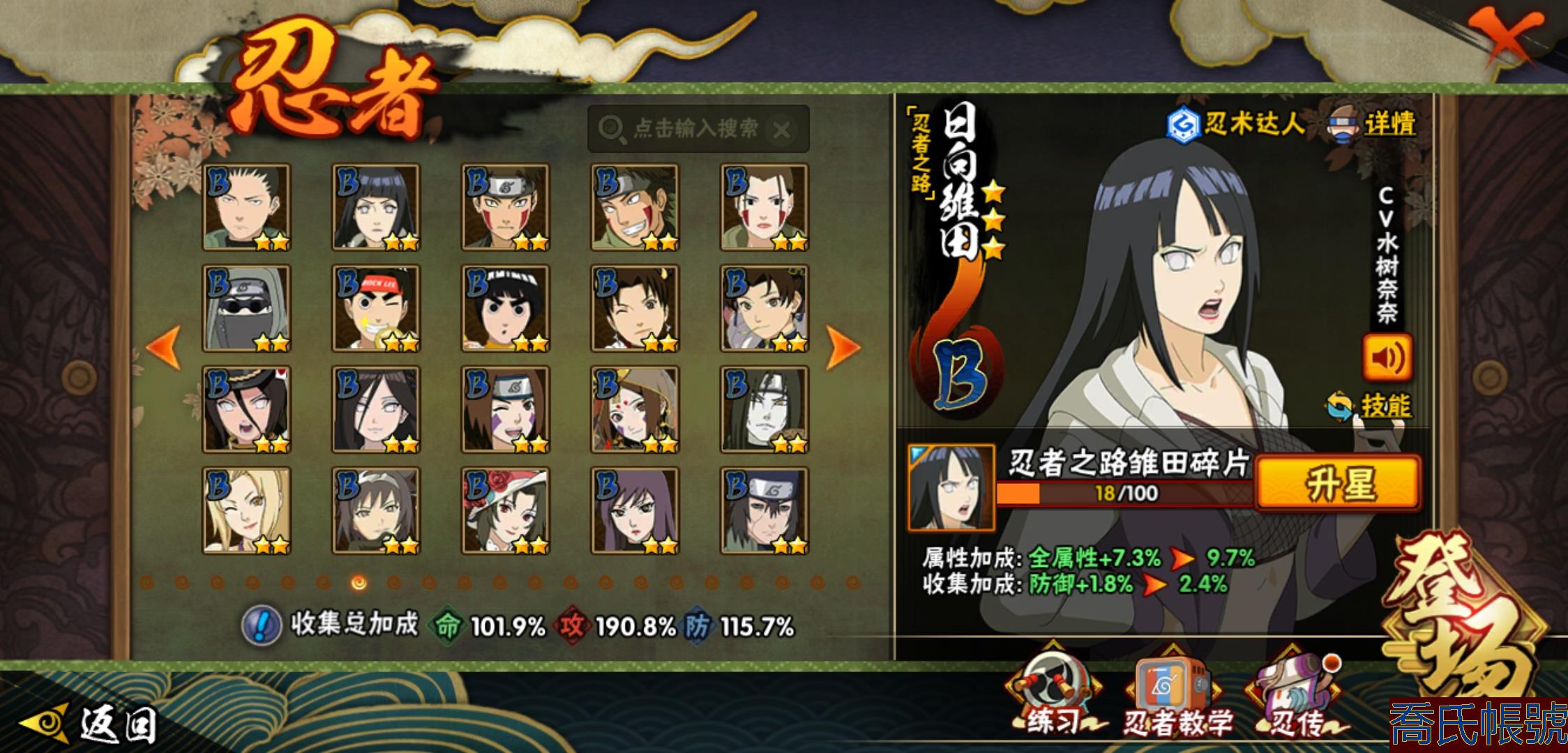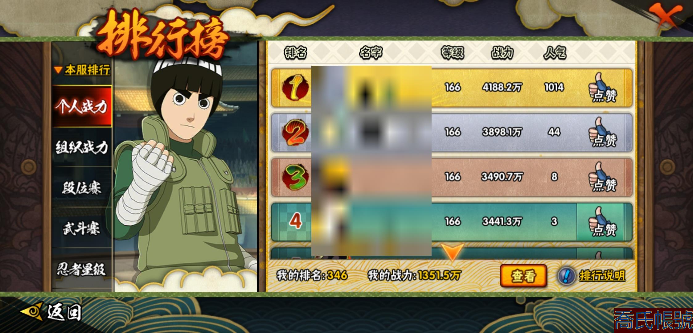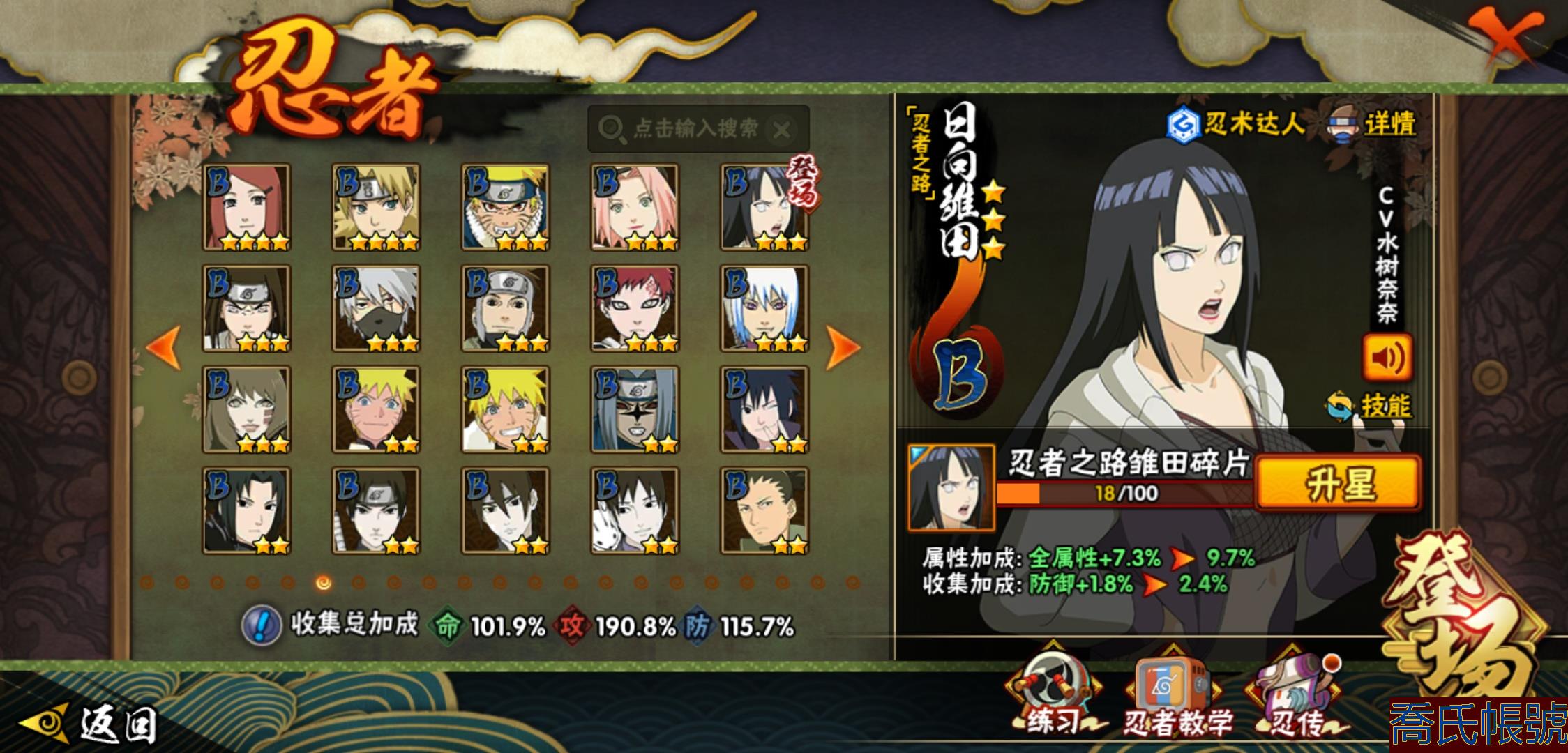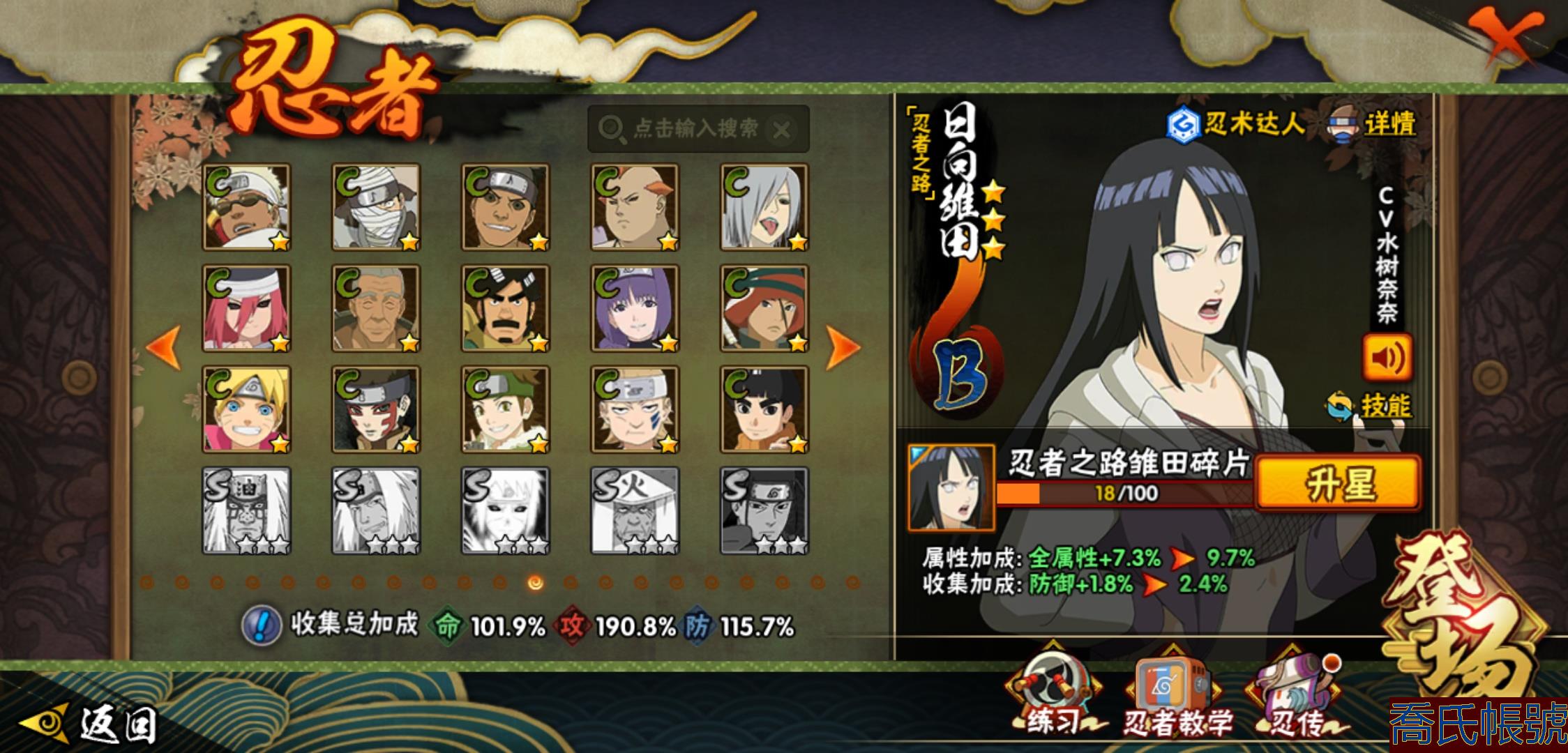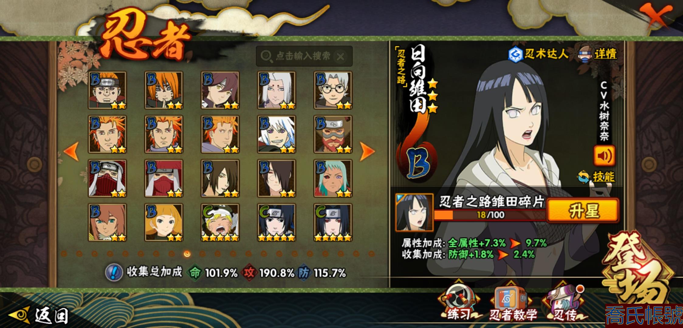 【OBHXDNK206742】戰鬥力:1351W+;段位:中忍3階;本服排名:346;戰區排名:未上榜;VIP11級;S忍31個;A忍53個;通靈獸20個;S忍:大蛇丸(4星),須佐能乎宇智波鼬(4星),暴怒第六尾漩渦鳴人,九喇嘛連結漩渦鳴人,永恆萬花筒宇智波佐助,忍界大戰春野櫻,須佐能乎旗木卡卡西,自來也,舞之豪傑自來也,綱手,百豪綱手,死門邁特凱,波風水門,穢土轉生波風水門,穢土轉生猿飛日斬,穢土轉生千手扉間,千手扉間,穢土轉生千手柱間,木葉創立千手柱間,穢土轉生宇智波斑,宇智波斑,木葉創立宇智波斑,穢土轉生解宇智波斑,須佐能乎宇智波止水,白面具宇智波斑,忍界大戰宇智波帶土,紅夜之刃神秘面具男,忍界大戰艾,天道佩恩,大筒木桃式,大筒木金式;A忍:邁特凱(5星),猿飛阿斯瑪(5星),幹柿鬼鮫(5星),疾風傳我愛羅(4星),蠍(4星),飛段(3星),仙人模式漩渦鳴人,九尾查克拉漩渦鳴人,萬花筒寫輪眼宇智波佐助,須佐能乎宇智波佐助,宇智波泉奈,百豪春野櫻,忍界大戰秋道丁次,忍界大戰日向寧次,忍界大戰李洛克,最終章日向雛田,幻之真容旗木卡卡西,萬花筒寫輪眼旗木卡卡西,宇智波止水,青年波風水門,忍界大戰我愛羅,近松十人衛千代,俠隱江湖照美冥,五代目水影照美冥,桃地再不斬,穢土轉生桃地再不斬,忍界大戰奇拉比,奇拉比,青年艾,漂泊武士千手扉間,半蛇斗篷藥師兜,不風,不緣,青年長門,小南,夏日泳裝小南,漂泊浪客小南,角都,地怨虞角都,穢土轉生角都,曉大蛇丸,緋流琥蠍,宇智波鼬,新春限定宇智波鼬,迪達拉,穢土轉生迪達拉,死司憑血飛段,羈絆神農,猿飛木葉丸,五代目雷影達魯伊,桃式顯現漩渦博人,六代目水影長十郎,四代目土影黑土;通靈獸:忍犬,藍蛇,蛤蟆吉,忍龜,鐮鼬,猿魔,山椒魚,蜃,蛞蝓,蛤蟆仙人,鮫鯊,蛤蟆健,烏鴉,砂之守鶴,蛤蟆龍,蛤蟆廣,夢貘,熊貓,辛牙,鷹;時裝:百戰大蛇丸,百戰宇智波鼬須佐能乎,百戰波風水門,百戰佩恩天道,蜀面豪傑舞之豪傑自來也,太極靈韻日向花火武當宗師,龍的傳人李洛克截拳宗師,緋櫻綻放春野櫻百豪,剎那的藝術迪達拉,可愛睡衣漩渦鳴人,傳說的光芒波風水門,風之守護我愛羅忍界大戰,血霧怪人幹柿鬼鮫,熊貓少女天天峨眉宗師,紅月映雪宇智波鼬新春限定;【152】