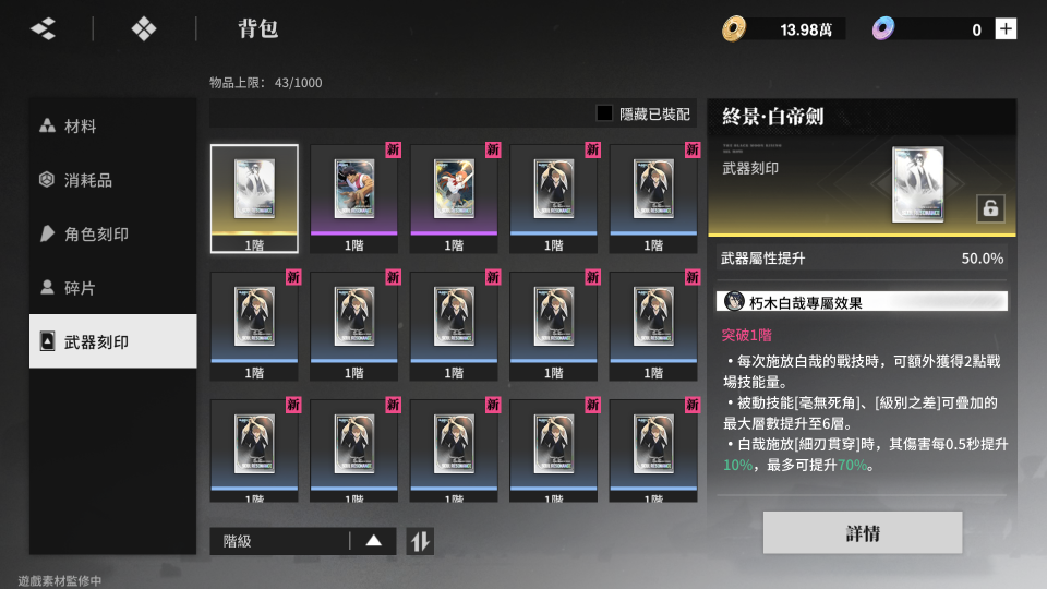 【初始號】💖婗⭐台服首抽 自抽號✅限定一護.卍解💖SSR朽木白哉+專武✅現貨 帳號未綁