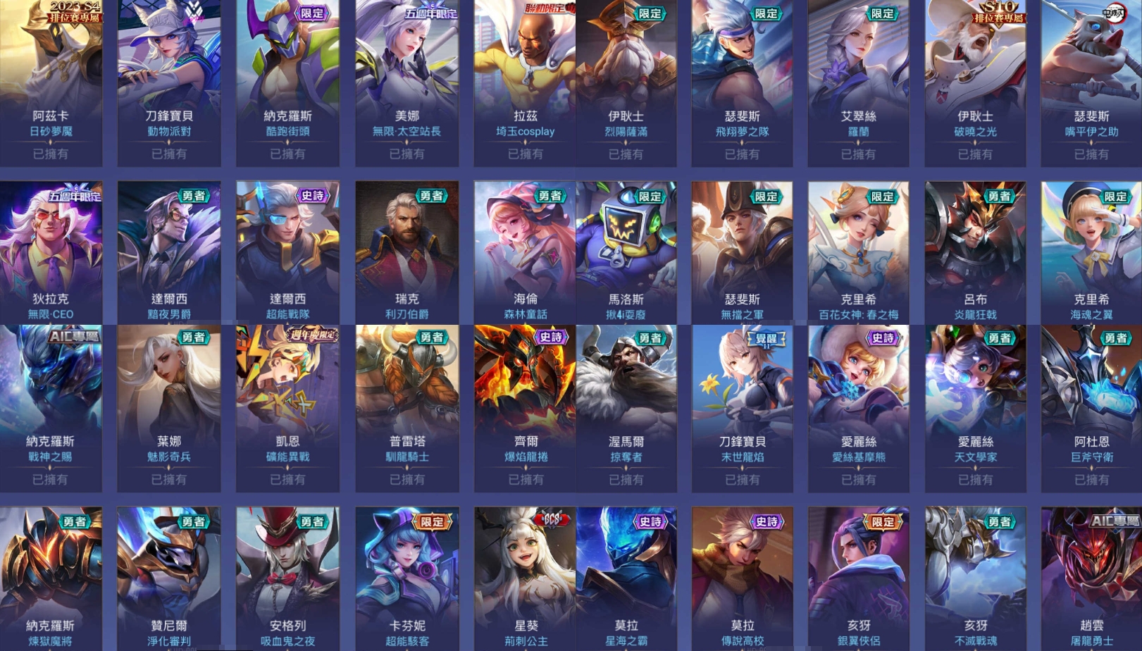 英雄118隻 造型275個 請看附圖