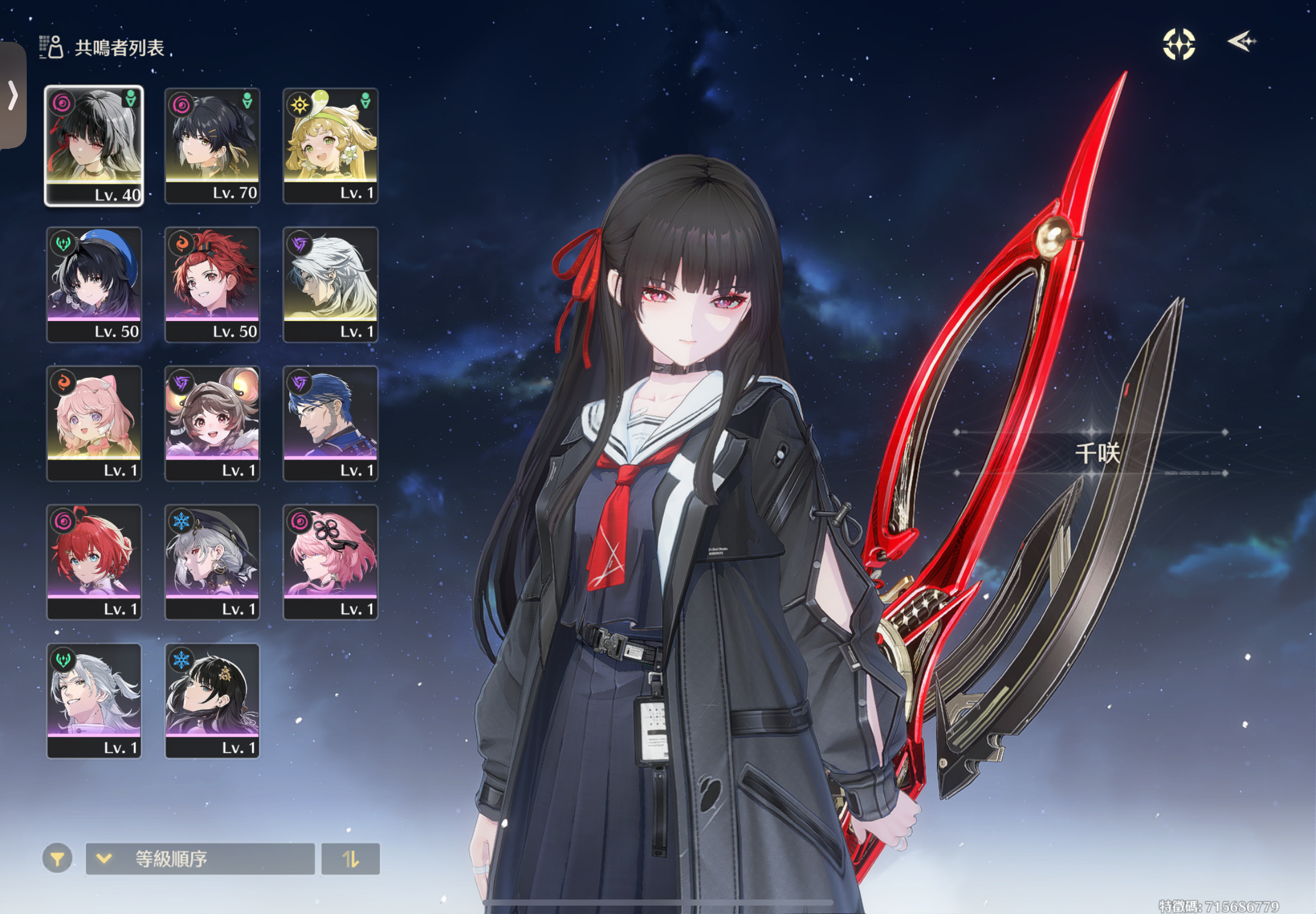 【45等、5金角、2金武】 千咲4+1小歐號 維神卡卡羅1+0 新地圖版本活動都還沒動 星聲還會再增加