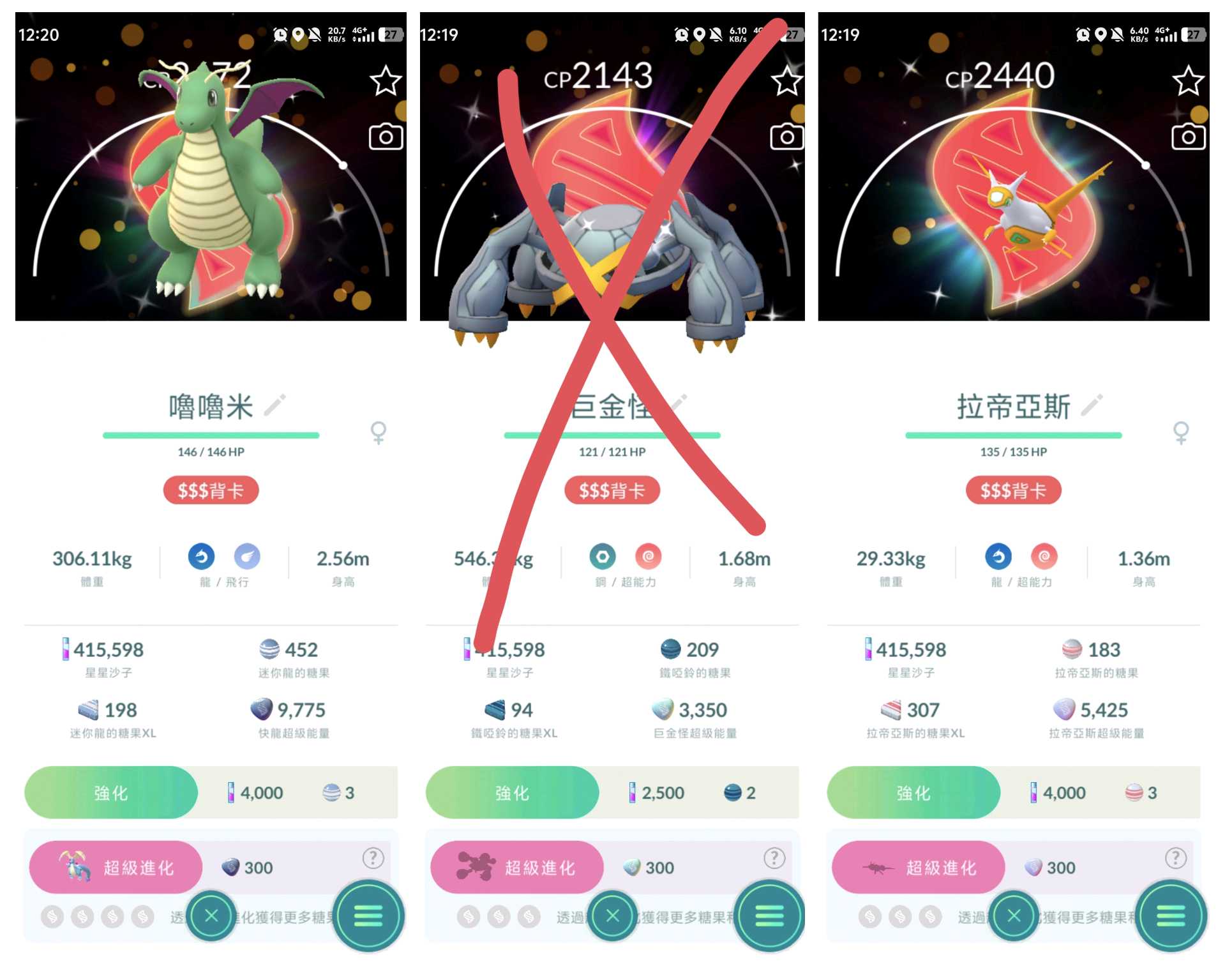 🌟普通寶可夢:75元/隻(296XL糖果)