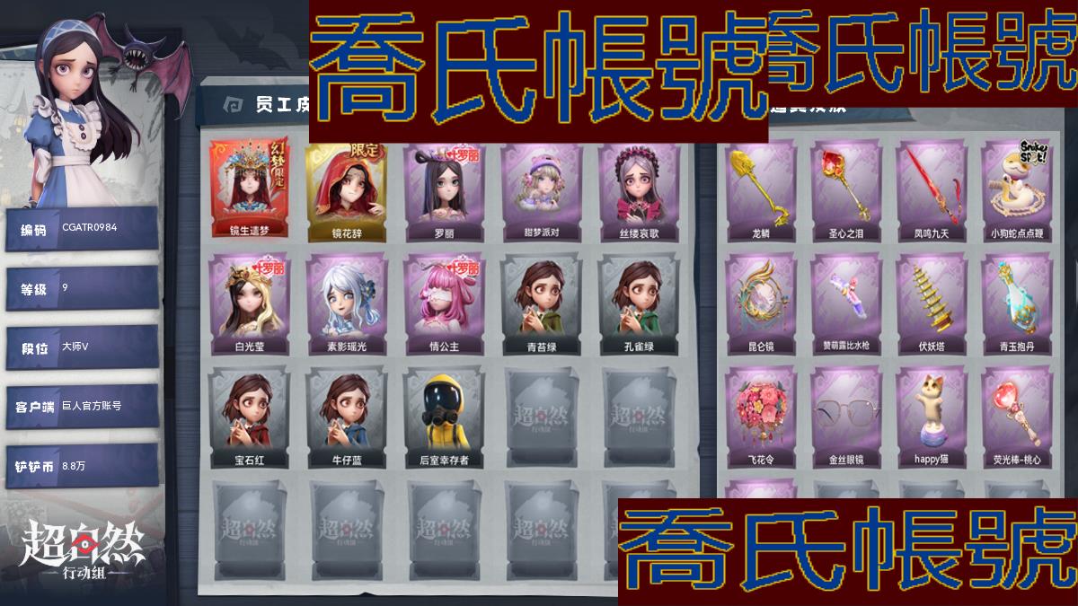 【OBCGATR098442】幻夢1;金皮1;紫皮6;道具13;累充1820元;金磚318;鏟鏟幣8.8萬;皮膚:巫鈴兒-鏡生遺夢,巫鈴兒-鏡花辭,小黃-羅麗,愛麗絲-甜夢派對,愛麗絲-絲縷哀歌,薇薇安-白光瑩,巫鈴兒-素影瑤光,莉莉-情公主;道具:鏟子-龍鱗,鏟子-聖心之淚,桃木劍-鳳鳴九天,長鞭-小狗蛇點點鞭,傳送按鈕-昆侖鏡,短管獵槍-贊萌露比水槍,葫蘆-伏妖塔,黃牛能量飲料-青玉抱丹,額外的揹包-飛花令,夜視儀-金絲眼鏡,音響-happy貓,熒光棒-桃心-熒光棒-桃心,轉輪手槍-新星時代;飾品:頭飾-精緻露比頭套,頭飾-火爆了頭套,頭飾-炙熱燒烤,頭飾-咬咬鯊頭套,頭飾-魚頭怪頭套,頭飾-小狗蛇點點頭套,頭飾-烈焰紅唇頭套,頭飾-面具馬頭套,頭飾-哈士奇頭套,頭飾-嘻嘻頭套,頭飾-滑稽頭套,頭飾-呆滯頭套,頭飾-卑微頭套,頭飾-畫素朋克墨鏡,背飾-梵音蓮華,背飾-尋涼記,背飾-蝶戀花,掛飾-釵頭鳳;動作:動作-luvaboy,動作-鵬友搖,動作-舞臺中心,動作-DL搖,動作-舉牌,動作-抬手;工牌背景:卷珠簾,聖光之誓,冰晶宮,花蕾城堡,情語塔,童話扉頁,點點萌伴;工牌動作:虔誠之姿;員工:小黃,愛麗絲,零,薇薇安,巫鈴兒,莉莉,蘭;段位:大師V;等級:9;【巨人官方賬號】