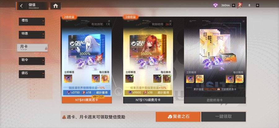 月卡已開 目前21章還有很多資源能挖