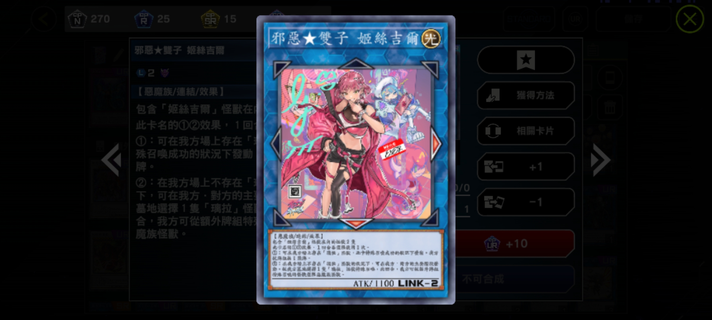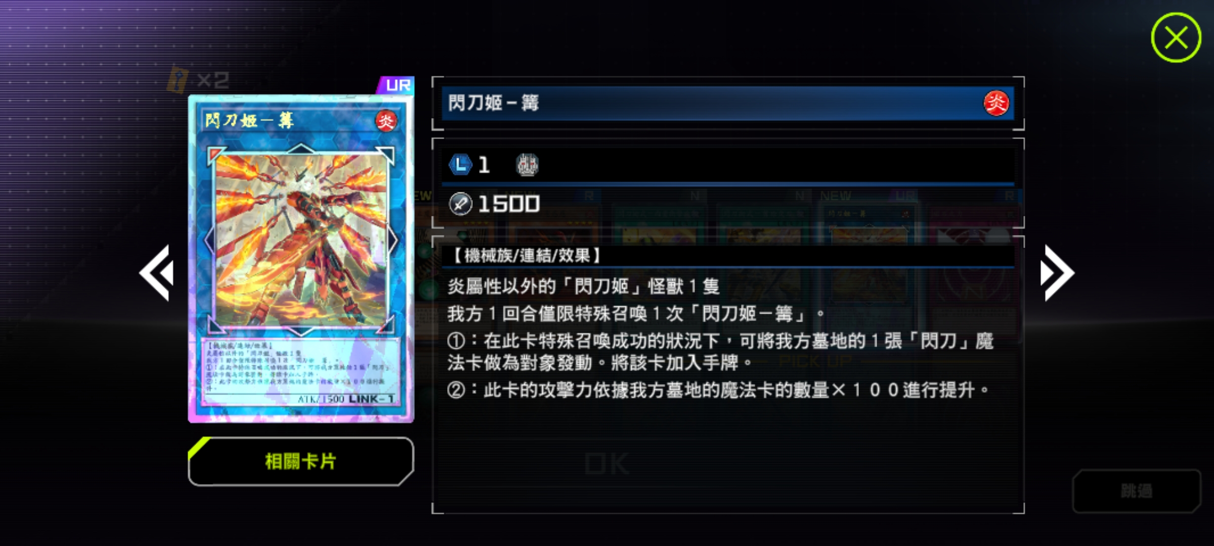 怪獸卡:灰流麗(手坑)、效果分隔士(手坑)、幽鬼兔(手坑)、小丑與鎖鳥(手坑)、原始生命體-尼比魯(手坑)、增值的C(手坑)、閃刀姬-零(異圖版!)、閃刀姬-篝(異圖版!鑽卡!)、閃刀姬-霖(L1連結,異圖版!)、閃刀姬-颯(L1連結,異圖版!)、邪惡*雙子 姬絲吉爾(L2連結,異圖版!)、邪惡*雙子 璃菈(L2連結,異圖版!)