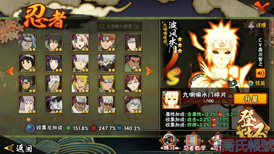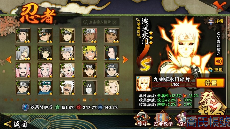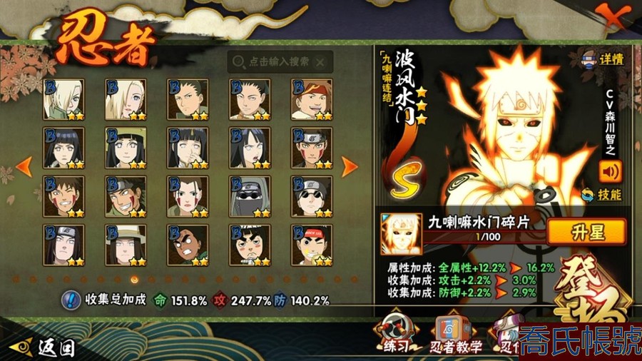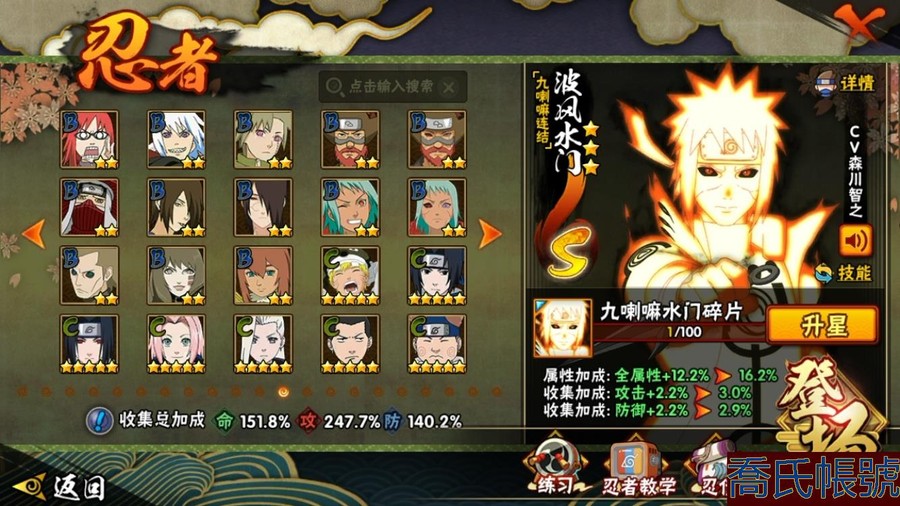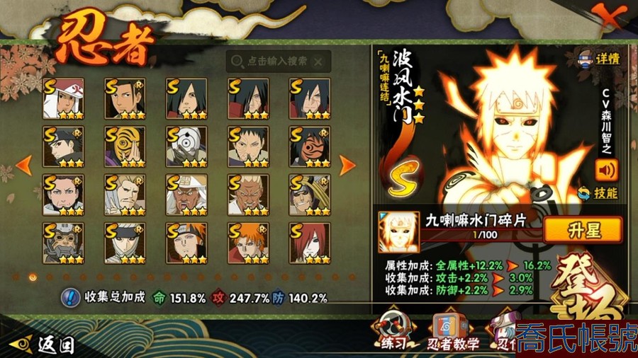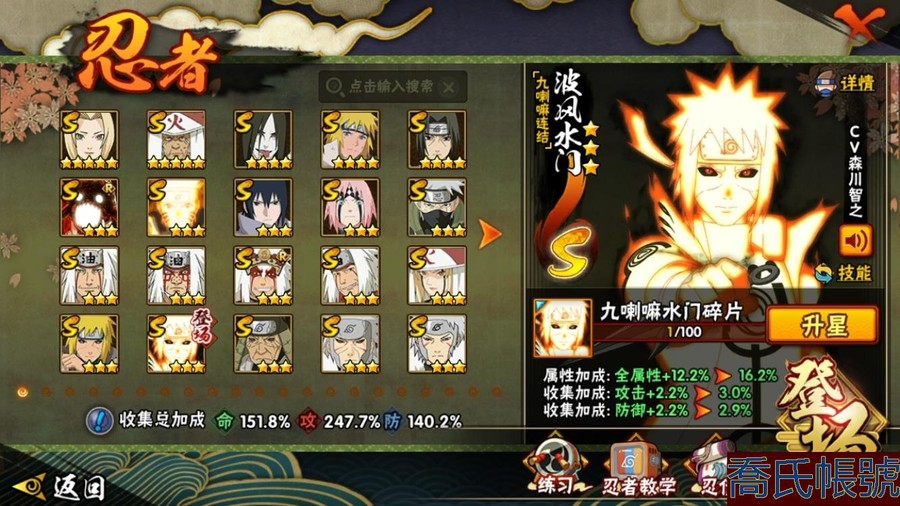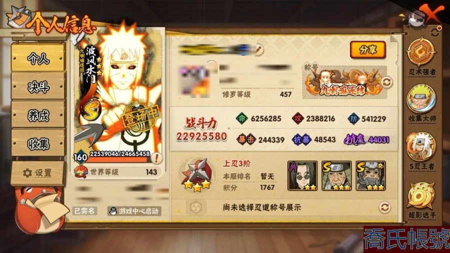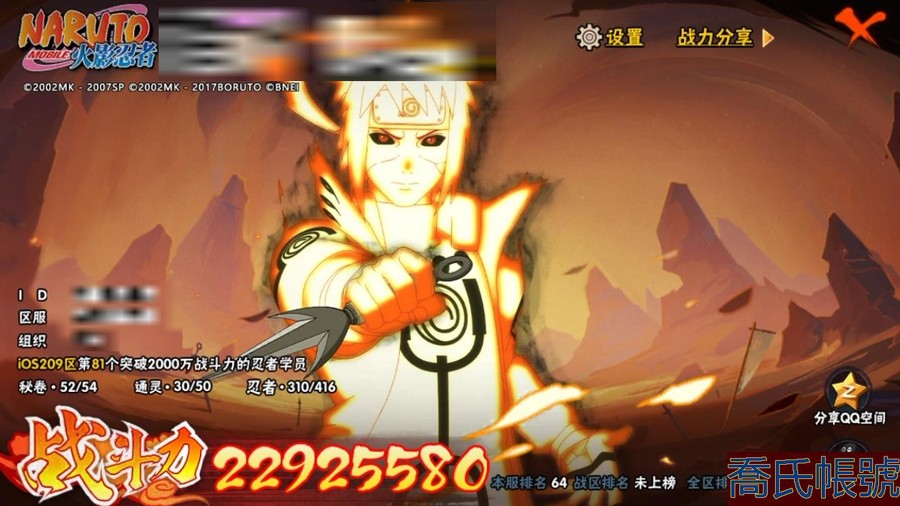 【OBHAWYM157042】戰鬥力:2292W+;段位:上忍3階;本服排名:64;戰區排名:未上榜;VIP14級;S忍43個;A忍59個;通靈獸30個;S忍:最終章大筒木舍人,穢土轉生半藏,二代目水影鬼燈幻月,自來也,忍界大戰宇智波帶土,穢土轉生千手扉間,永恆萬花筒宇智波佐助,波風水門,穢土轉生猿飛日斬,宇智波斑,九喇嘛連結漩渦鳴人,仙人模式自來也,二代目土影無,超佩恩天道,九喇嘛連結波風水門,大筒木金式,穢土轉生長門,穢土轉生金角銀角,神秘面具男,天道佩恩,忍界大戰春野櫻,傳說中的三忍自來也,穢土轉生波風水門,舞之豪傑自來也,暴怒第六尾漩渦鳴人,四代目雷影艾,須佐能乎旗木卡卡西,千手扉間,穢土轉生解宇智波斑,忍界大戰艾,綱手,穢土轉生宇智波斑,木葉創立千手柱間,大蛇丸,大筒木桃式,須佐能乎宇智波止水,初代目風影烈鬥,須佐能乎宇智波鼬,千手柱間,白面具宇智波斑,百豪綱手,紅夜之刃神秘面具男,猿飛日斬;A忍:邁特凱,猿飛阿斯瑪,蠍,幹柿鬼鮫,疾風傳我愛羅,飛段,死司憑血飛段,仙人模式漩渦鳴人,旗木卡卡西,宇智波止水,五代目水影照美冥,忍界大戰土臺,宇智波鼬,初始形態機械鳴人,九尾查克拉漩渦鳴人,萬花筒寫輪眼宇智波佐助,須佐能乎宇智波佐助,疾風傳咒印宇智波佐助,宇智波泉奈,百豪春野櫻,忍界大戰秋道丁次,忍界大戰日向寧次,忍界大戰李洛克,最終章日向雛田,幻之真容旗木卡卡西,萬花筒寫輪眼旗木卡卡西,驚門邁特凱,穢土轉生猿飛阿斯瑪,志村團藏,新春限定波風水門,青年波風水門,忍界大戰我愛羅,近松十人衛千代,穢土轉生桃地再不斬,奇拉比,忍界大戰奇拉比,半蛇斗篷藥師兜,青年長門,小南,夏日泳裝小南,曉創生角都,角都,地怨虞角都,穢土轉生角都,曉大蛇丸,緋流琥蠍,新春限定宇智波鼬,鮫肌融合幹柿鬼鮫,迪達拉,穢土轉生迪達拉,暴怒宇智波帶土,加藤斷,俠隱江湖大野木,羈絆神農,猿飛木葉丸,五代目雷影達魯伊,六代目水影長十郎,桃式顯現漩渦博人,四代目土影黑土;通靈獸:忍犬,藍蛇,蛤蟆吉,忍龜,鐮鼬,猿魔,山椒魚,蜃,蛤蟆仙人,鮫鯊,蛤蟆健,烏鴉,蛞蝓,熊貓,蛤蟆龍,二尾又旅,,蛤蟆廣,蛤蟆文太,怒鬼,萬蛇,夢貘,砂之守鶴,辛牙,蜘蛛,四尾孫悟空,怒鬼爪,守鶴;時裝:百戰宇智波鼬須佐能乎,百戰波風水門,百戰大蛇丸,百戰佩恩天道,蜀面豪傑舞之豪傑自來也,太極靈韻日向花火武當宗師,烈土霓裳黑土四代目土影,血紅辣椒旋渦玖辛奈少女,龍的傳人李洛克截拳宗師,緋櫻綻放春野櫻百豪,血霧怪人幹柿鬼鮫,憤怒的伊始宇智波帶土暴怒,初代目火影千手柱間,熊貓少女天天峨眉宗師,火之意志綱手百豪,可愛睡衣漩渦鳴人,水之妖姬照美冥五代目水影,雷電之力艾四代目雷影,智勇記者宇智波佐良娜;【QQ209】【蘋果QQ】