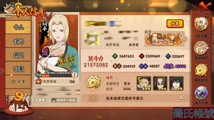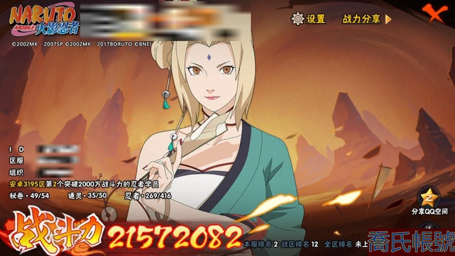 【OBHAWYM237342】戰鬥力:2157W+;段位:;本服排名:2;戰區排名:12 ;VIP15級;S忍39個;A忍63個;通靈獸35個;S忍:仙人模式自來也,暴怒第六尾漩渦鳴人,大蛇丸,傳說中的三忍自來也,白面具宇智波斑,初代目風影烈鬥,忍界大戰艾,須佐能乎宇智波鼬,忍界大戰大野木,紅夜之刃神秘面具男,四代目雷影艾,穢土轉生猿飛日斬,猿飛日斬,大筒木桃式,三代目土影大野木,木葉創立千手柱間,神秘面具男,天道佩恩,舞之豪傑自來也,穢土轉生長門,須佐能乎旗木卡卡西,穢土轉生解宇智波斑,二代目土影無,忍界大戰春野櫻,自來也,永恆萬花筒宇智波佐助,綱手,五影會談宇智波斑,忍界大戰宇智波帶土,九喇嘛連結波風水門,百豪綱手,波風水門,二代目水影鬼燈幻月,須佐能乎宇智波止水,穢土轉生半藏,大筒木金式,九喇嘛連結漩渦鳴人,最終章大筒木舍人,穢土轉生三代目風影;A忍:邁特凱,猿飛阿斯瑪,蠍,幹柿鬼鮫,旗木卡卡西,疾風傳我愛羅,迪達拉,死司憑血飛段,仙人模式漩渦鳴人,忍者之路神秘面具男,初始形態機械鳴人,萬花筒寫輪眼宇智波佐助,宇智波泉奈,百豪春野櫻,忍界大戰秋道丁次,忍界大戰日向寧次,忍界大戰李洛克,忍界大戰天天,萬花筒寫輪眼旗木卡卡西,忍界大戰旗木卡卡西,元氣夏日旗木卡卡西,宇智波止水,新春限定宇智波止水,新春限定波風水門,青年波風水門,新春限定我愛羅,忍界大戰我愛羅,近松十人衛千代,五代目水影照美冥,夏日泳裝照美冥,俠隱江湖照美冥,穢土轉生桃地再不斬,忍界大戰土臺,俠隱江湖綱手,半蛇斗篷藥師兜,青年長門,漂泊浪客佩恩六道,小南,夏日泳裝小南,漂泊浪客小南,新春限定小南,黑絕,角都,穢土轉生角都,曉大蛇丸,緋流琥蠍,宇智波鼬,新春限定宇智波鼬,夏日限定宇智波鼬,穢土轉生迪達拉,新春限定迪達拉,飛段,惡靈之影飛段,漂泊浪客宇智波帶土,加藤斷,俠隱江湖大野木,火之意志繼承者卑留呼,羈絆神農,猿飛木葉丸,六代目水影長十郎,五代目雷影達魯伊,桃式顯現漩渦博人,夏日限定黑土;通靈獸:忍犬,藍蛇,蛤蟆吉,忍龜,蛞蝓,鐮鼬,砂之守鶴,猿魔,山椒魚,蜃,蛤蟆仙人,鮫鯊,蛤蟆健,烏鴉,萬蛇,熊貓,怒鬼爪,,蛤蟆龍,蛞蝓俠隱江湖,守鶴,蛤蟆廣,鵺,夢貘,辛牙,怒鬼無臂,怒鬼,蜘蛛,變色龍,巨型三足鳥,蛤蟆文太;時裝:百戰宇智波鼬須佐能乎,鋼鐵之軀邁特凱,蜀面豪傑舞之豪傑自來也,百戰佩恩天道,百戰波風水門,冷玉豪情綱手俠隱江湖,太極靈韻日向花火武當宗師,命定之戰宇智波佐助疾風傳,飛瀑流泉長十郎六代目水影,火之意志綱手百豪,緋櫻綻放春野櫻百豪,智勇記者宇智波佐良娜,龍的傳人李洛克截拳宗師,驚雷掠影達魯伊五代目雷影,風之守護我愛羅忍界大戰,千雪霜華照美冥俠隱江湖,土之固守大野木三代目土影,血霧怪人幹柿鬼鮫,水之妖姬照美冥五代目水影,睿勇新星千手扉間少年,烈土霓裳黑土四代目土影,雷電之力艾四代目雷影,菁英忍者旗木卡卡西少年,熊貓少女天天峨眉宗師;【3195】【蘋果QQ】