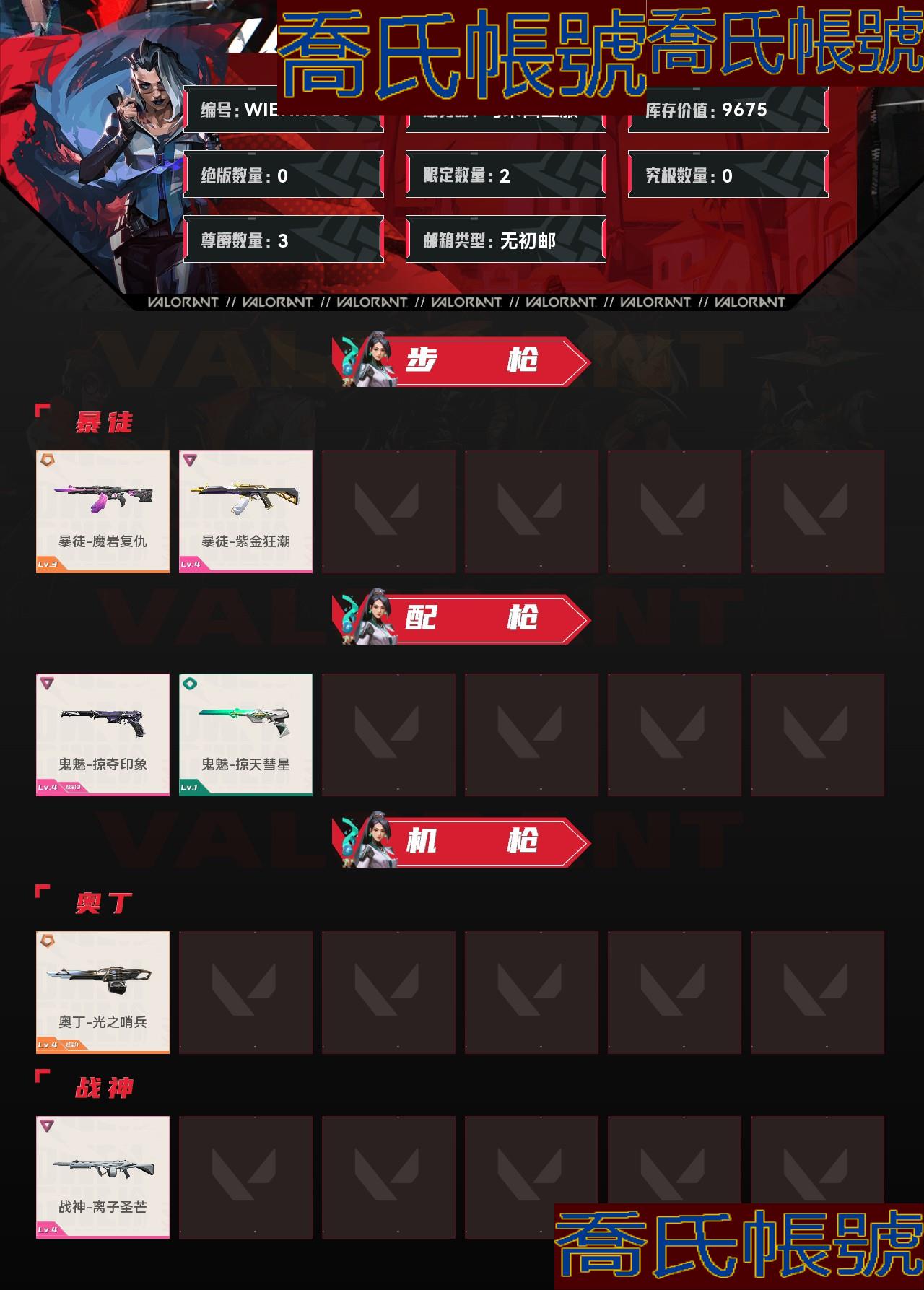 【OBWIEHR576742】銀牌,刀皮數量0,槍皮數量6(絕版0,限定2,究極0,尊爵3);庫存價值:9675;【槍皮】:暴徒-魔巖復仇,奧丁-光之哨兵,鬼魅-掠奪印象,暴徒-紫金狂潮,戰神-離子聖芒,鬼魅-掠天彗星;【熱門吊飾】:機轟雷擊吊飾,口袋婕提吊飾,熒光棒吊飾,特戰英豪紀念幣吊飾,九品之蓮吊飾,口袋婕提吊飾,機轟雷擊吊飾,特戰英豪紀念幣吊飾,後記迷你機甲吊飾,熒光棒吊飾,九品之蓮吊飾,後記迷你機甲吊飾;【熱門塗鴉】:我的刀咧塗鴉,雙擊點贊塗鴉,超潮塗鴉,GLHF塗鴉; 14特務//當前賽季銀牌1 多彌爾/紫金暴徒