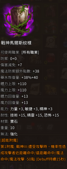 賣戰神馬爾斯臂章(近距離攻擊+15.勇猛1.悍將1.HP250.MP200)