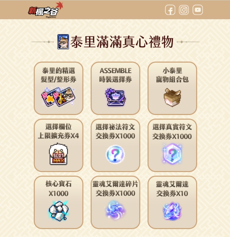 晚上六點後,到商城輸入【MAPLESTORYASSEMBLE】領取泰里優惠券!