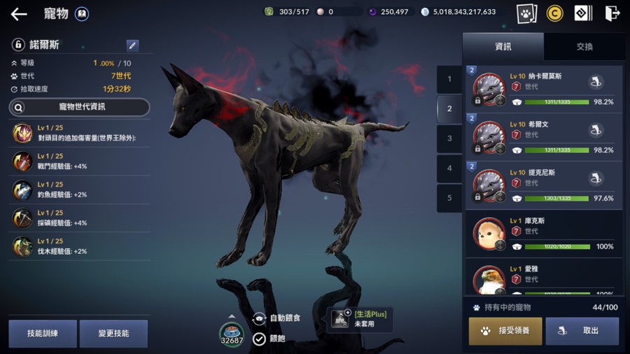 ●攜帶三隻七代寵物_頂攻擊或防禦x3,另有其他增益類型頂數值寵物(目前35隻以上7代寵,另有數百之5、6代寵給您玩 )& 多種交易所無販售的活動特殊寵物,包含特殊寵_飛龍x3,因頂數值省去洗技能動作,培養黑精靈或掛刷必備。寵物收集效果:攻擊+455/防禦+453/生命+640 (全滿為+455/+455/+682,省下購買寵物花費至少6000白珍珠及其他相關資源)