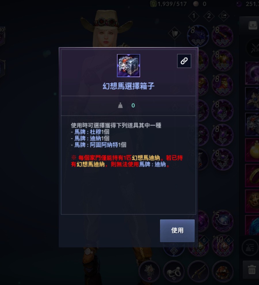 ●幻想馬選擇箱子,可三種幻想馬任選一種,說明如圖所示。