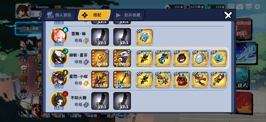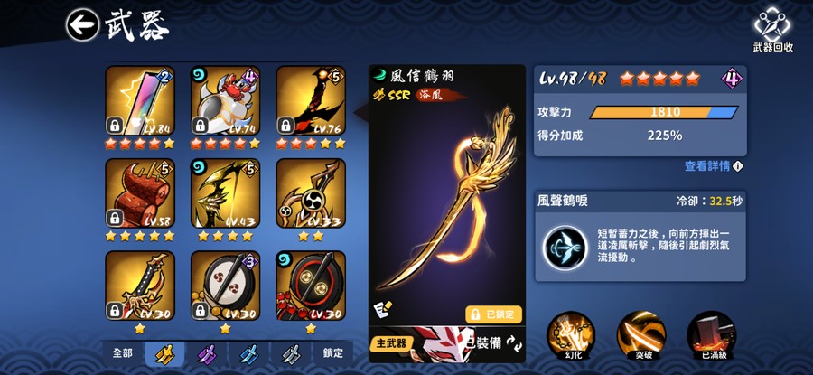 【120等】6命星閃 4命緋斬 3命衛鯉 多SS圖卷 滿階武器