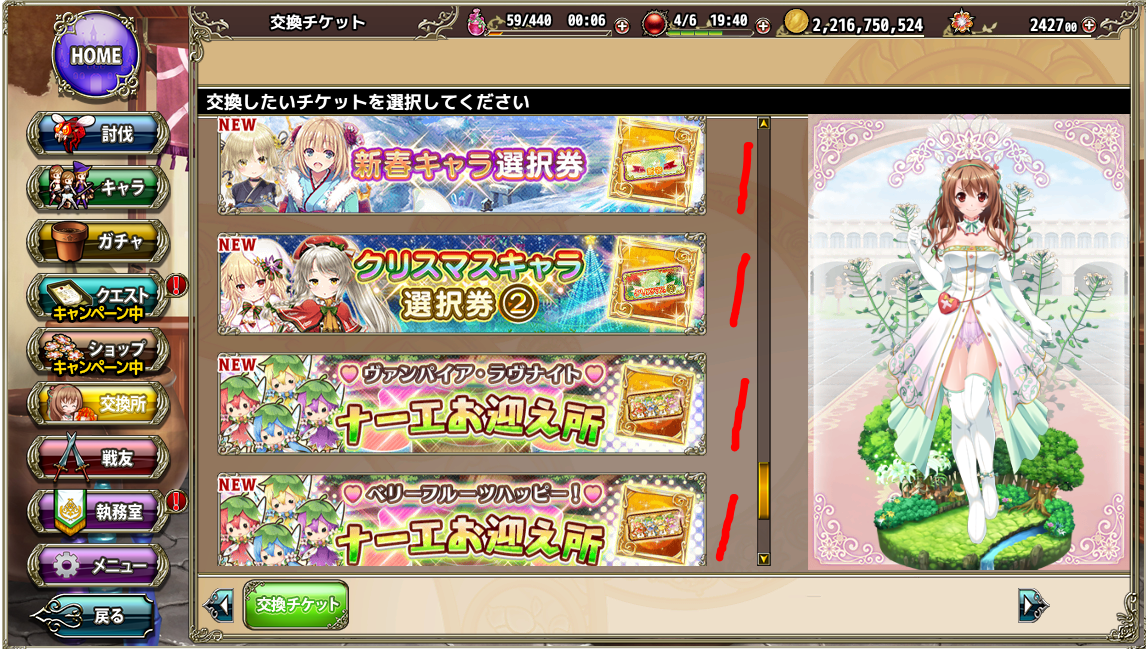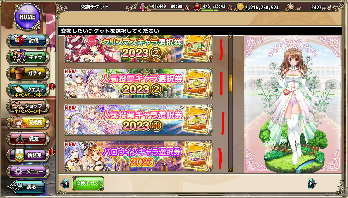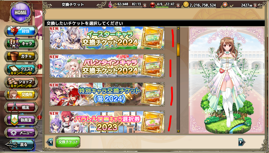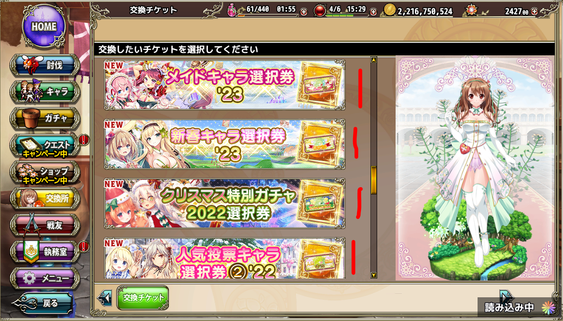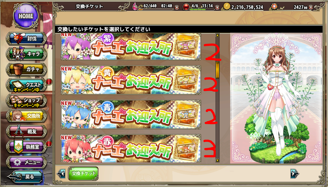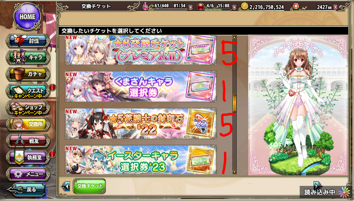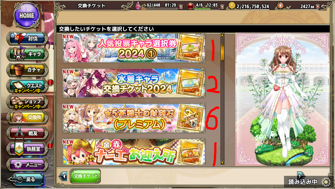 、所持角色、素材、兌換道具、關卡進度如圖。