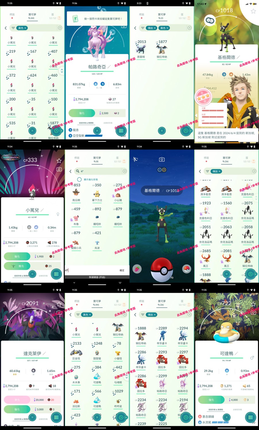 | 選項.1 價格$800 """此組沒超夢""" 1階小狗仔滿百基格爾德(帳號角色等級60~65級) 基格爾德 並未抓取在特殊調查中 可以自行選擇抓獲地點 帳號內 "無基格爾德細胞" 星沙200~300萬 多種神獸如上圖(可能因帳號存在時常改變不同神獸 但數量都不少) |