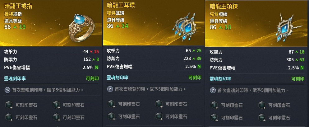 道具 魔2吉凱爾 暗龍王金裝飾品(戒指、耳環、項鍊)、防具、武器