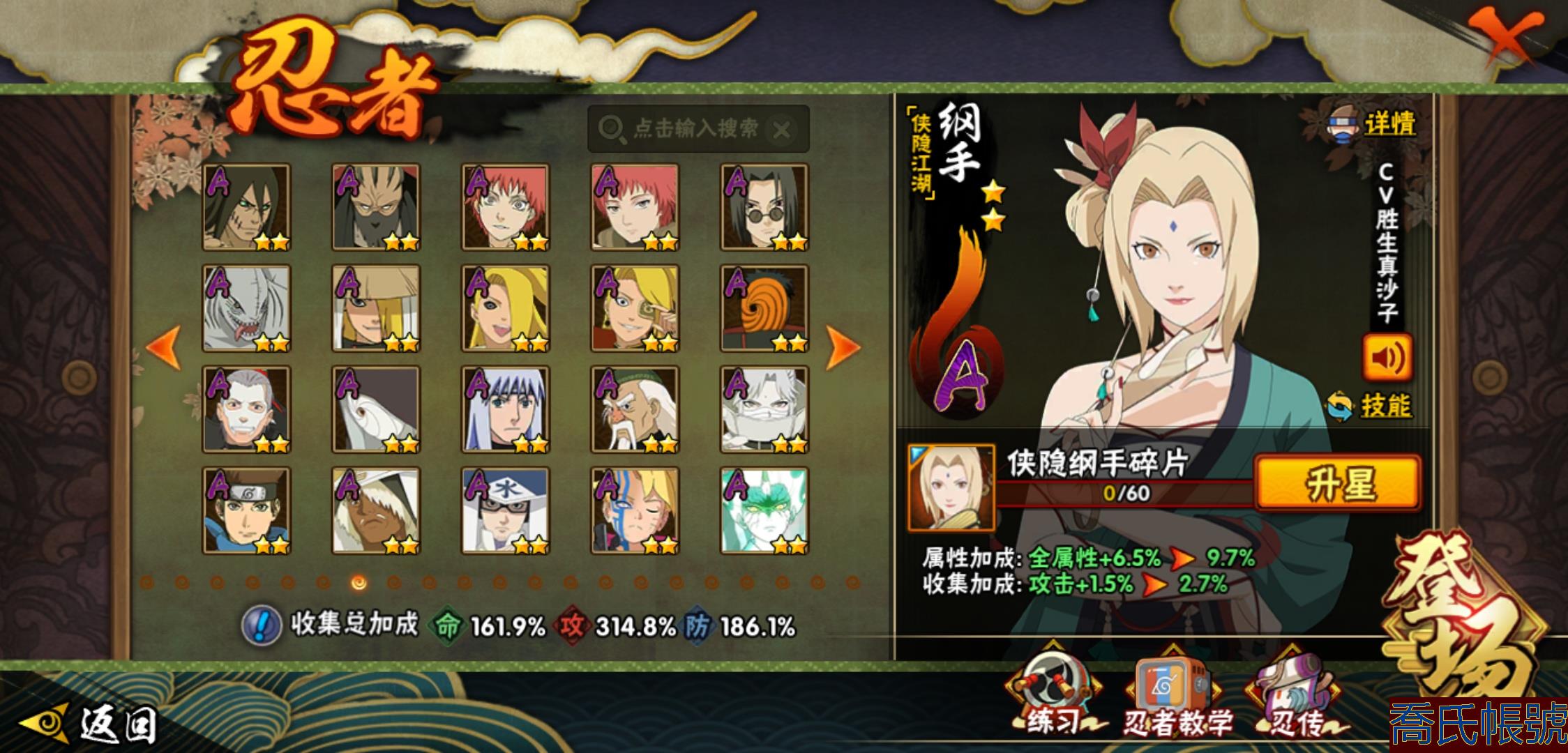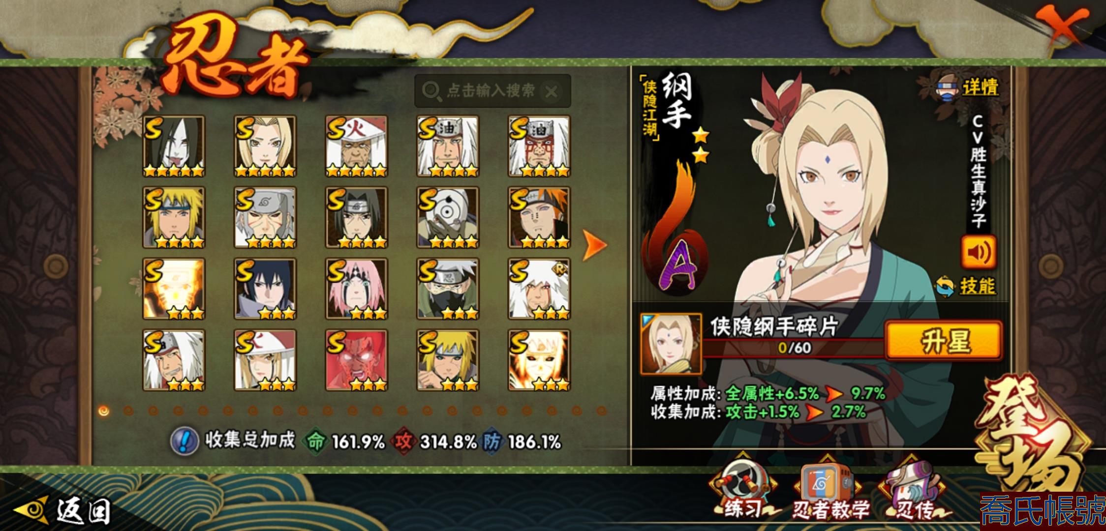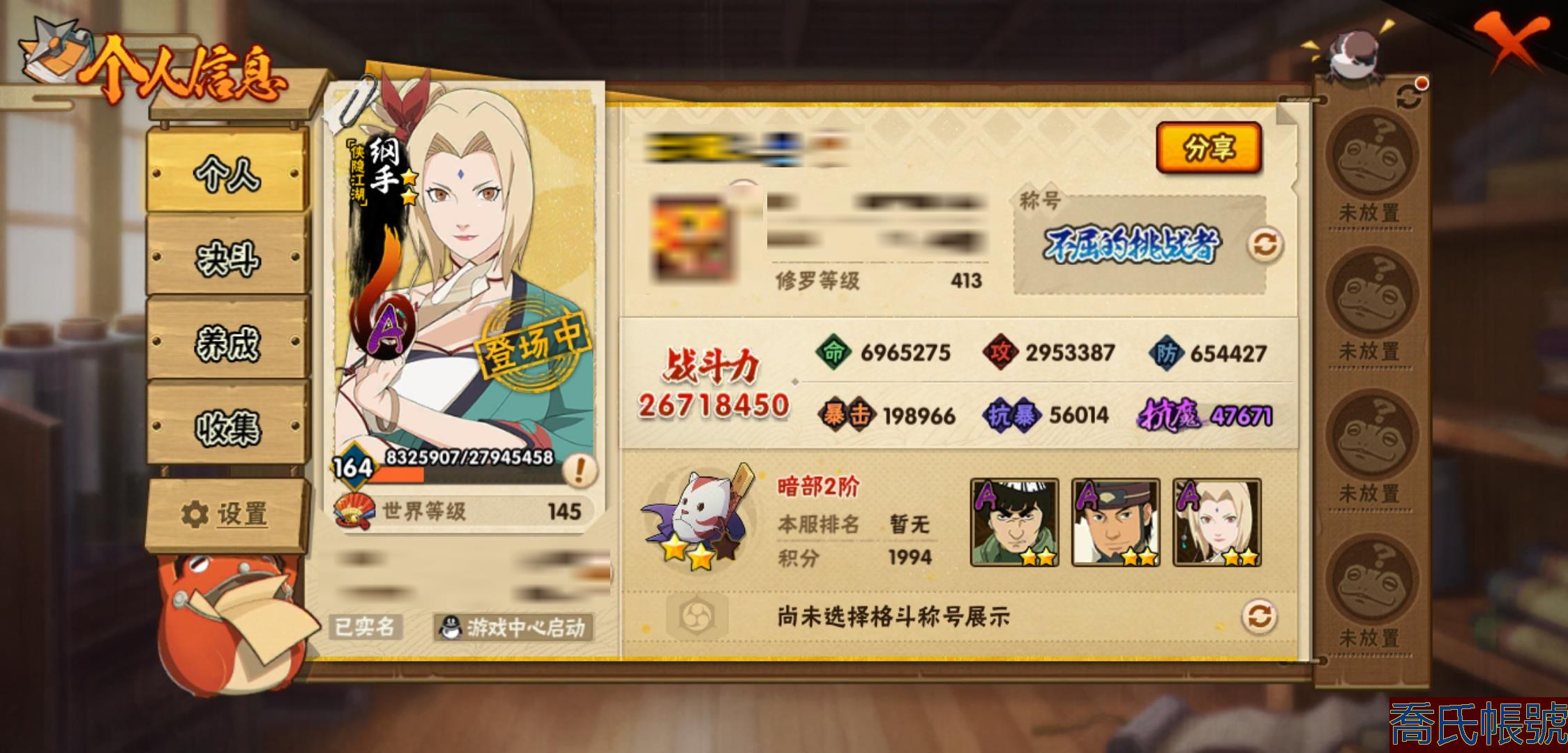 【OBHCOBZ620842】戰鬥力:2671W+;段位:暗部2階;本服排名:20;戰區排名:未上榜;VIP15級;S忍49個;A忍92個;通靈獸32個;S忍:大蛇丸(5星),綱手(5星),猿飛日斬(5星),自來也(4星),仙人模式自來也(4星),波風水門(4星),穢土轉生千手扉間(4星),須佐能乎宇智波鼬(4星),白面具宇智波斑(4星),天道佩恩(4星),九喇嘛連結漩渦鳴人,永恆萬花筒宇智波佐助,忍界大戰春野櫻,須佐能乎旗木卡卡西,舞之豪傑自來也,傳說中的三忍自來也,百豪綱手,死門邁特凱,穢土轉生波風水門,九喇嘛連結波風水門,穢土轉生猿飛日斬,千手扉間,千手柱間,木葉創立千手柱間,穢土轉生千手柱間,穢土轉生宇智波斑,宇智波斑,木葉創立宇智波斑,穢土轉生解宇智波斑,穢土轉生宇智波鼬,須佐能乎宇智波止水,神秘面具男,忍界大戰宇智波帶土,紅夜之刃神秘面具男,四代目風影羅砂,二代目水影鬼燈幻月,四代目雷影艾,忍界大戰艾,三代目雷影艾,穢土轉生金角銀角,三代目土影大野木,穢土轉生半藏,二代目土影無,忍界大戰大野木,超佩恩天道,穢土轉生長門,仙人模式藥師兜,最終章大筒木舍人,大筒木金式;A忍:邁特凱(5星),猿飛阿斯瑪(5星),蠍(5星),幹柿鬼鮫(5星),死司憑血飛段(5星),疾風傳我愛羅(4星),飛段(4星),仙人模式漩渦鳴人(3星),九尾查克拉漩渦鳴人(3星),百豪春野櫻(3星),旗木卡卡西,忍界大戰我愛羅(3星),五代目水影照美冥(3星),忍界大戰土臺(3星),曉大蛇丸(3星),宇智波鼬(3星),忍者之路神秘面具男,萬花筒寫輪眼宇智波佐助,須佐能乎宇智波佐助,疾風傳咒印宇智波佐助,宇智波泉奈,忍界大戰秋道丁次,忍界大戰日向寧次,忍界大戰李洛克,忍界大戰天天,最終章日向雛田,幻之真容旗木卡卡西,萬花筒寫輪眼旗木卡卡西,忍界大戰旗木卡卡西,元氣夏日旗木卡卡西,忍界大戰邁特凱,穢土轉生猿飛阿斯瑪,七夕限定猿飛阿斯瑪,地陸,宇智波止水,新春限定宇智波止水,志村團藏,火影繼承人猿飛日斬,三忍之師猿飛日斬,新春限定波風水門,青年波風水門,新春限定我愛羅,忍界大戰勘九郎,近松十人衛千代,俠隱江湖照美冥,夏日泳裝照美冥,漂泊武士桃地再不斬,桃地再不斬,穢土轉生桃地再不斬,忍界大戰奇拉比,奇拉比,青年艾,達魯伊,青年三船,三船,俠隱江湖綱手,妖怪奇譚綱手,漂泊武士千手扉間,半蛇斗篷藥師兜,不風,不緣,不動,青年長門,小南,夏日泳裝小南,新春限定小南,絕,黑絕,曉創生角都,角都,地怨虞角都,穢土轉生角都,緋流琥蠍,百機操演蠍,曉創生蠍,新春限定宇智波鼬,鮫肌融合幹柿鬼鮫,迪達拉,穢土轉生迪達拉,新春限定迪達拉,阿飛,惡靈之影飛段,暴怒宇智波帶土,加藤斷,俠隱江湖大野木,火之意志繼承者卑留呼,猿飛木葉丸,五代目雷影達魯伊,六代目水影長十郎,桃式顯現漩渦博人,仙人模式巳月,四代目土影黑土;通靈獸:忍犬,藍蛇,蛤蟆吉,忍龜,鐮鼬,猿魔,山椒魚,蜃,蛞蝓,蛤蟆仙人,鮫鯊,蛤蟆健,烏鴉,蛤蟆龍,蛤蟆廣,熊貓,二尾又旅,夢貘,砂之守鶴,鷹,蜘蛛,,五尾穆王,萬蛇,祥瑞金烏,怒鬼,蛤蟆文太,守鶴,怒鬼無臂,怒鬼爪,辛牙;時裝:百戰宇智波鼬須佐能乎,百戰波風水門,百戰佩恩天道,蜀面豪傑舞之豪傑自來也,百戰大蛇丸,狂野鮫鯊幹柿鬼鮫,桀驁之刃猿飛阿斯瑪,斑之附身神秘面具男忍者之路,冷玉豪情綱手俠隱江湖,太極靈韻日向花火武當宗師,純白之心白,血霧怪人幹柿鬼鮫,初代目火影千手柱間,紅月映雪宇智波鼬新春限定,菁英忍者旗木卡卡西少年,憤怒的伊始宇智波帶土暴怒,龍的傳人李洛克截拳宗師,火之意志綱手百豪,睿勇新星千手扉間少年,可愛睡衣漩渦鳴人,夏日衝浪旗木卡卡西元氣夏日,風靈素錦猿飛未來,驚雷掠影達魯伊五代目雷影,萬炎焚空迪達拉新春限定,流沙騰龍我愛羅新春限定,土之固守大野木三代目土影,飛瀑流泉長十郎六代目水影,風之守護我愛羅忍界大戰,剎那的藝術迪達拉,雷電之力艾四代目雷影,隱藏內心的面具旗木卡卡西暗部,千雪霜華照美冥俠隱江湖,編織虛實宇智波鼬,神使之花小南新春限定,烈土霓裳黑土四代目土影,烈火華服宇智波止水新春限定,水之妖姬照美冥五代目水影,緋櫻綻放春野櫻百豪,智勇記者宇智波佐良娜,命定之戰宇智波佐助疾風傳;【794】