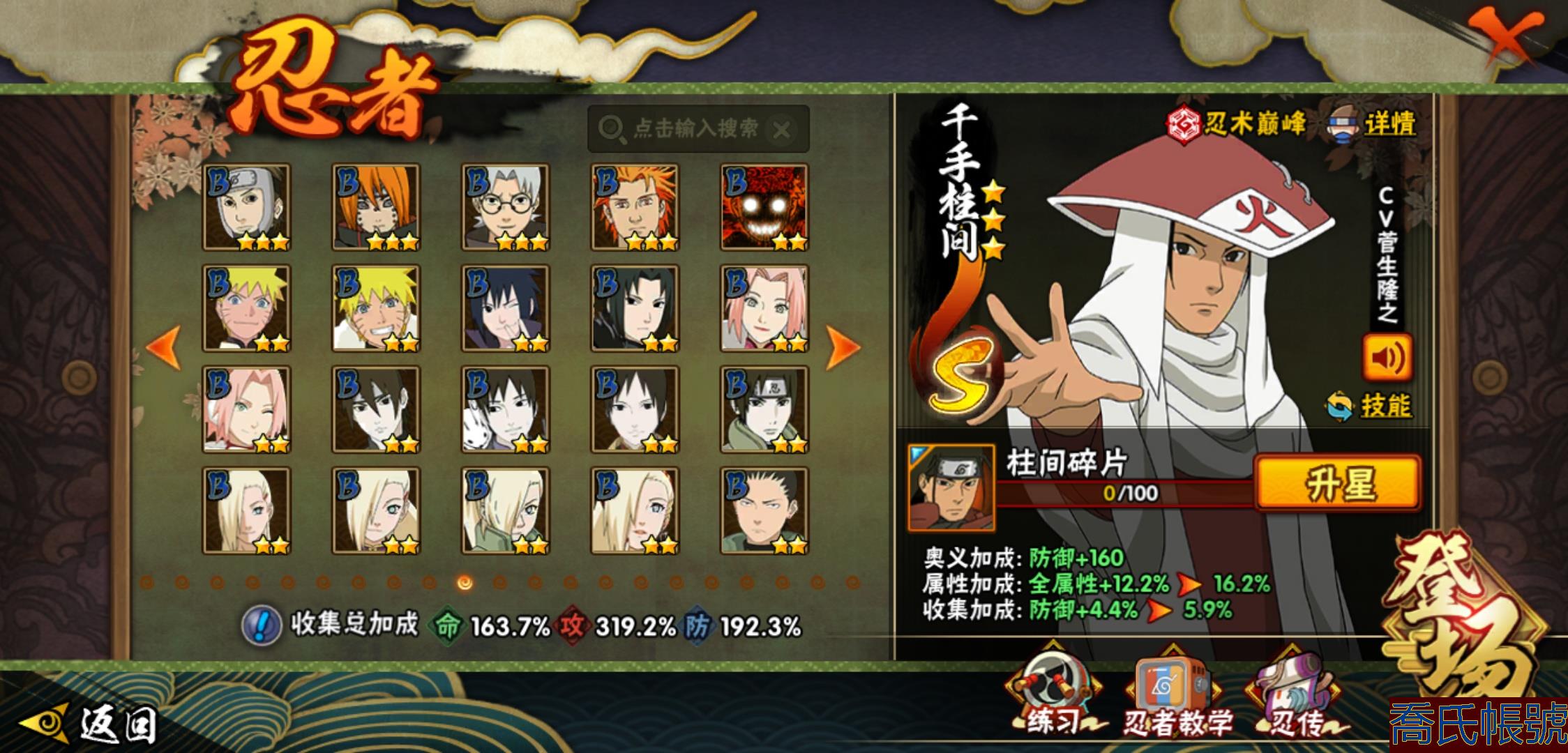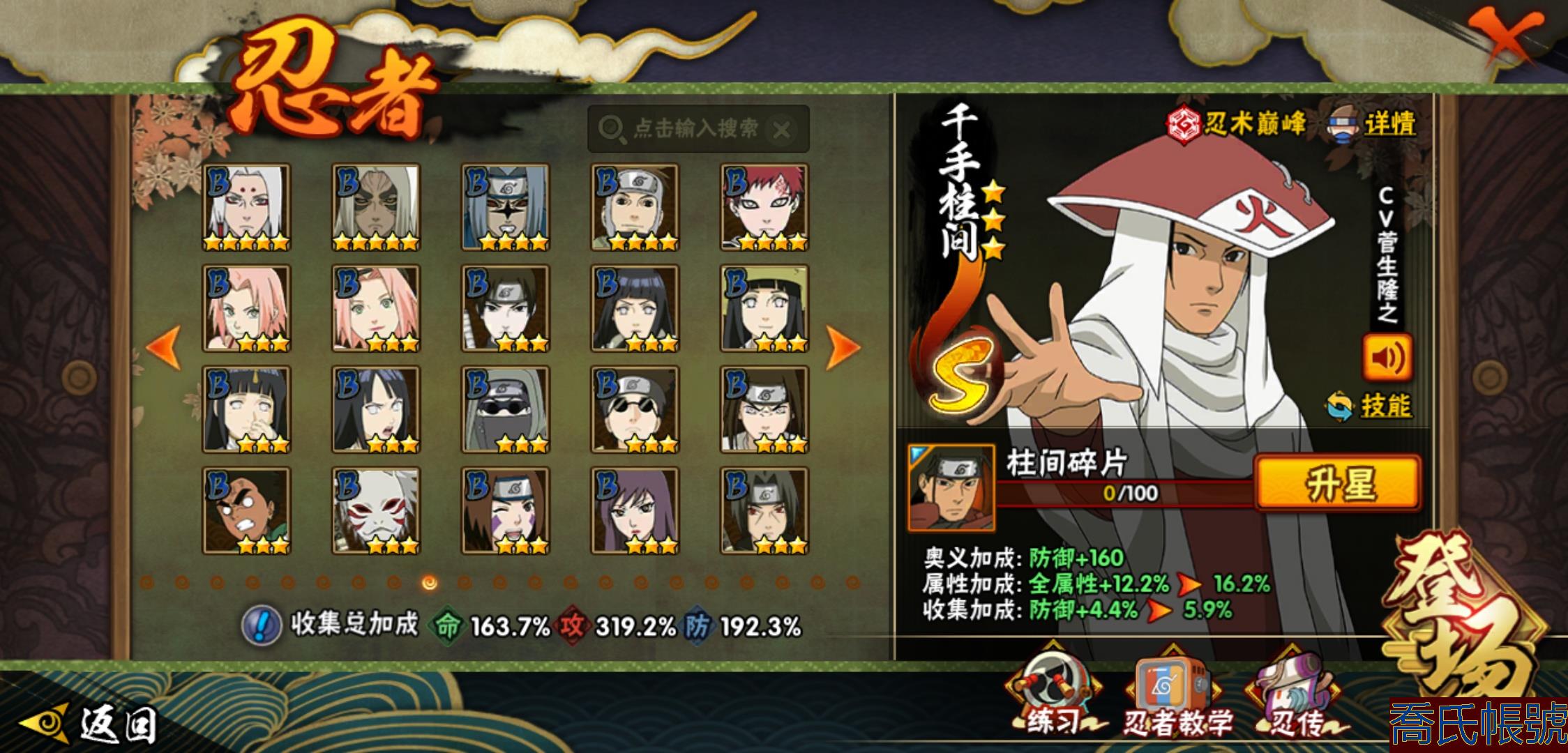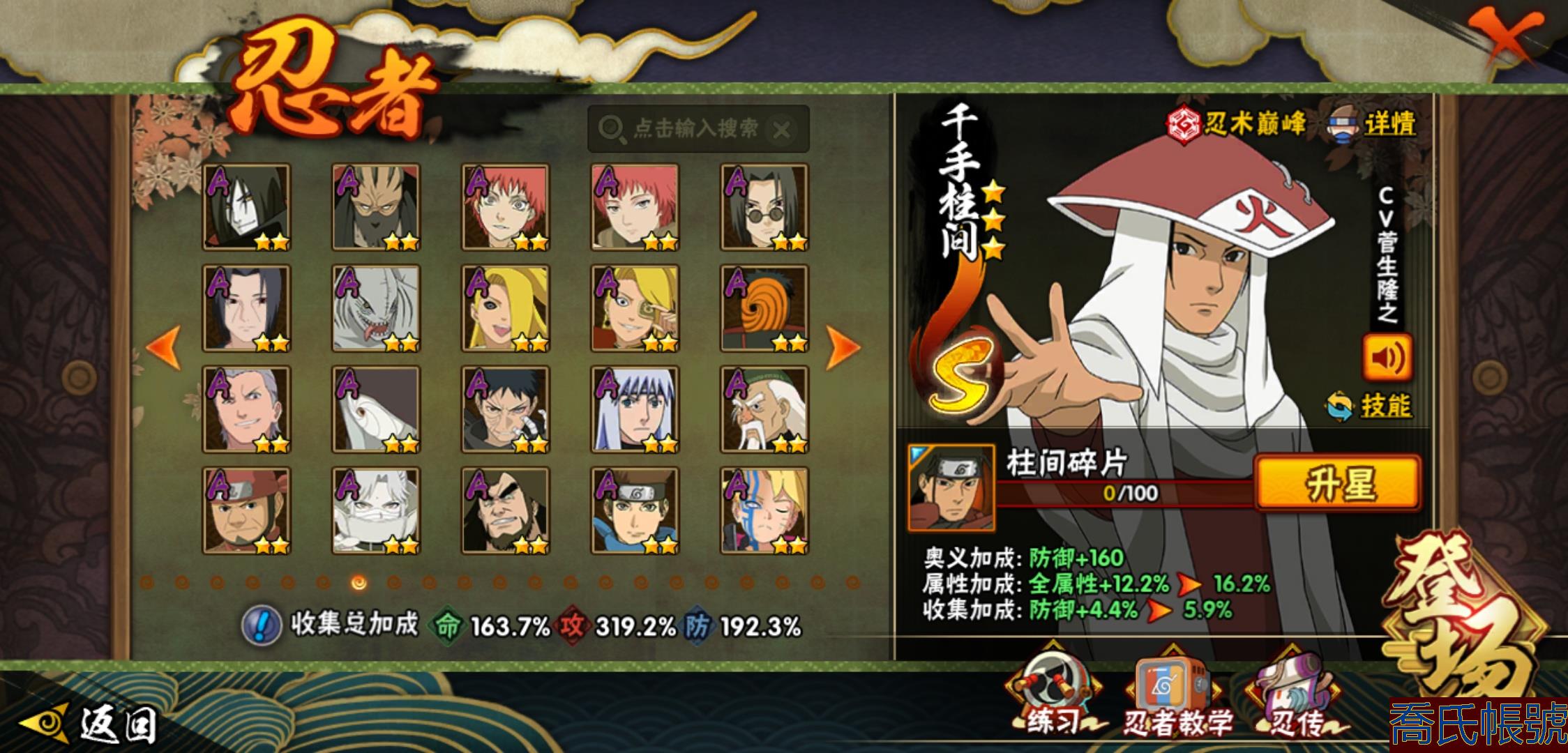【OBHHVZH070142】戰鬥力:2365W+;段位:暗部1階;本服排名:130;戰區排名:未上榜;VIP15級;S忍47個;A忍95個;通靈獸34個;S忍:大蛇丸(5星),自來也(4星),舞之豪傑自來也(4星),綱手(4星),波風水門(4星),須佐能乎宇智波鼬(4星),天道佩恩(4星),九喇嘛連結漩渦鳴人,永恆萬花筒宇智波佐助,忍界大戰春野櫻,須佐能乎旗木卡卡西,傳說中的三忍自來也,百豪綱手,死門邁特凱,穢土轉生波風水門,九喇嘛連結波風水門,猿飛日斬,穢土轉生猿飛日斬,千手扉間,穢土轉生千手扉間,千手柱間,穢土轉生千手柱間,木葉創立千手柱間,穢土轉生宇智波斑,宇智波斑,木葉創立宇智波斑,穢土轉生解宇智波斑,穢土轉生宇智波鼬,須佐能乎宇智波止水,神秘面具男,白面具宇智波斑,忍界大戰宇智波帶土,紅夜之刃神秘面具男,二代目水影鬼燈幻月,四代目雷影艾,忍界大戰艾,三代目雷影艾,穢土轉生金角銀角,三代目土影大野木,穢土轉生半藏,二代目土影無,忍界大戰大野木,超佩恩天道,穢土轉生長門,仙人模式藥師兜,大筒木桃式,大筒木金式;A忍:邁特凱(5星),猿飛阿斯瑪(5星),蠍(5星),幹柿鬼鮫(5星),疾風傳我愛羅(4星),近松十人衛千代(4星),飛段(4星),死司憑血飛段(4星),須佐能乎宇智波佐助(3星),旗木卡卡西(3星),宇智波止水(3星),青年波風水門(3星),青年艾(3星),小南(3星),宇智波鼬(3星),迪達拉(3星),仙人模式漩渦鳴人,初始形態機械鳴人,忍者之路神秘面具男,九尾查克拉漩渦鳴人,萬花筒寫輪眼宇智波佐助,疾風傳咒印宇智波佐助,宇智波泉奈,百豪春野櫻,忍界大戰秋道丁次,忍界大戰日向寧次,忍界大戰李洛克,忍界大戰天天,最終章日向雛田,幻之真容旗木卡卡西,萬花筒寫輪眼旗木卡卡西,忍界大戰旗木卡卡西,元氣夏日旗木卡卡西,驚門邁特凱,忍界大戰邁特凱,穢土轉生猿飛阿斯瑪,七夕限定猿飛阿斯瑪,地陸,新春限定宇智波止水,志村團藏,火影繼承人猿飛日斬,三忍之師猿飛日斬,新春限定波風水門,忍界大戰我愛羅,新春限定我愛羅,忍界大戰勘九郎,夏日泳裝照美冥,五代目水影照美冥,俠隱江湖照美冥,穢土轉生桃地再不斬,漂泊武士桃地再不斬,桃地再不斬,奇拉比,忍界大戰奇拉比,達魯伊,青年三船,三船,妖怪奇譚綱手,漂泊武士千手扉間,半蛇斗篷藥師兜,不風,不緣,不動,青年長門,漂泊浪客佩恩六道,夏日泳裝小南,漂泊浪客小南,新春限定小南,絕,角都,曉創生角都,地怨虞角都,曉大蛇丸,緋流琥蠍,百機操演蠍,曉創生蠍,新春限定宇智波鼬,夏日限定宇智波鼬,鮫肌融合幹柿鬼鮫,穢土轉生迪達拉,新春限定迪達拉,阿飛,曉創生飛段,暴怒宇智波帶土,漂泊浪客宇智波帶土,加藤斷,俠隱江湖大野木,忍者大戰黃土,火之意志繼承者卑留呼,羈絆神農,猿飛木葉丸,桃式顯現漩渦博人,六代目水影長十郎,五代目雷影達魯伊,四代目土影黑土;通靈獸:忍犬,藍蛇,蛤蟆吉,忍龜,鐮鼬,蛞蝓,猿魔,山椒魚,蜃,蛤蟆仙人,鮫鯊,蛤蟆健,烏鴉,蛤蟆龍,熊貓,蛤蟆廣,砂之守鶴,二尾又旅,夢貘,鷹,怒鬼無臂,鵺,怒鬼,變色龍,六尾犀犬,蜘蛛,萬蛇,怒鬼爪,祥瑞金烏,守鶴,蛤蟆文太,烏鴉夏日限定,辛牙;時裝:百戰宇智波鼬須佐能乎,百戰波風水門,百戰佩恩天道,蜀面豪傑舞之豪傑自來也,百戰大蛇丸,狂野鮫鯊幹柿鬼鮫,桀驁之刃猿飛阿斯瑪,斑之附身神秘面具男忍者之路,滄瀾狂侍佩恩·六道漂泊浪客,龍吟浪客千手扉間漂泊武士,太極靈韻日向花火武當宗師,純白之心白,血霧怪人幹柿鬼鮫,初代目火影千手柱間,紅月映雪宇智波鼬新春限定,菁英忍者旗木卡卡西少年,憤怒的伊始宇智波帶土暴怒,龍的傳人李洛克截拳宗師,火之意志綱手百豪,熊貓少女天天峨眉宗師,睿勇新星千手扉間少年,夏日衝浪旗木卡卡西元氣夏日,風靈素錦猿飛未來,驚雷掠影達魯伊五代目雷影,萬炎焚空迪達拉新春限定,流沙騰龍我愛羅新春限定,土之固守大野木三代目土影,飛瀑流泉長十郎六代目水影,風之守護我愛羅忍界大戰,剎那的藝術迪達拉,雷電之力艾四代目雷影,隱藏內心的面具旗木卡卡西暗部,千雪霜華照美冥俠隱江湖,編織虛實宇智波鼬,神使之花小南新春限定,烈火華服宇智波止水新春限定,烈土霓裳黑土四代目土影,水之妖姬照美冥五代目水影,緋櫻綻放春野櫻百豪,智勇記者宇智波佐良娜,命定之戰宇智波佐助疾風傳;【190】393忍者準全忍 三個場景有妙木山 有紫狗648奧義,四星閻王