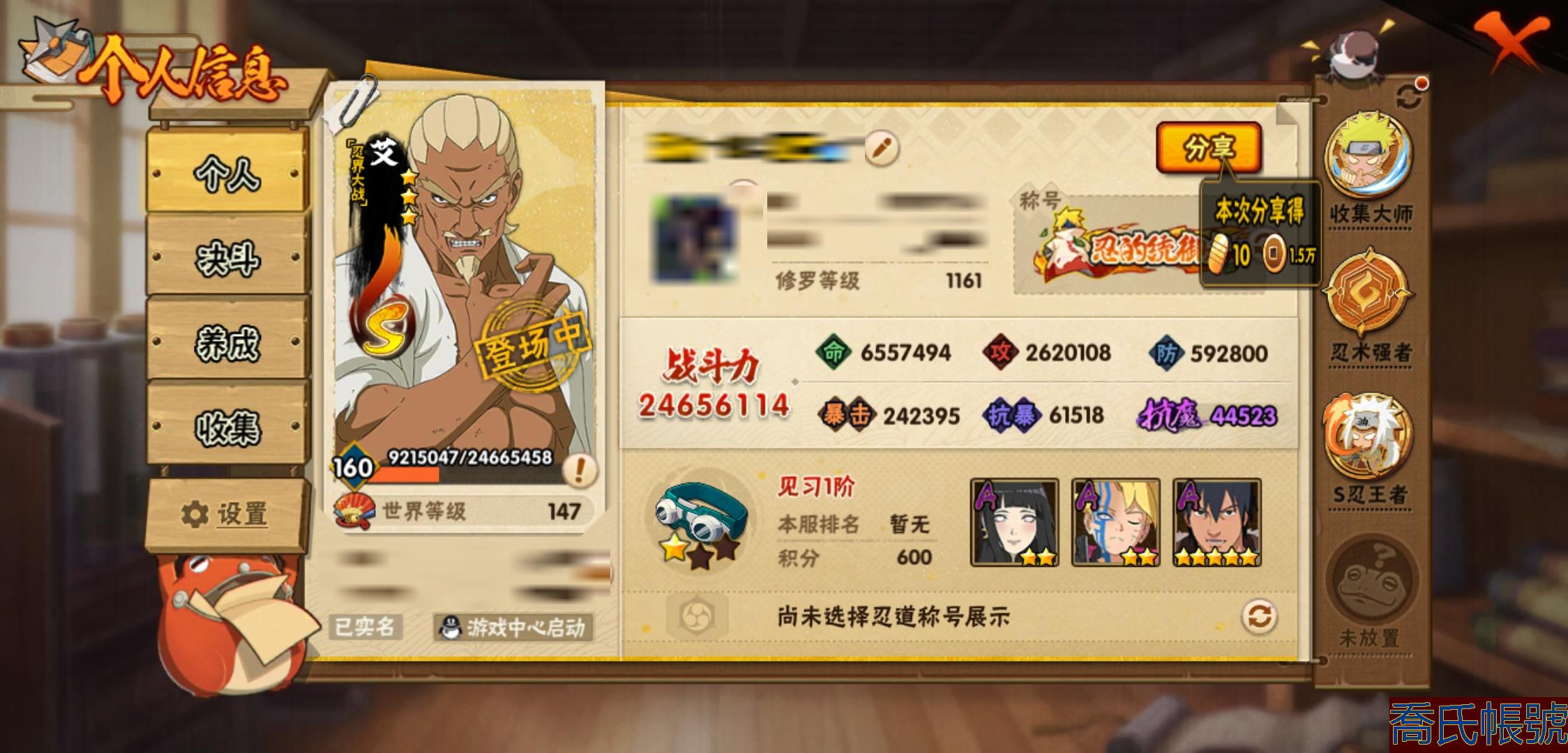 【OBHHVZH910442】戰鬥力:2465W+;段位:見習1階;本服排名:79;戰區排名:未上榜;VIP14級;S忍46個;A忍62個;通靈獸28個;S忍:綱手(5星),穢土轉生波風水門(5星),猿飛日斬(5星),穢土轉生猿飛日斬(5星),仙人模式自來也(4星),大蛇丸(4星),波風水門(4星),千手扉間(4星),穢土轉生千手柱間(4星),宇智波斑(4星),須佐能乎宇智波鼬(4星),穢土轉生宇智波鼬(4星),忍界大戰宇智波帶土(4星),穢土轉生長門(4星),九喇嘛連結漩渦鳴人,永恆萬花筒宇智波佐助,忍界大戰春野櫻,自來也,舞之豪傑自來也,百豪綱手,死門邁特凱,穢土轉生千手扉間,千手柱間,木葉創立千手柱間,穢土轉生宇智波斑,木葉創立宇智波斑,穢土轉生解宇智波斑,神秘面具男,白面具宇智波斑,紅夜之刃神秘面具男,四代目風影羅砂,穢土轉生三代目風影,二代目水影鬼燈幻月,四代目雷影艾,忍界大戰艾,三代目雷影艾,穢土轉生金角銀角,三代目土影大野木,穢土轉生半藏,忍界大戰大野木,二代目土影無,天道佩恩,超佩恩天道,仙人模式藥師兜,大筒木桃式,大筒木金式;A忍:邁特凱(5星),猿飛阿斯瑪(5星),蠍(5星),幹柿鬼鮫(5星),死司憑血飛段(5星),疾風傳我愛羅(4星),飛段(4星),青年波風水門(3星),五代目水影照美冥(3星),奇拉比(3星),忍者之路神秘面具男,仙人模式漩渦鳴人,九尾查克拉漩渦鳴人,萬花筒寫輪眼宇智波佐助,須佐能乎宇智波佐助,疾風傳咒印宇智波佐助,百豪春野櫻,忍界大戰秋道丁次,忍界大戰日向寧次,最終章日向雛田,旗木卡卡西,萬花筒寫輪眼旗木卡卡西,穢土轉生猿飛阿斯瑪,地陸,宇智波止水,新春限定宇智波止水,志村團藏,火影繼承人猿飛日斬,新春限定波風水門,忍界大戰我愛羅,忍界大戰勘九郎,近松十人衛千代,俠隱江湖照美冥,忍界大戰奇拉比,青年艾,俠隱江湖綱手,半蛇斗篷藥師兜,不風,不緣,青年長門,漂泊浪客佩恩六道,小南,夏日泳裝小南,新春限定小南,漂泊浪客小南,角都,曉創生角都,地怨虞角都,曉大蛇丸,宇智波鼬,新春限定宇智波鼬,迪達拉,穢土轉生迪達拉,新春限定迪達拉,暴怒宇智波帶土,加藤斷,火之意志繼承者卑留呼,猿飛木葉丸,六代目水影長十郎,五代目雷影達魯伊,桃式顯現漩渦博人,四代目土影黑土;通靈獸:忍犬,藍蛇,蛤蟆吉,忍龜,鐮鼬,猿魔,山椒魚,蜃,蛤蟆仙人,鮫鯊,蛤蟆健,烏鴉,蛞蝓,蛤蟆龍,蛤蟆廣,夢貘,怒鬼爪,鷹,砂之守鶴,蜘蛛,蛞蝓俠隱江湖,熊貓,六尾犀犬,鵺,怒鬼,,怒鬼無臂,辛牙;時裝:桀驁之刃猿飛阿斯瑪,百戰波風水門,百戰大蛇丸,蜀面豪傑舞之豪傑自來也,狂野鮫鯊幹柿鬼鮫,晨昏神使小南漂泊浪客,冷玉豪情綱手俠隱江湖,傳說的光芒波風水門,神使之花小南新春限定,隱藏內心的面具旗木卡卡西暗部,水之妖姬照美冥五代目水影,血霧怪人幹柿鬼鮫,可愛睡衣漩渦鳴人,純白之心白,龍的傳人李洛克截拳宗師,剎那的藝術迪達拉,烈土霓裳黑土四代目土影,土之固守大野木三代目土影,熊貓少女天天峨眉宗師,編織虛實宇智波鼬,智勇記者宇智波佐良娜;【237區】英雄聯盟連體賬號