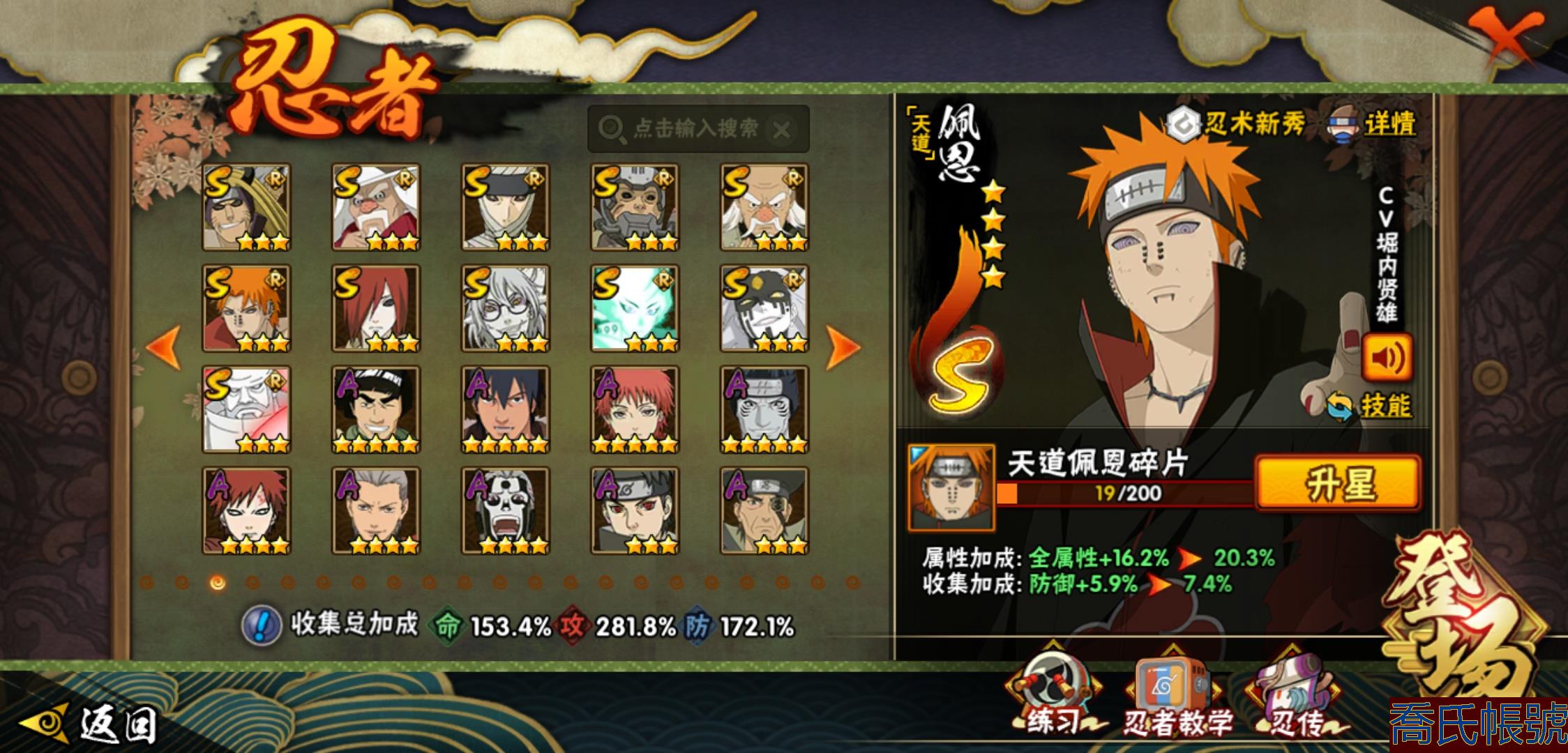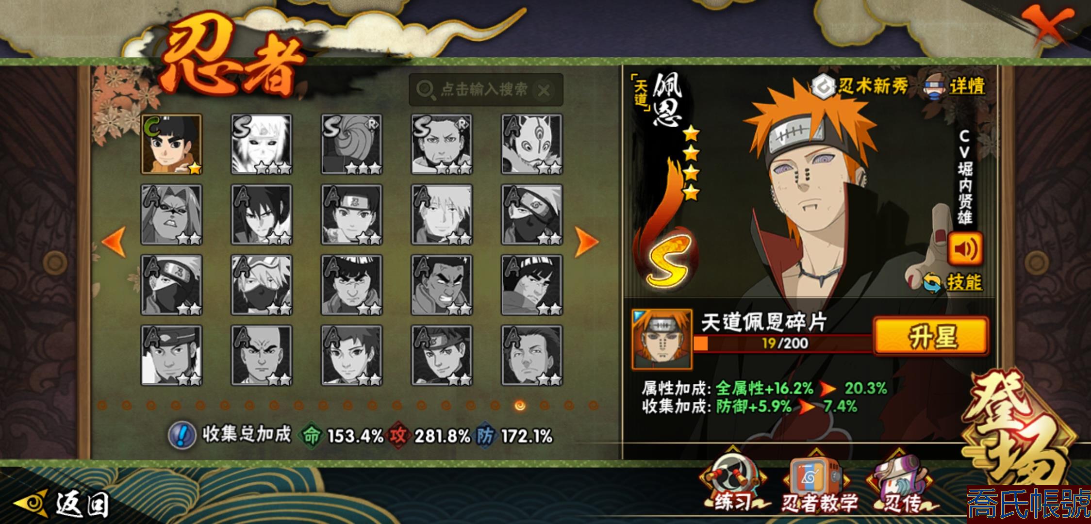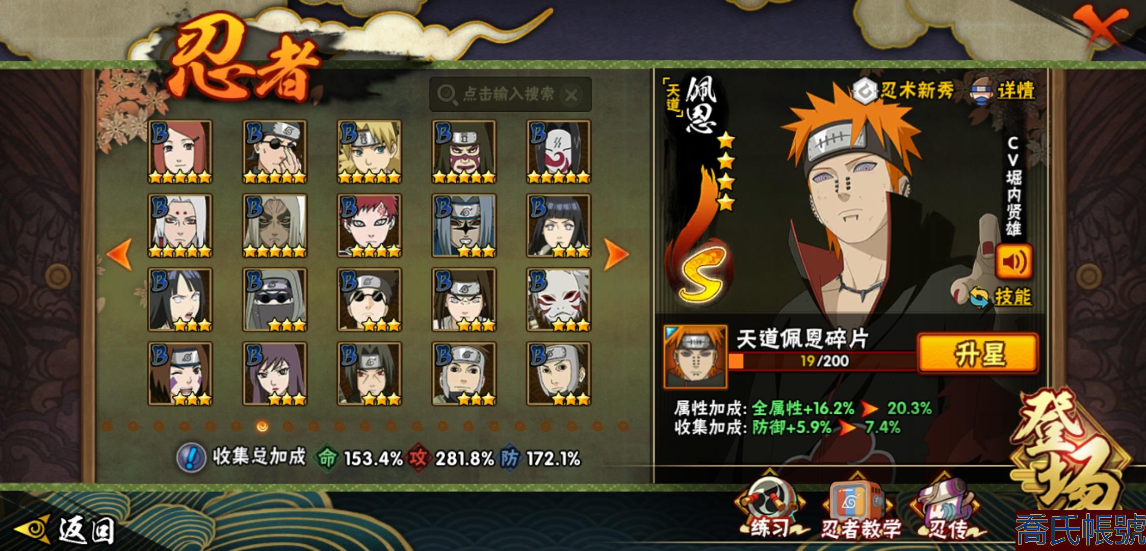 【OBHHVZH404842】戰鬥力:2793W+;段位:中忍3階;本服排名:59;戰區排名:未上榜;VIP13級;S忍51個;A忍56個;通靈獸27個;S忍:大蛇丸(5星),綱手(5星),仙人模式自來也(4星),波風水門(4星),穢土轉生波風水門(4星),猿飛日斬(4星),須佐能乎宇智波鼬(4星),天道佩恩(4星),暴怒第六尾漩渦鳴人,九喇嘛連結漩渦鳴人,永恆萬花筒宇智波佐助,忍界大戰春野櫻,須佐能乎旗木卡卡西,自來也,舞之豪傑自來也,傳說中的三忍自來也,百豪綱手,死門邁特凱,穢土轉生猿飛日斬,千手扉間,穢土轉生千手扉間,千手柱間,穢土轉生千手柱間,木葉創立千手柱間,宇智波斑,穢土轉生宇智波斑,木葉創立宇智波斑,穢土轉生解宇智波斑,穢土轉生宇智波鼬,須佐能乎宇智波止水,神秘面具男,白面具宇智波斑,忍界大戰宇智波帶土,紅夜之刃神秘面具男,四代目風影羅砂,穢土轉生三代目風影,二代目水影鬼燈幻月,四代目雷影艾,忍界大戰艾,三代目雷影艾,穢土轉生金角銀角,三代目土影大野木,二代目土影無,穢土轉生半藏,忍界大戰大野木,超佩恩天道,穢土轉生長門,仙人模式藥師兜,最終章大筒木舍人,大筒木桃式,大筒木金式;A忍:邁特凱(5星),猿飛阿斯瑪(5星),蠍(5星),幹柿鬼鮫(5星),疾風傳我愛羅(4星),飛段(4星),死司憑血飛段(4星),宇智波止水(3星),忍界大戰土臺(3星),宇智波鼬(3星),迪達拉(3星),猿飛木葉丸(3星),初始形態機械鳴人,仙人模式漩渦鳴人,九尾查克拉漩渦鳴人,萬花筒寫輪眼宇智波佐助,須佐能乎宇智波佐助,宇智波泉奈,百豪春野櫻,忍界大戰秋道丁次,忍界大戰日向寧次,忍界大戰李洛克,最終章日向雛田,萬花筒寫輪眼旗木卡卡西,穢土轉生猿飛阿斯瑪,志村團藏,新春限定波風水門,青年波風水門,忍界大戰我愛羅,近松十人衛千代,五代目水影照美冥,漂泊武士桃地再不斬,穢土轉生桃地再不斬,桃地再不斬,奇拉比,忍界大戰奇拉比,青年艾,半蛇斗篷藥師兜,不緣,青年長門,小南,夏日泳裝小南,新春限定小南,角都,地怨虞角都,曉大蛇丸,緋流琥蠍,穢土轉生迪達拉,加藤斷,俠隱江湖大野木,羈絆神農,桃式顯現漩渦博人,五代目雷影達魯伊,六代目水影長十郎,四代目土影黑土,夏日限定黑土;通靈獸:忍犬,藍蛇,蛤蟆吉,忍龜,鐮鼬,猿魔,山椒魚,蜃,蛤蟆仙人,鮫鯊,蛤蟆健,烏鴉,蛞蝓,蛤蟆龍,蛤蟆廣,砂之守鶴,夢貘,怒鬼,鷹,怒鬼無臂,蜘蛛,辛牙,熊貓,怒鬼爪,,萬蛇;時裝:百戰宇智波鼬須佐能乎,百戰波風水門,百戰大蛇丸,狂野鮫鯊幹柿鬼鮫,桀驁之刃猿飛阿斯瑪,百戰佩恩天道,蜀面豪傑舞之豪傑自來也,太極靈韻日向花火武當宗師,飛瀑流泉長十郎六代目水影,睿勇新星千手扉間少年,傳說的光芒波風水門,驚雷掠影達魯伊五代目雷影,命定之戰宇智波佐助疾風傳,可愛睡衣漩渦鳴人,隱藏內心的面具旗木卡卡西暗部,烈土霓裳黑土四代目土影,風之守護我愛羅忍界大戰,土之固守大野木三代目土影,緋櫻綻放春野櫻百豪,血紅辣椒旋渦玖辛奈少女png,雷電之力艾四代目雷影,血霧怪人幹柿鬼鮫,智勇記者宇智波佐良娜,熊貓少女天天峨眉宗師,驕陽翠羽照美冥夏日泳裝,純白之心白,剎那的藝術迪達拉,菁英忍者旗木卡卡西少年,龍的傳人李洛克截拳宗師,水之妖姬照美冥五代目水影,火之意志綱手百豪,編織虛實宇智波鼬;【170】51s 57a