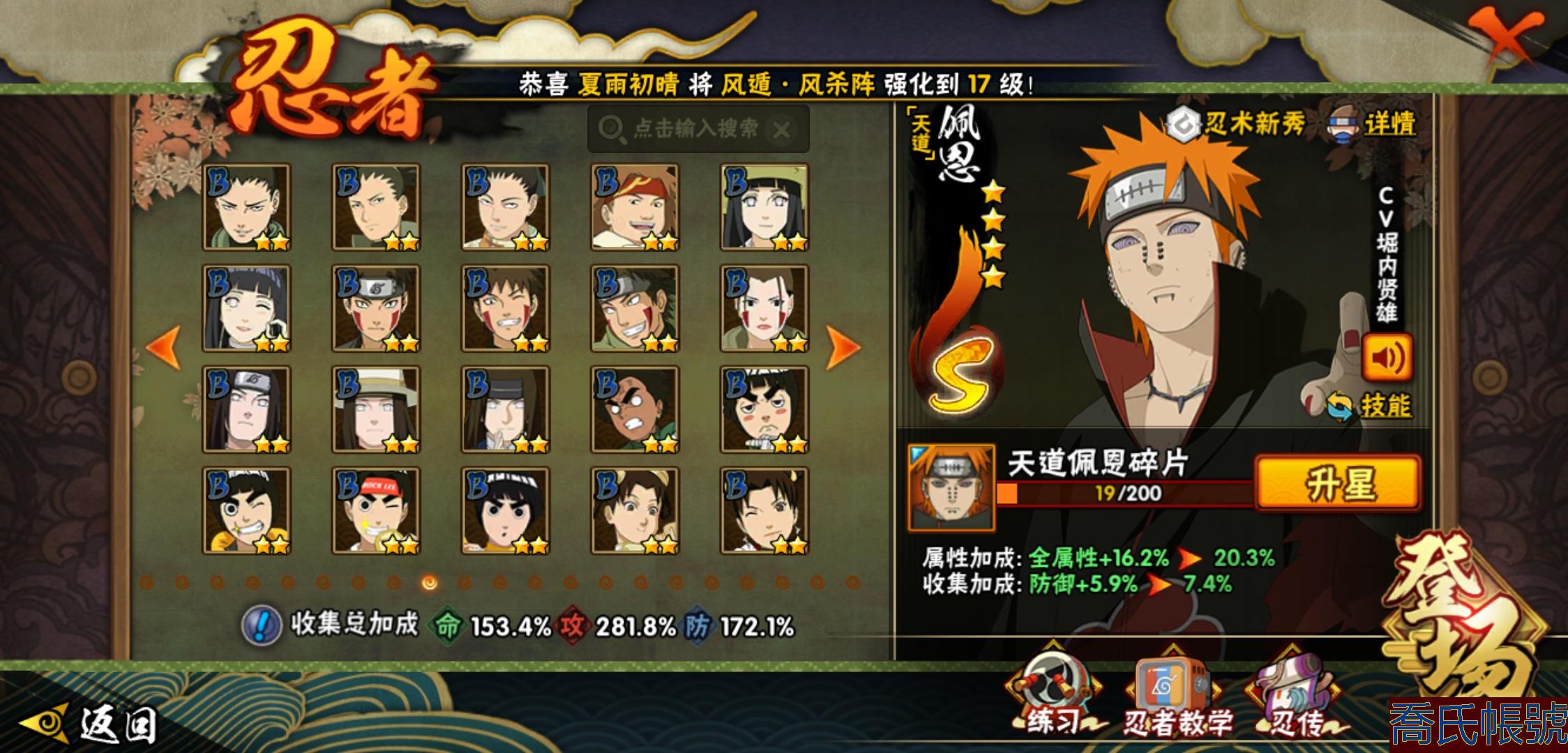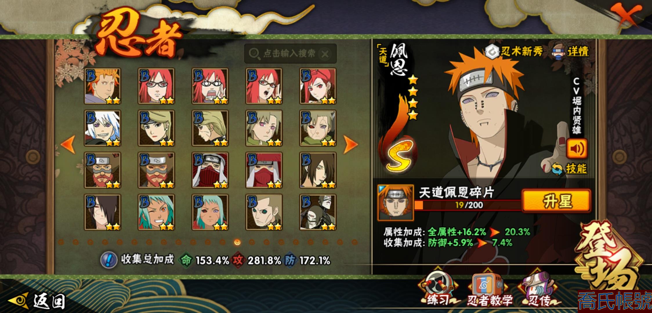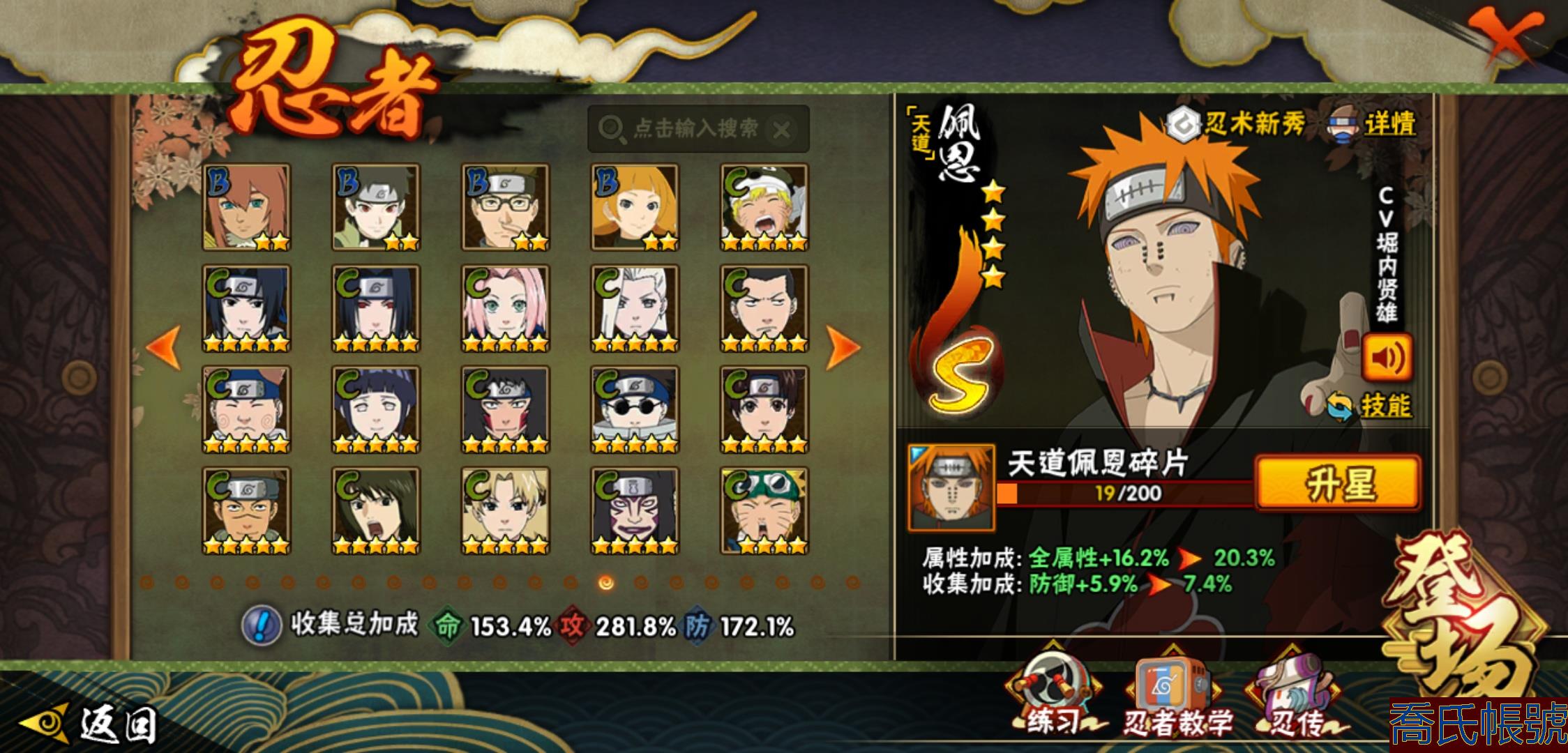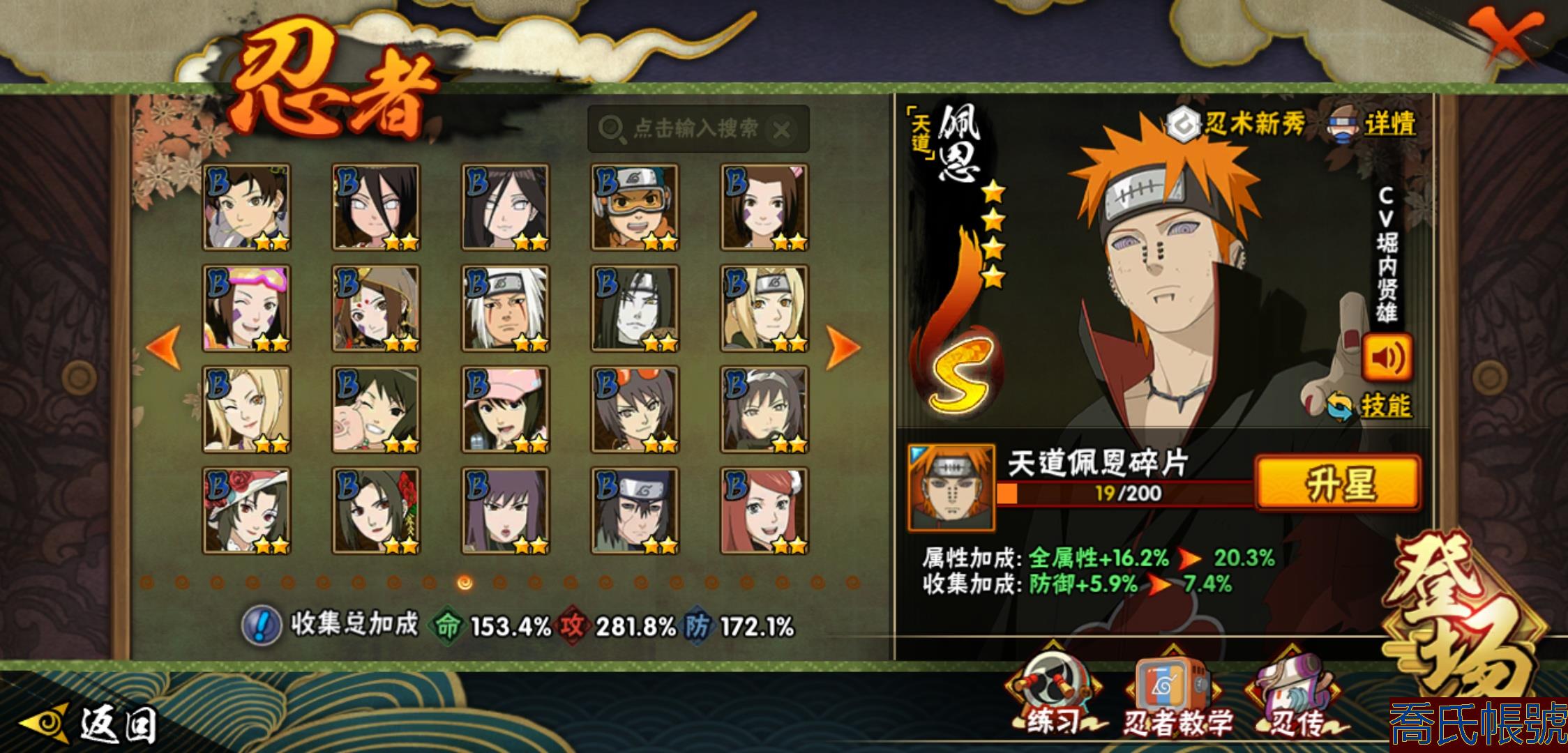 【OBHHVZH404842】戰鬥力:2793W+;段位:中忍3階;本服排名:59;戰區排名:未上榜;VIP13級;S忍51個;A忍56個;通靈獸27個;S忍:大蛇丸(5星),綱手(5星),仙人模式自來也(4星),波風水門(4星),穢土轉生波風水門(4星),猿飛日斬(4星),須佐能乎宇智波鼬(4星),天道佩恩(4星),暴怒第六尾漩渦鳴人,九喇嘛連結漩渦鳴人,永恆萬花筒宇智波佐助,忍界大戰春野櫻,須佐能乎旗木卡卡西,自來也,舞之豪傑自來也,傳說中的三忍自來也,百豪綱手,死門邁特凱,穢土轉生猿飛日斬,千手扉間,穢土轉生千手扉間,千手柱間,穢土轉生千手柱間,木葉創立千手柱間,宇智波斑,穢土轉生宇智波斑,木葉創立宇智波斑,穢土轉生解宇智波斑,穢土轉生宇智波鼬,須佐能乎宇智波止水,神秘面具男,白面具宇智波斑,忍界大戰宇智波帶土,紅夜之刃神秘面具男,四代目風影羅砂,穢土轉生三代目風影,二代目水影鬼燈幻月,四代目雷影艾,忍界大戰艾,三代目雷影艾,穢土轉生金角銀角,三代目土影大野木,二代目土影無,穢土轉生半藏,忍界大戰大野木,超佩恩天道,穢土轉生長門,仙人模式藥師兜,最終章大筒木舍人,大筒木桃式,大筒木金式;A忍:邁特凱(5星),猿飛阿斯瑪(5星),蠍(5星),幹柿鬼鮫(5星),疾風傳我愛羅(4星),飛段(4星),死司憑血飛段(4星),宇智波止水(3星),忍界大戰土臺(3星),宇智波鼬(3星),迪達拉(3星),猿飛木葉丸(3星),初始形態機械鳴人,仙人模式漩渦鳴人,九尾查克拉漩渦鳴人,萬花筒寫輪眼宇智波佐助,須佐能乎宇智波佐助,宇智波泉奈,百豪春野櫻,忍界大戰秋道丁次,忍界大戰日向寧次,忍界大戰李洛克,最終章日向雛田,萬花筒寫輪眼旗木卡卡西,穢土轉生猿飛阿斯瑪,志村團藏,新春限定波風水門,青年波風水門,忍界大戰我愛羅,近松十人衛千代,五代目水影照美冥,漂泊武士桃地再不斬,穢土轉生桃地再不斬,桃地再不斬,奇拉比,忍界大戰奇拉比,青年艾,半蛇斗篷藥師兜,不緣,青年長門,小南,夏日泳裝小南,新春限定小南,角都,地怨虞角都,曉大蛇丸,緋流琥蠍,穢土轉生迪達拉,加藤斷,俠隱江湖大野木,羈絆神農,桃式顯現漩渦博人,五代目雷影達魯伊,六代目水影長十郎,四代目土影黑土,夏日限定黑土;通靈獸:忍犬,藍蛇,蛤蟆吉,忍龜,鐮鼬,猿魔,山椒魚,蜃,蛤蟆仙人,鮫鯊,蛤蟆健,烏鴉,蛞蝓,蛤蟆龍,蛤蟆廣,砂之守鶴,夢貘,怒鬼,鷹,怒鬼無臂,蜘蛛,辛牙,熊貓,怒鬼爪,,萬蛇;時裝:百戰宇智波鼬須佐能乎,百戰波風水門,百戰大蛇丸,狂野鮫鯊幹柿鬼鮫,桀驁之刃猿飛阿斯瑪,百戰佩恩天道,蜀面豪傑舞之豪傑自來也,太極靈韻日向花火武當宗師,飛瀑流泉長十郎六代目水影,睿勇新星千手扉間少年,傳說的光芒波風水門,驚雷掠影達魯伊五代目雷影,命定之戰宇智波佐助疾風傳,可愛睡衣漩渦鳴人,隱藏內心的面具旗木卡卡西暗部,烈土霓裳黑土四代目土影,風之守護我愛羅忍界大戰,土之固守大野木三代目土影,緋櫻綻放春野櫻百豪,血紅辣椒旋渦玖辛奈少女png,雷電之力艾四代目雷影,血霧怪人幹柿鬼鮫,智勇記者宇智波佐良娜,熊貓少女天天峨眉宗師,驕陽翠羽照美冥夏日泳裝,純白之心白,剎那的藝術迪達拉,菁英忍者旗木卡卡西少年,龍的傳人李洛克截拳宗師,水之妖姬照美冥五代目水影,火之意志綱手百豪,編織虛實宇智波鼬;【170】51s 57a