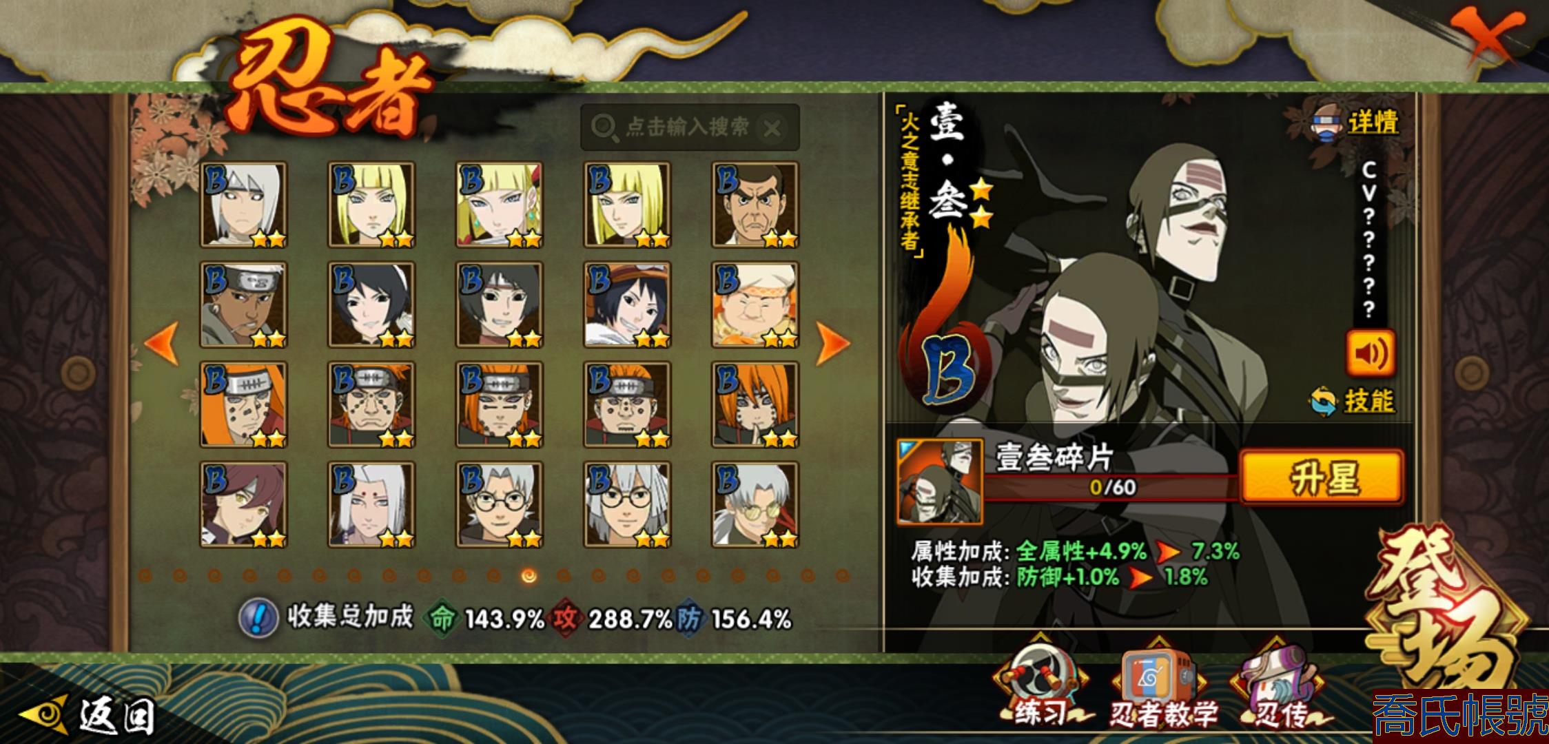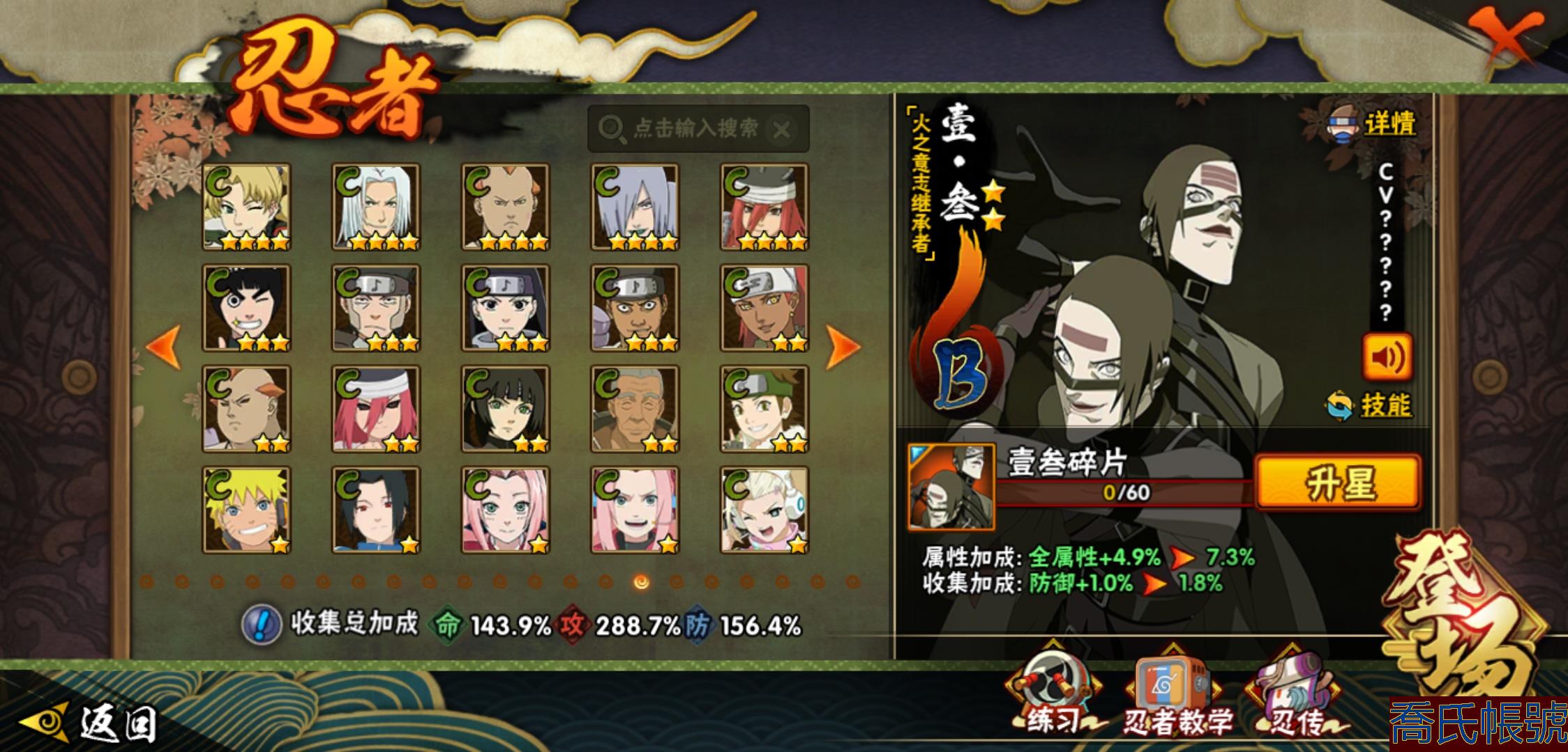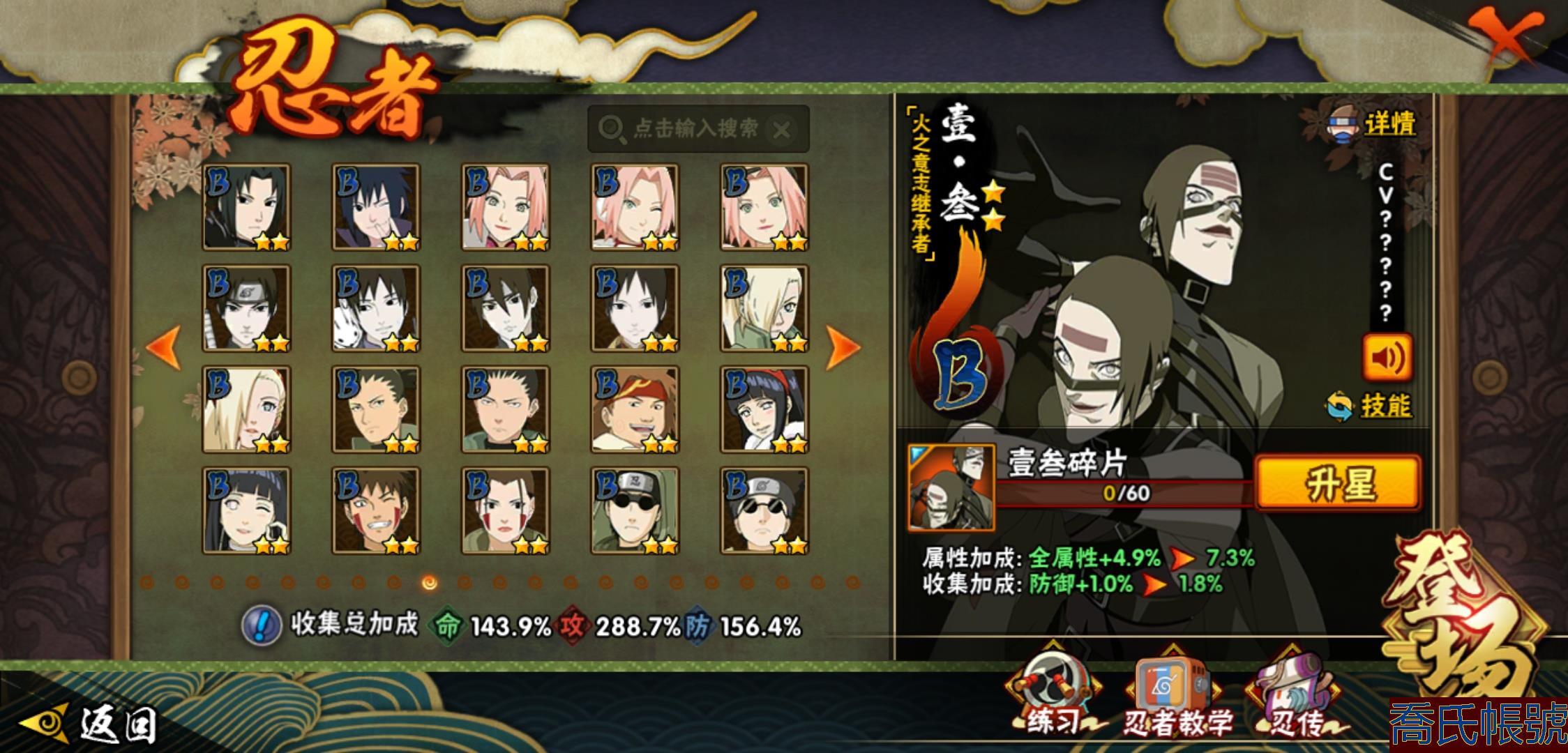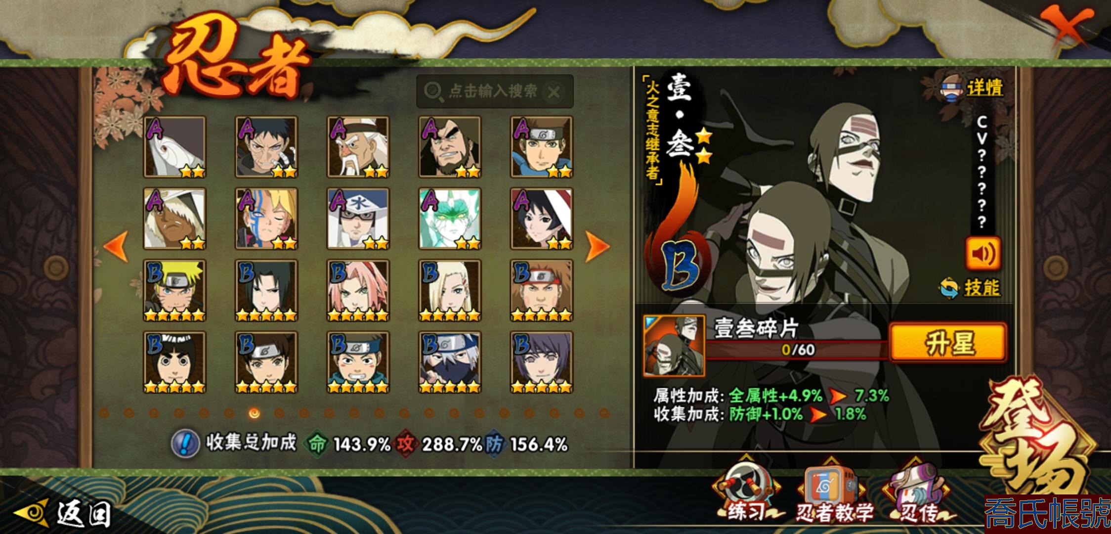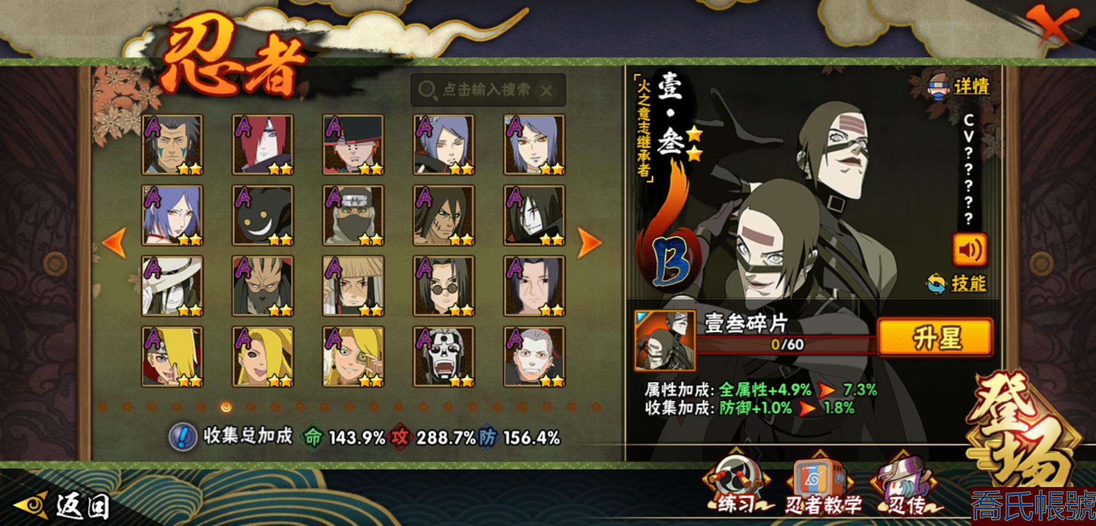 【OBHHVZH623942】戰鬥力:2216W+;段位:暗部2階;本服排名:20;戰區排名:未上榜;VIP14級;S忍49個;A忍80個;通靈獸27個;S忍:綱手(5星),猿飛日斬(5星),仙人模式自來也(4星),大蛇丸(4星),須佐能乎宇智波鼬(4星),暴怒第六尾漩渦鳴人,九喇嘛連結漩渦鳴人,永恆萬花筒宇智波佐助,忍界大戰春野櫻,須佐能乎旗木卡卡西,自來也,舞之豪傑自來也,傳說中的三忍自來也,百豪綱手,死門邁特凱,波風水門,穢土轉生猿飛日斬,千手扉間,穢土轉生千手扉間,千手柱間,穢土轉生千手柱間,木葉創立千手柱間,宇智波斑,穢土轉生宇智波斑,木葉創立宇智波斑,穢土轉生解宇智波斑,穢土轉生宇智波鼬,須佐能乎宇智波止水,神秘面具男,白面具宇智波斑,五影會談宇智波斑,忍界大戰宇智波帶土,紅夜之刃神秘面具男,四代目風影羅砂,初代目風影烈鬥,二代目水影鬼燈幻月,四代目雷影艾,忍界大戰艾,三代目雷影艾,三代目土影大野木,忍界大戰大野木,二代目土影無,天道佩恩,超佩恩天道,穢土轉生長門,仙人模式藥師兜,最終章大筒木舍人,大筒木桃式,大筒木金式;A忍:邁特凱(5星),猿飛阿斯瑪(5星),蠍(5星),幹柿鬼鮫(5星),疾風傳我愛羅(4星),飛段(4星),忍界大戰土臺(3星),四代目土影黑土(3星),仙人模式漩渦鳴人,忍者之路神秘面具男,初始形態機械鳴人,九尾查克拉漩渦鳴人,萬花筒寫輪眼宇智波佐助,須佐能乎宇智波佐助,俠隱江湖宇智波佐助,宇智波泉奈,百豪春野櫻,忍界大戰秋道丁次,忍界大戰日向寧次,忍界大戰李洛克,最終章日向雛田,幻之真容旗木卡卡西,旗木卡卡西,萬花筒寫輪眼旗木卡卡西,忍界大戰旗木卡卡西,元氣夏日旗木卡卡西,忍界大戰邁特凱,穢土轉生猿飛阿斯瑪,宇智波止水,新春限定宇智波止水,新春限定波風水門,青年波風水門,忍界大戰我愛羅,新春限定我愛羅,忍界大戰勘九郎,近松十人衛千代,五代目水影照美冥,夏日泳裝照美冥,俠隱江湖照美冥,桃地再不斬,漂泊武士桃地再不斬,穢土轉生桃地再不斬,忍界大戰奇拉比,奇拉比,青年艾,俠隱江湖綱手,漂泊武士千手扉間,半蛇斗篷藥師兜,俠隱江湖藥師兜,不風,不緣,不動,青年長門,漂泊浪客佩恩六道,小南,夏日泳裝小南,漂泊浪客小南,黑絕,地怨虞角都,穢土轉生角都,曉大蛇丸,新春限定大蛇丸,緋流琥蠍,宇智波鼬,新春限定宇智波鼬,夏日限定宇智波鼬,迪達拉,穢土轉生迪達拉,新春限定迪達拉,死司憑血飛段,惡靈之影飛段,暴怒宇智波帶土,漂泊浪客宇智波帶土,羈絆神農,猿飛木葉丸,五代目雷影達魯伊,桃式顯現漩渦博人,六代目水影長十郎,仙人模式巳月,夏日限定黑土;通靈獸:忍犬,藍蛇,蛤蟆吉,忍龜,鐮鼬,猿魔,山椒魚,蜃,砂之守鶴,蛤蟆仙人,鮫鯊,蛤蟆健,烏鴉,熊貓,怒鬼,二尾又旅,怒鬼無臂,蛤蟆龍,蛞蝓,蛤蟆廣,怒鬼爪,夢貘,鷹,辛牙,蜘蛛;時裝:百戰宇智波鼬須佐能乎,百戰波風水門,鋼鐵之軀邁特凱,百戰大蛇丸,狂野鮫鯊幹柿鬼鮫,桀驁之刃猿飛阿斯瑪,百戰佩恩天道,蜀面豪傑舞之豪傑自來也,晴浪礁歌黑土夏日限定,太極靈韻日向花火武當宗師,燼影絕蹤宇智波佐助俠隱江湖,剎寂鬼人桃地再不斬漂泊武士,滄瀾狂侍佩恩·六道漂泊浪客,飛瀑流泉長十郎六代目水影,睿勇新星千手扉間少年,傳說的光芒波風水門,驚雷掠影達魯伊五代目雷影,命定之戰宇智波佐助疾風傳,隱藏內心的面具旗木卡卡西暗部,烈土霓裳黑土四代目土影,夏日衝浪旗木卡卡西元氣夏日,風之守護我愛羅忍界大戰,憤怒的伊始宇智波帶土暴怒,土之固守大野木三代目土影,緋櫻綻放春野櫻百豪,千雪霜華照美冥俠隱江湖,血霧怪人幹柿鬼鮫,智勇記者宇智波佐良娜,熊貓少女天天峨眉宗師,剎那的藝術迪達拉,菁英忍者旗木卡卡西少年,龍的傳人李洛克截拳宗師,水之妖姬照美冥五代目水影,編織虛實宇智波鼬;【2131】