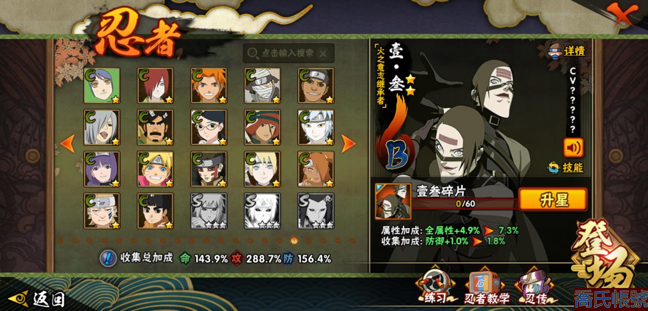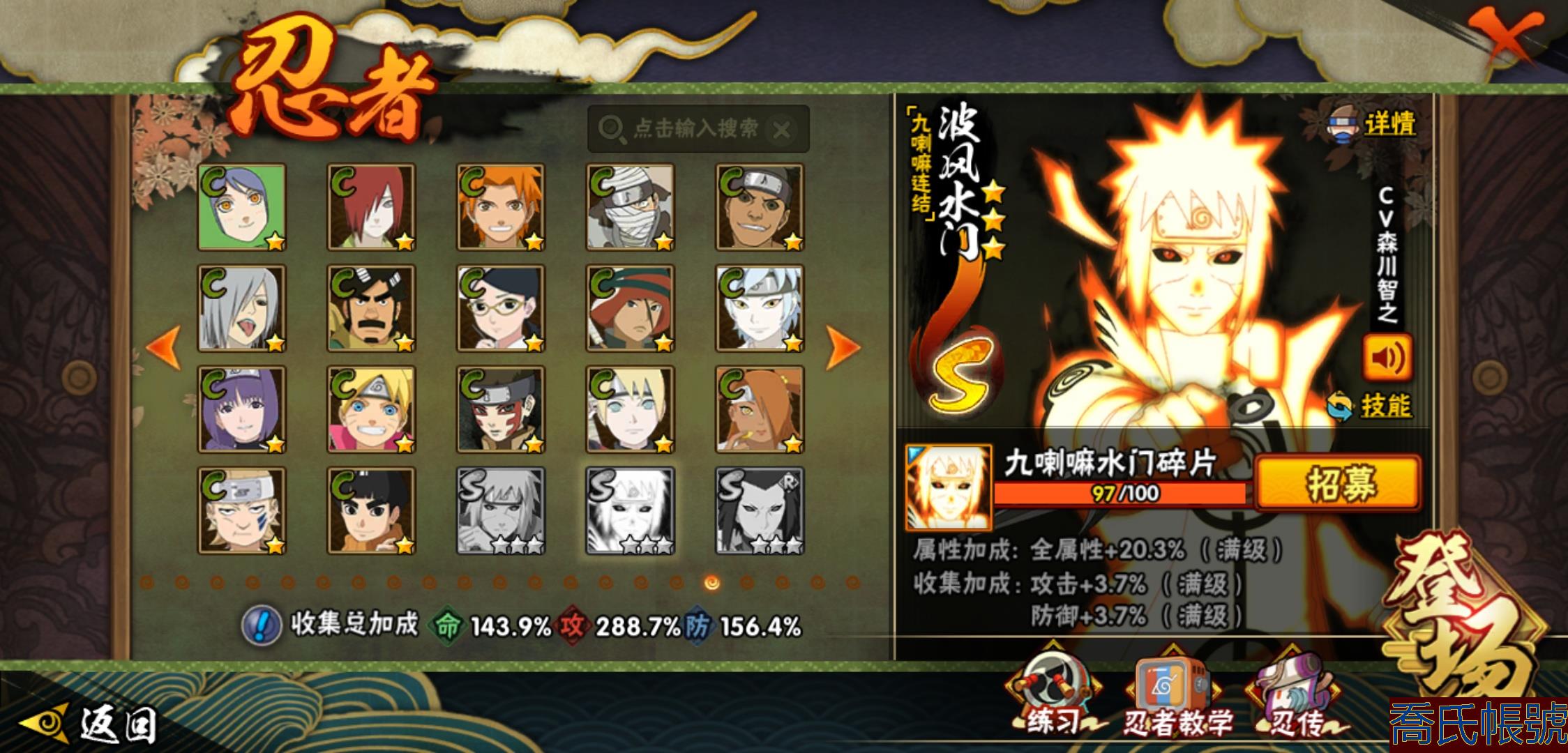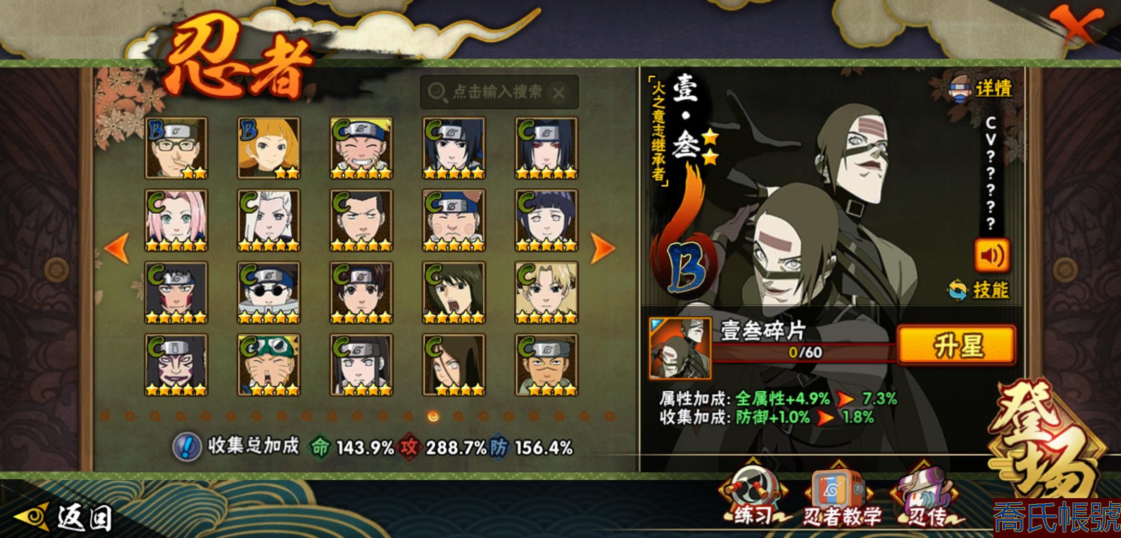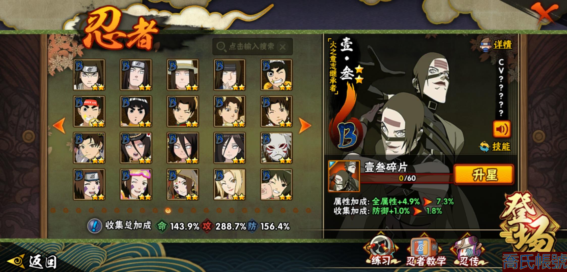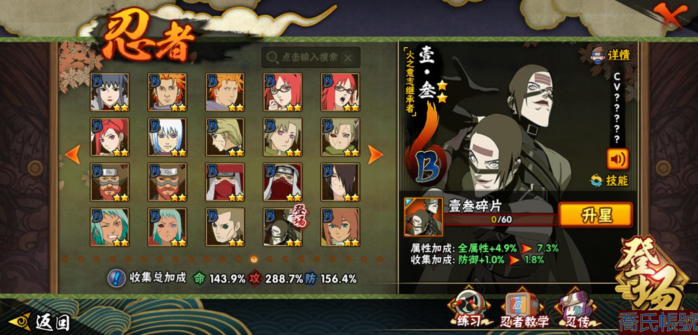 【OBHHVZH623942】戰鬥力:2216W+;段位:暗部2階;本服排名:20;戰區排名:未上榜;VIP14級;S忍49個;A忍80個;通靈獸27個;S忍:綱手(5星),猿飛日斬(5星),仙人模式自來也(4星),大蛇丸(4星),須佐能乎宇智波鼬(4星),暴怒第六尾漩渦鳴人,九喇嘛連結漩渦鳴人,永恆萬花筒宇智波佐助,忍界大戰春野櫻,須佐能乎旗木卡卡西,自來也,舞之豪傑自來也,傳說中的三忍自來也,百豪綱手,死門邁特凱,波風水門,穢土轉生猿飛日斬,千手扉間,穢土轉生千手扉間,千手柱間,穢土轉生千手柱間,木葉創立千手柱間,宇智波斑,穢土轉生宇智波斑,木葉創立宇智波斑,穢土轉生解宇智波斑,穢土轉生宇智波鼬,須佐能乎宇智波止水,神秘面具男,白面具宇智波斑,五影會談宇智波斑,忍界大戰宇智波帶土,紅夜之刃神秘面具男,四代目風影羅砂,初代目風影烈鬥,二代目水影鬼燈幻月,四代目雷影艾,忍界大戰艾,三代目雷影艾,三代目土影大野木,忍界大戰大野木,二代目土影無,天道佩恩,超佩恩天道,穢土轉生長門,仙人模式藥師兜,最終章大筒木舍人,大筒木桃式,大筒木金式;A忍:邁特凱(5星),猿飛阿斯瑪(5星),蠍(5星),幹柿鬼鮫(5星),疾風傳我愛羅(4星),飛段(4星),忍界大戰土臺(3星),四代目土影黑土(3星),仙人模式漩渦鳴人,忍者之路神秘面具男,初始形態機械鳴人,九尾查克拉漩渦鳴人,萬花筒寫輪眼宇智波佐助,須佐能乎宇智波佐助,俠隱江湖宇智波佐助,宇智波泉奈,百豪春野櫻,忍界大戰秋道丁次,忍界大戰日向寧次,忍界大戰李洛克,最終章日向雛田,幻之真容旗木卡卡西,旗木卡卡西,萬花筒寫輪眼旗木卡卡西,忍界大戰旗木卡卡西,元氣夏日旗木卡卡西,忍界大戰邁特凱,穢土轉生猿飛阿斯瑪,宇智波止水,新春限定宇智波止水,新春限定波風水門,青年波風水門,忍界大戰我愛羅,新春限定我愛羅,忍界大戰勘九郎,近松十人衛千代,五代目水影照美冥,夏日泳裝照美冥,俠隱江湖照美冥,桃地再不斬,漂泊武士桃地再不斬,穢土轉生桃地再不斬,忍界大戰奇拉比,奇拉比,青年艾,俠隱江湖綱手,漂泊武士千手扉間,半蛇斗篷藥師兜,俠隱江湖藥師兜,不風,不緣,不動,青年長門,漂泊浪客佩恩六道,小南,夏日泳裝小南,漂泊浪客小南,黑絕,地怨虞角都,穢土轉生角都,曉大蛇丸,新春限定大蛇丸,緋流琥蠍,宇智波鼬,新春限定宇智波鼬,夏日限定宇智波鼬,迪達拉,穢土轉生迪達拉,新春限定迪達拉,死司憑血飛段,惡靈之影飛段,暴怒宇智波帶土,漂泊浪客宇智波帶土,羈絆神農,猿飛木葉丸,五代目雷影達魯伊,桃式顯現漩渦博人,六代目水影長十郎,仙人模式巳月,夏日限定黑土;通靈獸:忍犬,藍蛇,蛤蟆吉,忍龜,鐮鼬,猿魔,山椒魚,蜃,砂之守鶴,蛤蟆仙人,鮫鯊,蛤蟆健,烏鴉,熊貓,怒鬼,二尾又旅,怒鬼無臂,蛤蟆龍,蛞蝓,蛤蟆廣,怒鬼爪,夢貘,鷹,辛牙,蜘蛛;時裝:百戰宇智波鼬須佐能乎,百戰波風水門,鋼鐵之軀邁特凱,百戰大蛇丸,狂野鮫鯊幹柿鬼鮫,桀驁之刃猿飛阿斯瑪,百戰佩恩天道,蜀面豪傑舞之豪傑自來也,晴浪礁歌黑土夏日限定,太極靈韻日向花火武當宗師,燼影絕蹤宇智波佐助俠隱江湖,剎寂鬼人桃地再不斬漂泊武士,滄瀾狂侍佩恩·六道漂泊浪客,飛瀑流泉長十郎六代目水影,睿勇新星千手扉間少年,傳說的光芒波風水門,驚雷掠影達魯伊五代目雷影,命定之戰宇智波佐助疾風傳,隱藏內心的面具旗木卡卡西暗部,烈土霓裳黑土四代目土影,夏日衝浪旗木卡卡西元氣夏日,風之守護我愛羅忍界大戰,憤怒的伊始宇智波帶土暴怒,土之固守大野木三代目土影,緋櫻綻放春野櫻百豪,千雪霜華照美冥俠隱江湖,血霧怪人幹柿鬼鮫,智勇記者宇智波佐良娜,熊貓少女天天峨眉宗師,剎那的藝術迪達拉,菁英忍者旗木卡卡西少年,龍的傳人李洛克截拳宗師,水之妖姬照美冥五代目水影,編織虛實宇智波鼬;【2131】