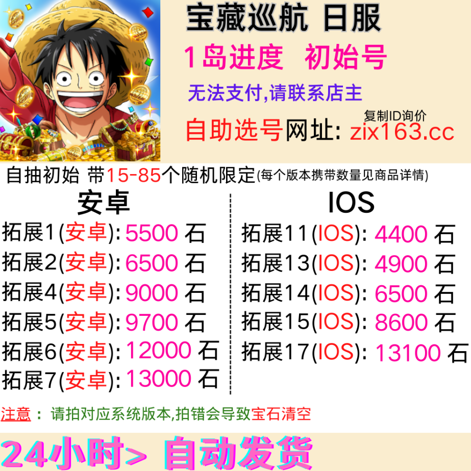 【初始號】 海賊王寶藏巡航秘寶尋航寶藏巡航自選初始安卓ios