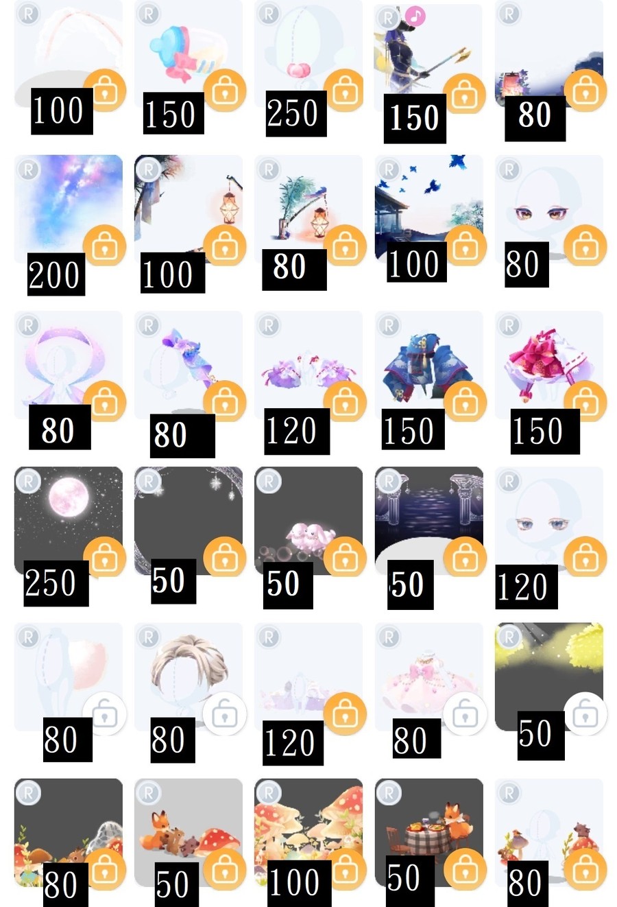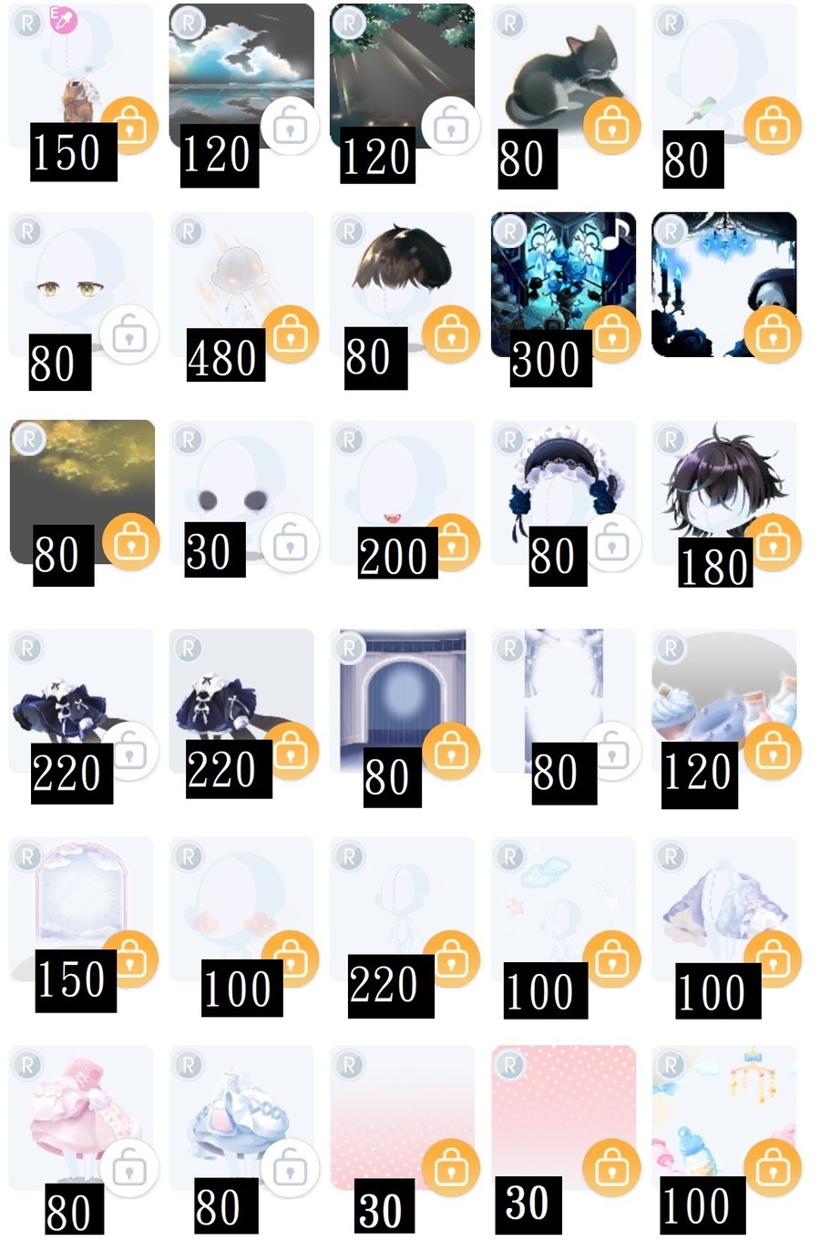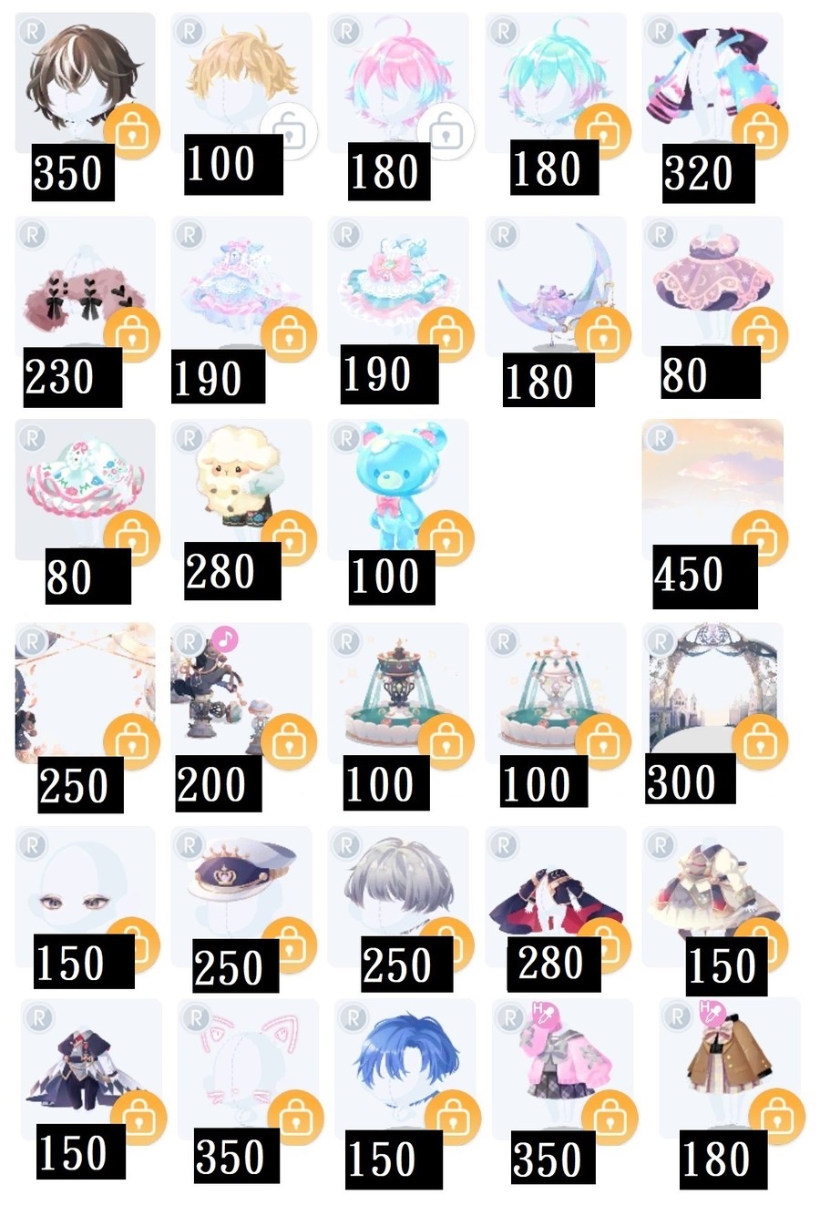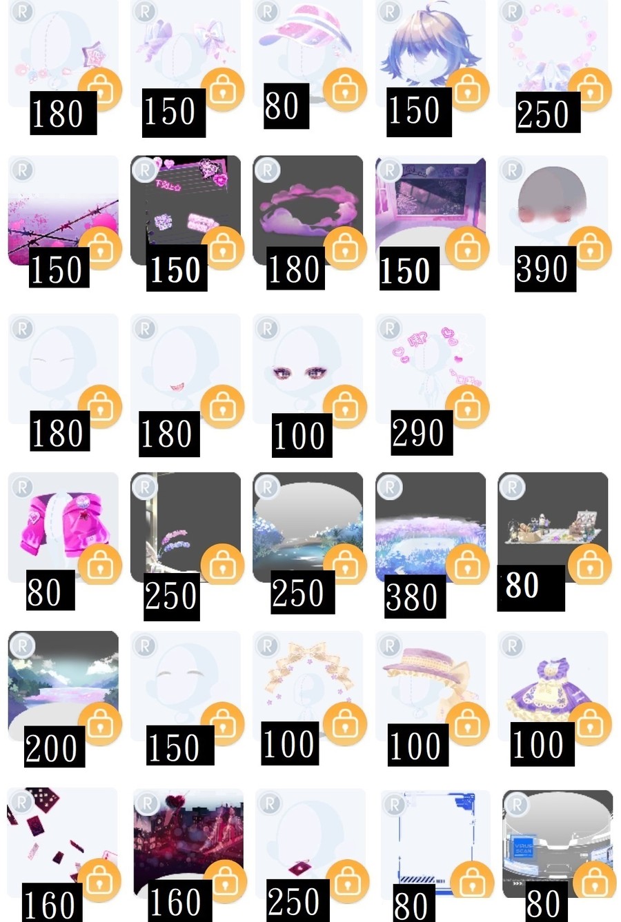 未在列表的物品皆可提問,偶爾會停售一小段時間。