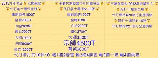 1. 陪打包分 代打期間 請勿自行進行積分 如有掉分情形 需自行吸收