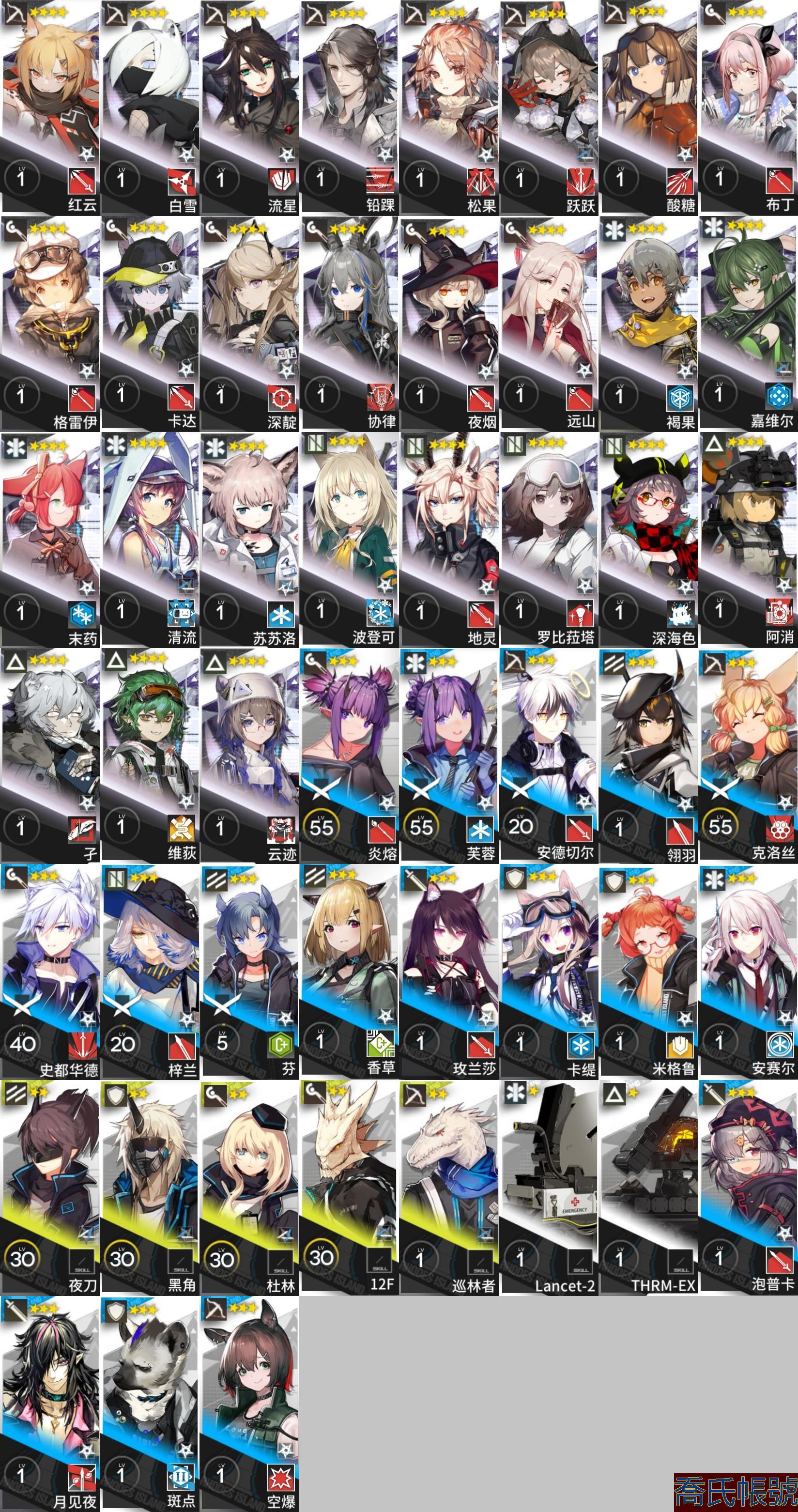 【OBMFICP363442】68級,37六星,9精二,8精一,合成玉數量:10,源石數量:3,聯動幹員數量:6,時裝數量:27,精二六星:凜御銀灰,聖聆初雪,薇薇安娜,烏爾比安,維娜·維多利亞,維什戴爾,煌,豐川祥子,佩佩;精一六星:酒神,Mon3tr,鴻雪,塞雷婭,歌蕾蒂婭,斯卡蒂,山,電弧;六星幹員:凜御銀灰,聖聆初雪,薇薇安娜,烏爾比安,維娜·維多利亞,維什戴爾,煌,豐川祥子,佩佩,酒神,Mon3tr,鴻雪,塞雷婭,歌蕾蒂婭,斯卡蒂,山,電弧,真言,老鯉,流明,溯光星源,遠牙,多蘿西,琳琅詩懷雅,伺夜,萊伊,淬羽赫默,赫拉格,娜仁圖亞,凱爾希,魔王,艾麗妮,鈴蘭,弒君者,泥岩,止頌,邏各斯;聯動幹員:祐天寺若麥,萊歐斯,若葉睦,八幡海鈴,三角初華,豐川祥子;時裝:超新星·維什戴爾,一人車隊·賈維,旋律的主人·豐川祥子,月下執行者·八幡海鈴,籠中歌者·三角初華,情熱魔術師·祐天寺若麥,糖果暴擊·奧達,提線的本我·若葉睦,寄自奧格尼斯科·薇薇安娜,隨意而行·蘇蘇洛,返航·歌蕾蒂婭,爆裂菲林·煌,古堡清潔專家·阿消,堅城·塞雷婭,馭浪WR04·斯卡蒂,幽靜·白麵鴞,君子蘭·傑西卡,小鬼當家·暗索,十字郡·芬,悠然假日HDm06·安賽爾,暗流·幽靈鯊;【官方賬號】ew邏初雪銀灰,酒神真言m3都有