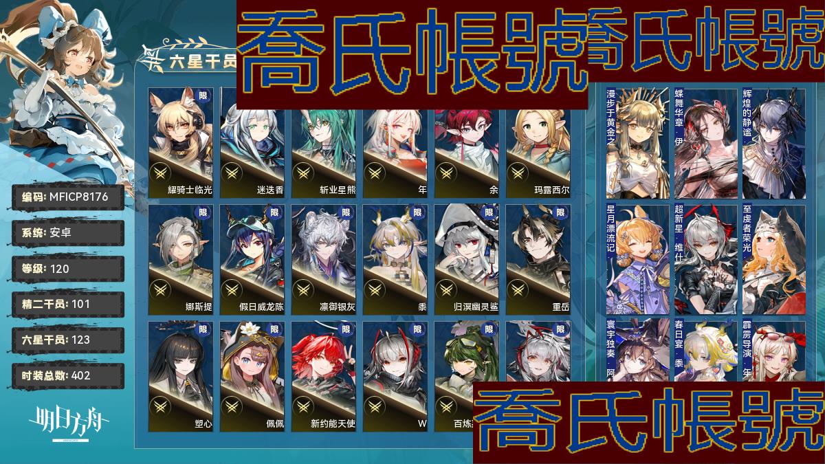 【OBMFICP817642】(備註:️全圖鑑140抽⭐皮膚:402皮膚⭐練度:140精二 163專三⭐資源:挖完礦30源石 6w合成玉 150黃票 6抽卡券 合計140抽⭐其它:單綁手機 包賠包回收 彩六齊聚主題)120級,123六星,101精二,8精一,合成玉數量:59217,源石數量:8,聯動幹員數量:20,時裝數量:402,精二六星:淬羽赫默,燭煌,霍爾海雅,黑,萊伊,瑪恩納,耀騎士臨光,夜鶯,星熊,引星棘刺,迷迭香,琴柳,斥罪,斬業星熊,仇白,信仰攪拌機,史爾特爾,伺夜,維娜·維多利亞,年,餘,銀灰,瑪露西爾,左樂,聖約送葬人,蕾繆安,赫德雷,白鐵,鴻雪,塞雷婭,娜斯提,多蘿西,空弦,忍冬,電弧,烏爾比安,流明,假日威龍陳,凜御銀灰,黍,號角,聖聆初雪,山,泥岩,歸溟幽靈鯊,重嶽,真言,菲亞梅塔,塑心,魔王,佩佩,斯卡蒂,陳,凱爾希,新約能天使,邏各斯,棘刺,W,薇薇安娜,阿斯卡綸,百鍊嘉維爾,能天使,維什戴爾,艾麗妮,煌,赫拉格,水月,鐧,Mon3tr,鈴蘭,歌蕾蒂婭,死芒,豐川祥子,刻俄柏,艾拉,伊內絲,焰影葦草,異客,緘默德克薩斯,艾雅法拉,遠牙,濁心斯卡蒂,純燼艾雅法拉,提豐,澄閃,溫蒂,靈知,麒麟R夜刀,荒蕪拉普蘭德,黑鍵,娜仁圖亞,風笛,林,繆爾賽思,卡涅利安,妮芙,伊芙利特,閃靈,夕,令,酒神;精一六星:瑕光,弒君者,推進之王,嵯峨,森蚺,老鯉,安潔莉娜,帕拉斯;六星幹員:淬羽赫默,燭煌,霍爾海雅,黑,萊伊,瑪恩納,耀騎士臨光,夜鶯,星熊,引星棘刺,迷迭香,琴柳,斥罪,斬業星熊,仇白,信仰攪拌機,史爾特爾,伺夜,維娜·維多利亞,年,餘,銀灰,瑪露西爾,左樂,聖約送葬人,蕾繆安,赫德雷,白鐵,鴻雪,塞雷婭,娜斯提,多蘿西,空弦,忍冬,電弧,烏爾比安,流明,假日威龍陳,凜御銀灰,黍,號角,聖聆初雪,山,泥岩,歸溟幽靈鯊,重嶽,真言,菲亞梅塔,塑心,魔王,佩佩,斯卡蒂,陳,凱爾希,新約能天使,邏各斯,棘刺,W,薇薇安娜,阿斯卡綸,百鍊嘉維爾,能天使,維什戴爾,艾麗妮,煌,赫拉格,水月,鐧,Mon3tr,鈴蘭,歌蕾蒂婭,死芒,豐川祥子,刻俄柏,艾拉,伊內絲,焰影葦草,異客,緘默德克薩斯,艾雅法拉,遠牙,濁心斯卡蒂,純燼艾雅法拉,提豐,澄閃,溫蒂,靈知,麒麟R夜刀,荒蕪拉普蘭德,黑鍵,娜仁圖亞,風笛,林,繆爾賽思,卡涅利安,妮芙,伊芙利特,閃靈,夕,令,酒神,瑕光,弒君者,推進之王,嵯峨,森蚺,老鯉,安潔莉娜,帕拉斯,溯光星源,隱德來希,傀影,遙,滌火傑西卡,焰尾,早露,琳琅詩懷雅,司霆驚蟄,莫斯提馬,止頌,阿,麥哲倫,灰燼;聯動幹員:瑪露西爾,灰燼,豐川祥子,艾拉,森西,齊爾查克,戰車,雙月,閃擊,萊歐斯,醫生,祐天寺若麥,導火索,九色鹿,三角初華,泰拉大陸調查團,霜華,羅小黑,若葉睦,八幡海鈴;時裝:漫步於黃金之夢·繆爾賽思,蝶舞華章·伊內絲,輝煌的靜謐·邏各斯,星月漂流記·克洛絲,超新星·維什戴爾,至虔者榮光·空弦,寰宇獨奏·阿米婭,春日宴·黍,霹靂導演·年,全能演員·重嶽,無我唯識·塑心,眾志歸一·聖約送葬人,暗月的影子·鐧,幽蘭秘辛·緘默德克薩斯,不融冰·銀灰,遠行前的野餐·純燼艾雅法拉,流輝·夜鶯,新枝·繆爾賽思,燃燒天穹下·伊內絲,紅女爵·濁心斯卡蒂,何處棲·重嶽,破翼者·緘默德克薩斯,列瑤臺·林,博物·焰影葦草,遠路·瑪恩納,崖高夢遠·令,悠然假日HD26·百鍊嘉維爾,夏卉FA394·澄閃,殘餘·凱爾希,生而為一·歸溟幽靈鯊,萬重山·假日威龍陳,濯纓·令,夏日餮宴·水月,字句中的雪原·鴻雪,手到牌來·老鯉,今昔須臾之夢·異客,復現榮光·耀騎士臨光,擁抱新生·迷迭香,繽紛奇境CW03·史爾特爾,焦點·傀影,昇華·濁心斯卡蒂,染塵煙·夕,樂逍遙·年,恍惚·W,綿絨小魔女·艾雅法拉,憩羽·衡沙,恆久祭禮·霍爾海雅,蒸汽尋蹤者·聖約送葬人,旋律的主人·豐川祥子,月下執行者·八幡海鈴,悠然假日HD71·寒檀,籠中歌者·三角初華,火種·火神,情熱魔術師·祐天寺若麥,提線的本我·若葉睦,悠然假日HD29·安比爾,夏卉FA361·空,糖果暴擊·奧達,玩伴·紅雲,幻語樂痕·莫斯提馬,家傳秘方·暴行,永恆玩家·水月,拭刀·刻刀,湖畔歌者·曉歌,甜美配方·妮芙,蒼茫怒號·瑪恩納,審判日·菲亞梅塔,最初的頌歌·PhonoR-0,寄自奧格尼斯科·薇薇安娜,風笛聲聲·風笛,封面傭兵·石英,絨布蛋糕·堅雷,玫瑰騎手·維荻,夢幻高空·萊伊,礫瓦·泥岩,相位面容·錫人,易爆藍焰·煌,動感·蒼苔,隨意而行·蘇蘇洛,魔女的鞦韆·泡普卡,新手光環·寒芒克洛絲,雙料四分衛·THRM-EX,泰拉冒險·瑪露西爾,棲息·淬羽赫默,坊間涼茶鋪·老鯉,花房茶話會·澄閃,地底三百米·暴行,雲上直播間·U-Official,我即潮汐·歌蕾蒂婭,悠然假日HD61·蜜蠟,記敘·斥罪,律動方格·琳琅詩懷雅,從容時刻·翎羽,晚風休憩·青枳,悠然假日HD08·普羅旺斯,步芳蘭·小滿,初晴·陳,沉思之庭·赫德雷,傾聽·溫蒂,賀新禧·清流,鋒潮·棘刺,禮遇·仇白,全新業務·洋灰,哀律西昂夜曲·藍毒,伴青蓮·截雲,密室·艾拉,裝點·和絃,遠行的季節·松果,展覽·醫生,鏡廊·雙月,單刀·炎客,偶爾醉陶·斥罪,碎片之間·謎圖,晚間咖啡店·安賽爾,及山海·海沫,私人書房·薄綠,洇靈雨·蜜莓,主修領域·地靈,星櫞林·流星,悠然假日HDm74·至簡,皇家近衛·風笛,正午餘光·苦艾,北地引路人·提豐,卡利斯卡群槍·灰毫,所願·星源,古往今來的月·九色鹿,晴日·卡緹,命運主宰·多蘿西,悠然假日HD49·錫蘭,霜林醉·仇白,觸及星辰·阿米婭,林虹之間·芙蘭卡,至聖誓言·菲亞梅塔,棠雲巧夢·子月,樹影吟遊·夏櫟,夏卉FA062·桃金娘,悠然假日HDm57·褐果,幽邃隱修·絮雨,夏卉FA317·琴柳,荒野尋音·車爾尼,沙灘護衛GT003·白鐵,下