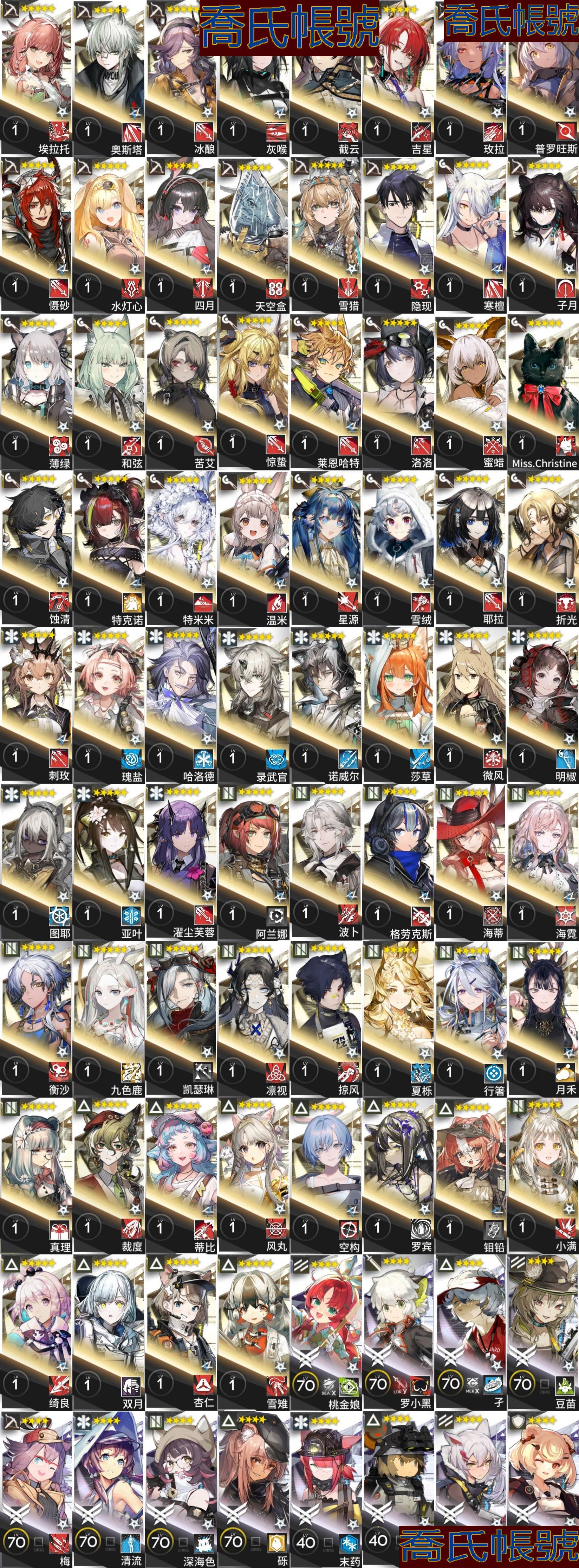 【OBMMIWM864742】120級,123六星,122精二,1精一,合成玉數量:88080,源石數量:170,聯動幹員數量:20,時裝數量:306,精二六星:薇薇安娜,銀灰,阿斯卡綸,水月,焰尾,星熊,淬羽赫默,萊伊,荒蕪拉普蘭德,魔王,灰燼,歸溟幽靈鯊,溯光星源,卡涅利安,緘默德克薩斯,斥罪,娜仁圖亞,隱德來希,引星棘刺,忍冬,斬業星熊,鈴蘭,伺夜,維什戴爾,鴻雪,酒神,赫拉格,蕾繆安,溫蒂,濁心斯卡蒂,多蘿西,餘,艾雅法拉,凱爾希,佩佩,阿,靈知,老鯉,左樂,年,赫德雷,司霆驚蟄,遙,傀影,新約能天使,林,假日威龍陳,琳琅詩懷雅,閃靈,歌蕾蒂婭,帕拉斯,弒君者,麥哲倫,伊芙利特,塞雷婭,邏各斯,燭煌,烏爾比安,嵯峨,菲亞梅塔,瑪露西爾,艾拉,黍,陳,Mon3tr,電弧,號角,塑心,耀騎士臨光,泥岩,霍爾海雅,夜鶯,麒麟R夜刀,澄閃,異客,刻俄柏,白鐵,純燼艾雅法拉,提豐,早露,止頌,能天使,死芒,令,安潔莉娜,真言,繆爾賽思,維娜·維多利亞,焰影葦草,黑鍵,伊內絲,聖約送葬人,森蚺,流明,山,信仰攪拌機,史爾特爾,鐧,滌火傑西卡,琴柳,瑪恩納,妮芙,百鍊嘉維爾,仇白,聖聆初雪,迷迭香,W,推進之王,煌,夕,棘刺,瑕光,重嶽,黑,豐川祥子,莫斯提馬,斯卡蒂,風笛,艾麗妮,空弦,遠牙,凜御銀灰;精一六星:娜斯提;聯動幹員:灰燼,瑪露西爾,艾拉,豐川祥子,萊歐斯,閃擊,醫生,森西,戰車,導火索,霜華,齊爾查克,八幡海鈴,祐天寺若麥,若葉睦,三角初華,九色鹿,泰拉大陸調查團,羅小黑,雙月;時裝:蝶舞華章·伊內絲,星月漂流記·克洛絲,漫步於黃金之夢·繆爾賽思,輝煌的靜謐·邏各斯,超新星·維什戴爾,至虔者榮光·空弦,寰宇獨奏·阿米婭,春日宴·黍,霹靂導演·年,全能演員·重嶽,暗月的影子·鐧,無我唯識·塑心,眾志歸一·聖約送葬人,幽蘭秘辛·緘默德克薩斯,遠行前的野餐·純燼艾雅法拉,不融冰·銀灰,新枝·繆爾賽思,燃燒天穹下·伊內絲,流輝·夜鶯,紅女爵·濁心斯卡蒂,何處棲·重嶽,列瑤臺·林,博物·焰影葦草,破翼者·緘默德克薩斯,崖高夢遠·令,遠路·瑪恩納,悠然假日HD26·百鍊嘉維爾,夏卉FA394·澄閃,殘餘·凱爾希,生而為一·歸溟幽靈鯊,萬重山·假日威龍陳,濯纓·令,夏日餮宴·水月,字句中的雪原·鴻雪,手到牌來·老鯉,今昔須臾之夢·異客,復現榮光·耀騎士臨光,擁抱新生·迷迭香,繽紛奇境CW03·史爾特爾,焦點·傀影,昇華·濁心斯卡蒂,染塵煙·夕,樂逍遙·年,恍惚·W,悠然假日HD71·寒檀,一人車隊·賈維,綿絨小魔女·艾雅法拉,蒸汽尋蹤者·聖約送葬人,旋律的主人·豐川祥子,雨霓行遊客·流明,月下執行者·八幡海鈴,籠中歌者·三角初華,情熱魔術師·祐天寺若麥,悠然假日HD29·安比爾,夏卉FA361·空,提線的本我·若葉睦,火種·火神,糖果暴擊·奧達,玩伴·紅雲,空心王冠·白鐵,甜美配方·妮芙,家傳秘方·暴行,永恆玩家·水月,湖畔歌者·曉歌,幻語樂痕·莫斯提馬,蒼茫怒號·瑪恩納,拭刀·刻刀,審判日·菲亞梅塔,最初的頌歌·PhonoR-0,封面傭兵·石英,寄自奧格尼斯科·薇薇安娜,風笛聲聲·風笛,礫瓦·泥岩,玫瑰騎手·維荻,夢幻高空·萊伊,斜照·折光,相位面容·錫人,易爆藍焰·煌,泰拉冒險·瑪露西爾,魔女的鞦韆·泡普卡,雙料四分衛·THRM-EX,隨意而行·蘇蘇洛,地底三百米·暴行,我即潮汐·歌蕾蒂婭,記敘·斥罪,從容時刻·翎羽,坊間涼茶鋪·老鯉,花房茶話會·澄閃,雲上直播間·U-Official,歷世流風·霍爾海雅,律動方格·琳琅詩懷雅,鋒潮·棘刺,禮遇·仇白,哀律西昂夜曲·藍毒,密室·艾拉,鏡廊·雙月,賀新禧·清流,單刀·炎客,主修領域·地靈,偶爾醉陶·斥罪,晚間咖啡店·安賽爾,敘拉古的彼面·伺夜,晴日·卡緹,星櫞林·流星,北地引路人·提豐,皇家近衛·風笛,所願·星源,悠然假日HD49·錫蘭,命運主宰·多蘿西,觸及星辰·阿米婭,至聖誓言·菲亞梅塔,樹影吟遊·夏櫟,幽邃隱修·絮雨,夏卉FA062·桃金娘,悠然假日HDm57·褐果,夏卉FA317·琴柳,競技之夢改裝·正義騎士號,下一頓午茶·斯卡蒂,沙灘護衛GT003·白鐵,化花·號角,飛羽·艾麗妮,彼有·嵯峨,拾翼·見行者,衣縷往昔·梓蘭,捉風·遠牙,結果·暮落,奇工妙想·星極,枝頭馥·夜半,山川的釀造·帕拉斯,廊下游·寒芒克洛絲,變奏·黑鍵,雪霽·鈴蘭,燈如晝·曉歌,燦海浮夢·流明,照冰輪·桑葚,火樹靈·布丁,躍上街頭·泰拉大陸調查團,繪聲繪影·深海色,喜夜侍者·澄閃,遙鄉之徑·夏櫟,風雪邀請·史都華德,春之頌·鈴蘭,鏡中來訪·愛麗絲,組間休息·布洛卡,偽裝·宴,讀者·山,擁抱新生·迷迭香曾經,心性·赤冬,無痕行者·安德切爾,夏卉FA374·羅比菈塔,夏卉FA210·羽毛筆,燦陽朝露SDm11·極境,返航·歌蕾蒂婭,燦陽朝露SD08·卡涅利安,超級斷罪朋友·斷罪者,摧城·推進之王,夏卉FA641·夜半,悍將·因陀羅,破冰·霜葉,幽谷奏鳴·石棉,識芳·琴柳,先驅·靈知,植藥·桑葚,無拘無束·刻俄柏,海岸救援改裝·Lancet-2,黑曜石·泥岩,街道狂花·槐琥,未完成的禮物·豆苗,縱身一躍·傑克,霍恩洛厄的寒沙·卡涅利安,悠然假日HD31·華法琳,妙手玄心·阿,詩人的假日·流星,且試箸·食鐵獸,待晴日·深靛,原野的饋贈·羅賓,傳承·帕拉斯,紙板仙子·卡夫卡,傑作·早露,暗矢·安哲拉,異月災裔·瑕光,魔城迴響·巫戀,淡金慶典·桃金娘,宣傳策略·空弦,淺灘律動·藍毒,殿堂上的遊禽·星極,安息處的怪盜·卡達,夏卉FA026·蘇蘇洛,傾聲歌唱·松果,愜意·棘刺,靜謐午夜DN06·泥岩,自由失效·史爾特爾,夏卉FA018·艾雅法拉,夏卉FA017·安潔莉娜,歧路幻影·赫拉格,殘葛·亞葉,靜謐午夜DN04·特米米,爆裂菲林·煌,烏