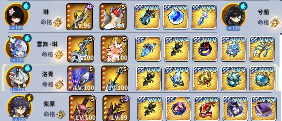 六命角色:洛青、雪舞、兮蘭、伊鶴、神樂琳、蒼牙